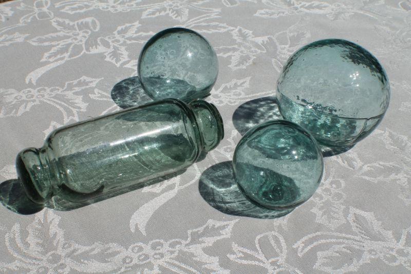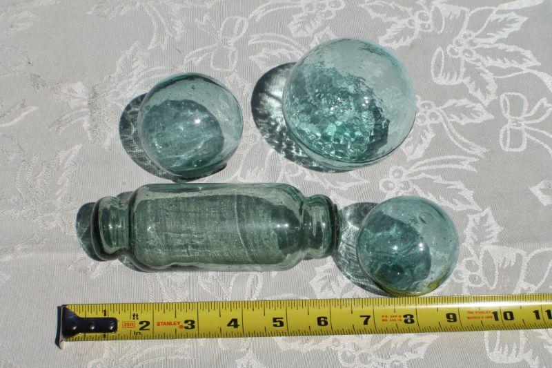 Lot 2-342: Bundle of (4) Antique/Vintage (Assorted Colors, Sizes and Shapes) Japanese SMALL Fishing Glass Floats