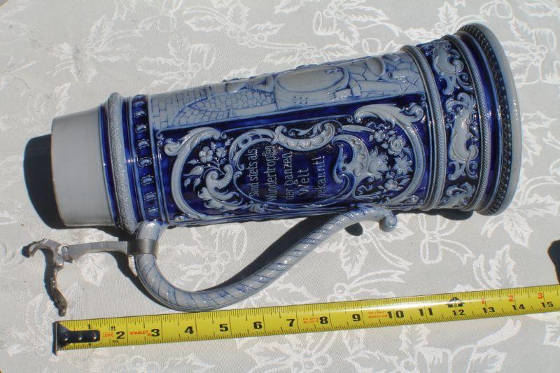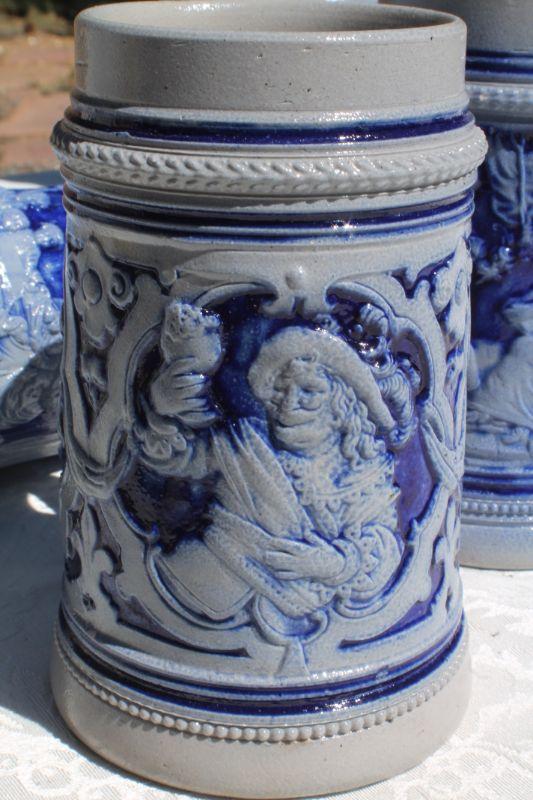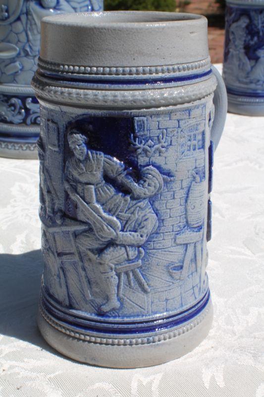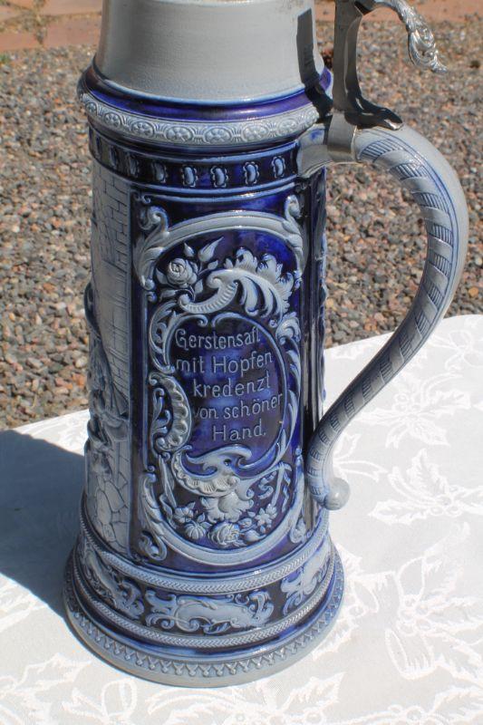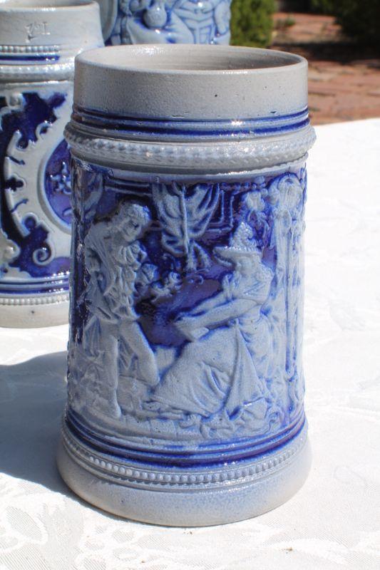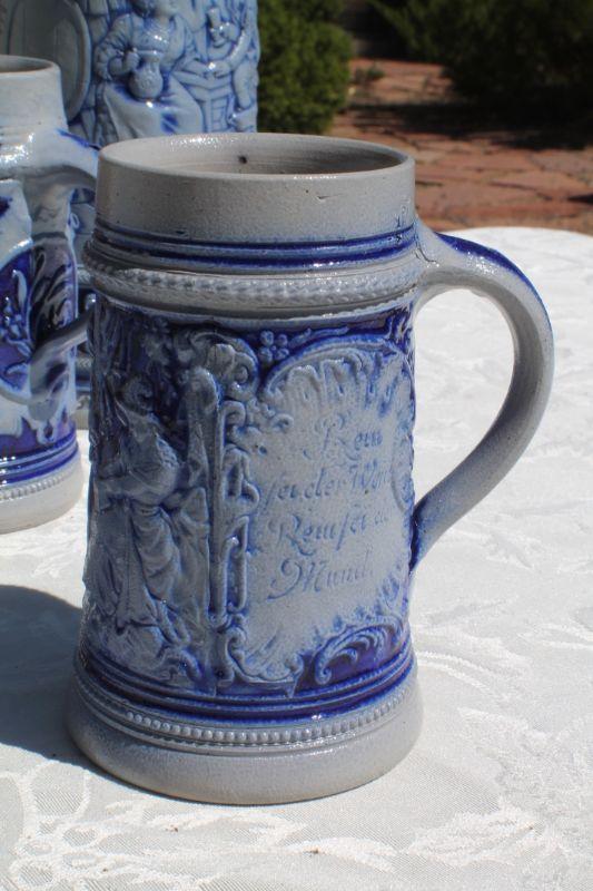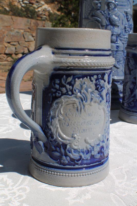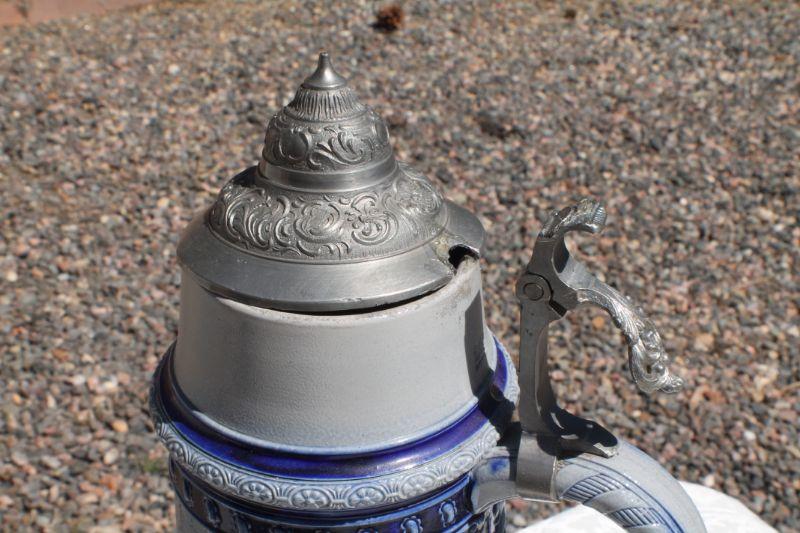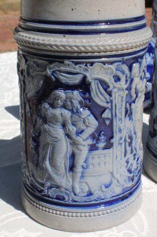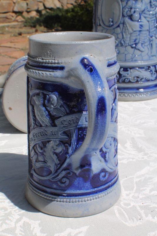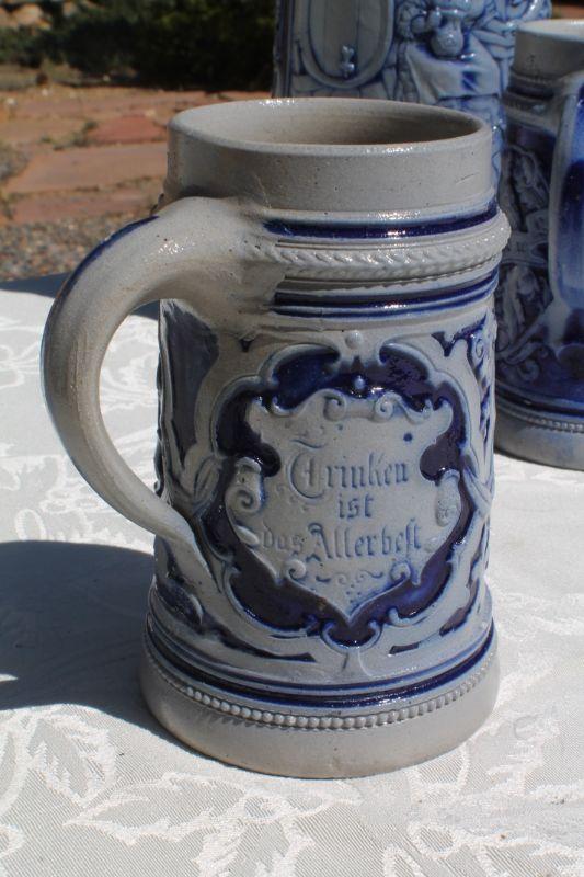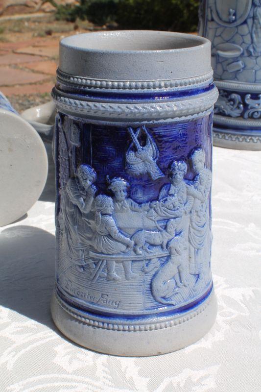 Lot 2-343: Large 1/2 Liter GERMANY Drinking Stein Set w/ 5 Glasses and 1 Tall Pitcher (lid is damaged)
