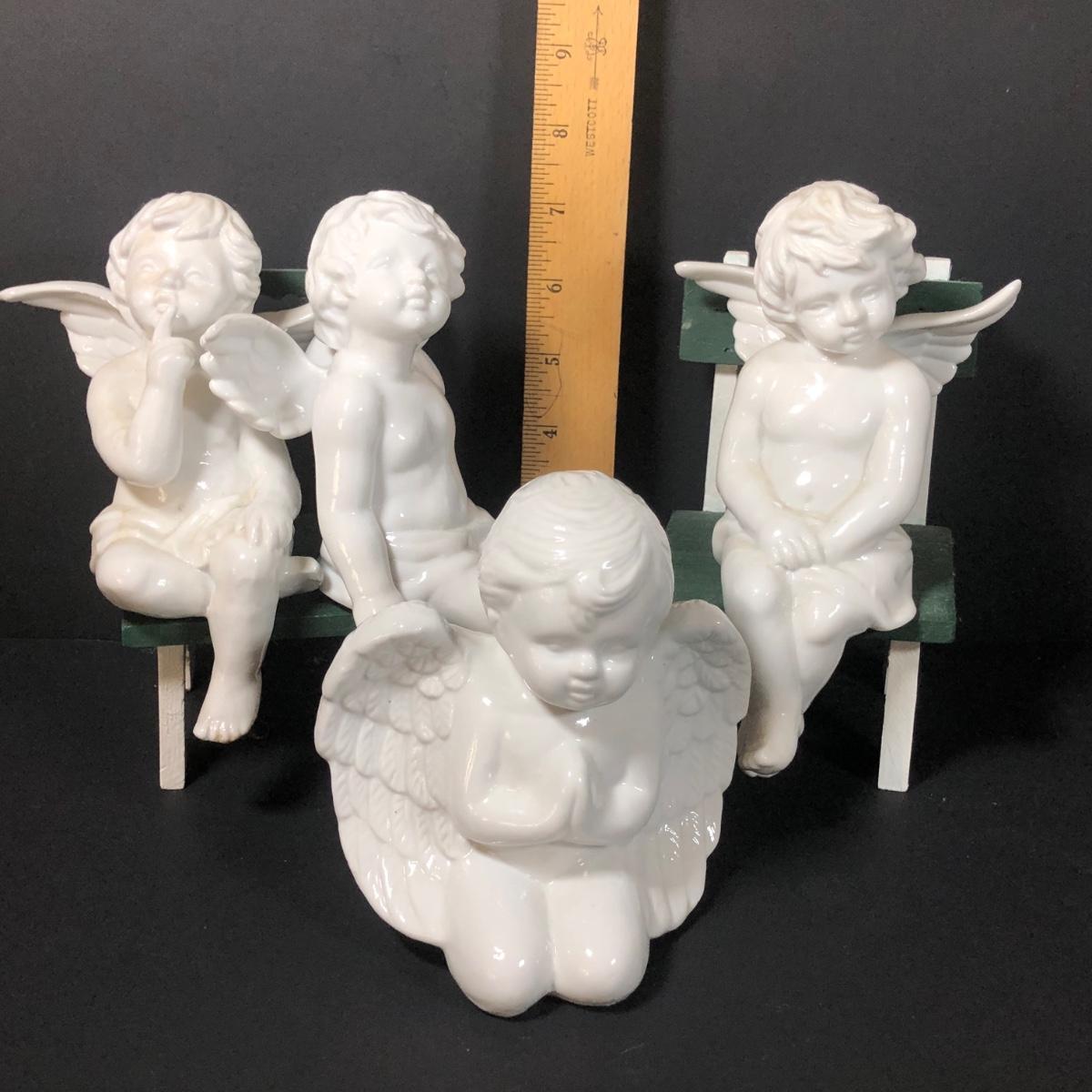 LOT 401G: Vintage Porcelain Cherub Angels Shelf Sitters & Kneeling Figure