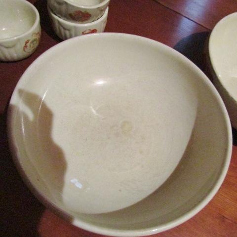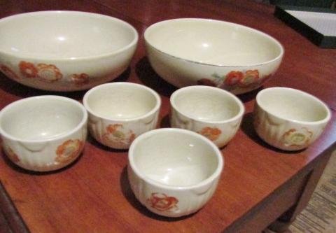2 SERVING BOWLS WITH SOME FADING TO THE FLOWERS