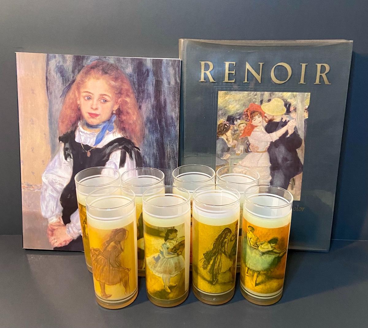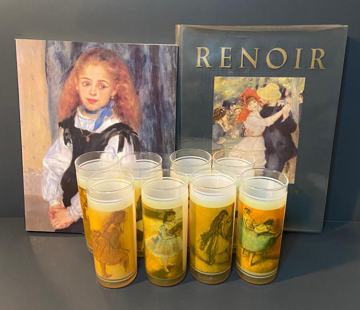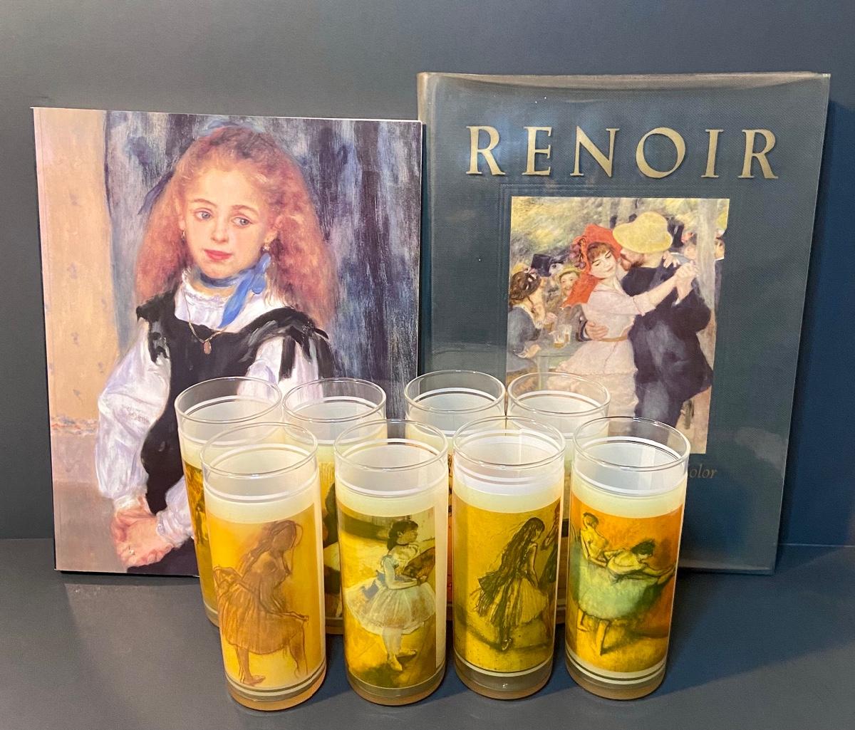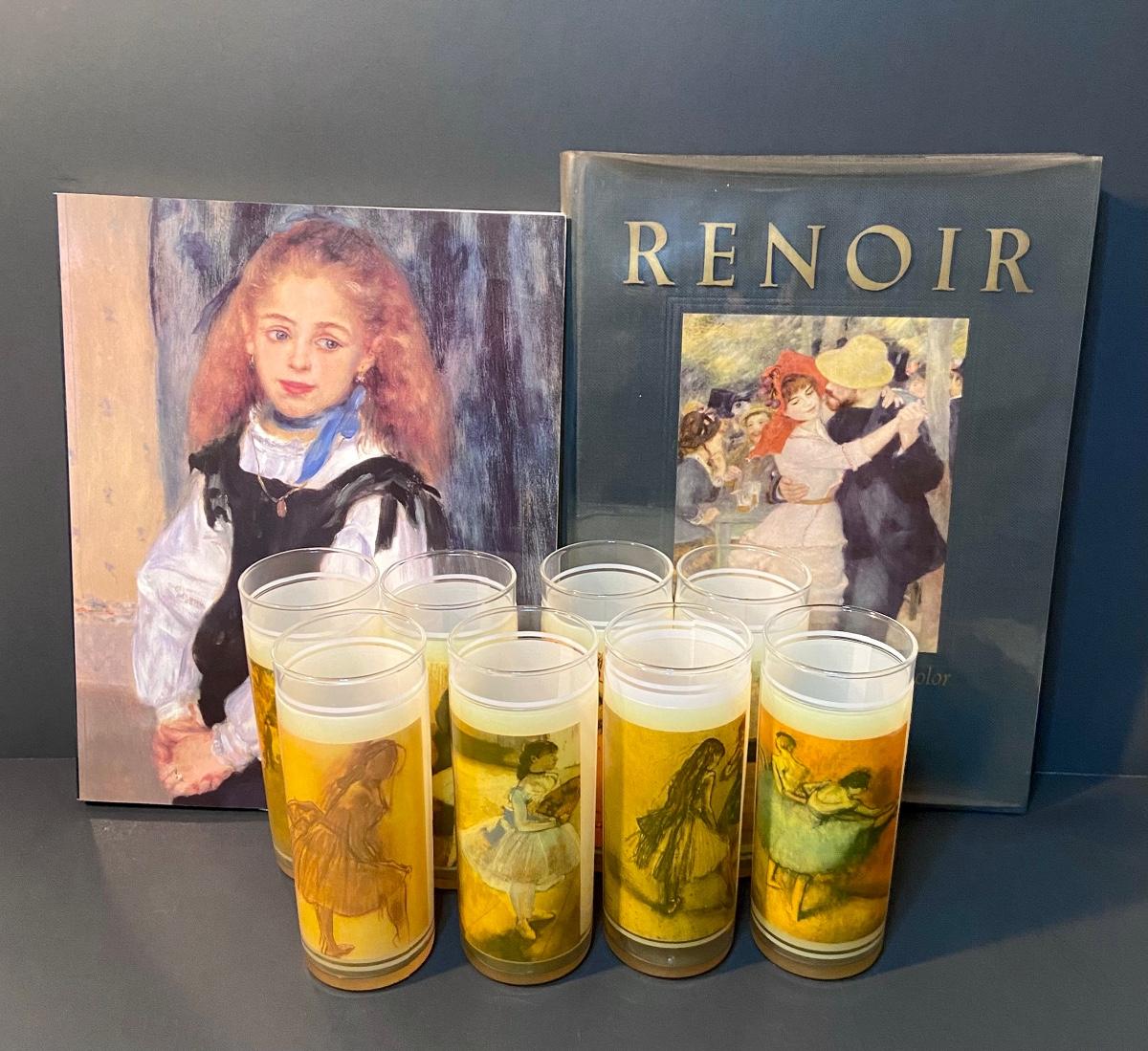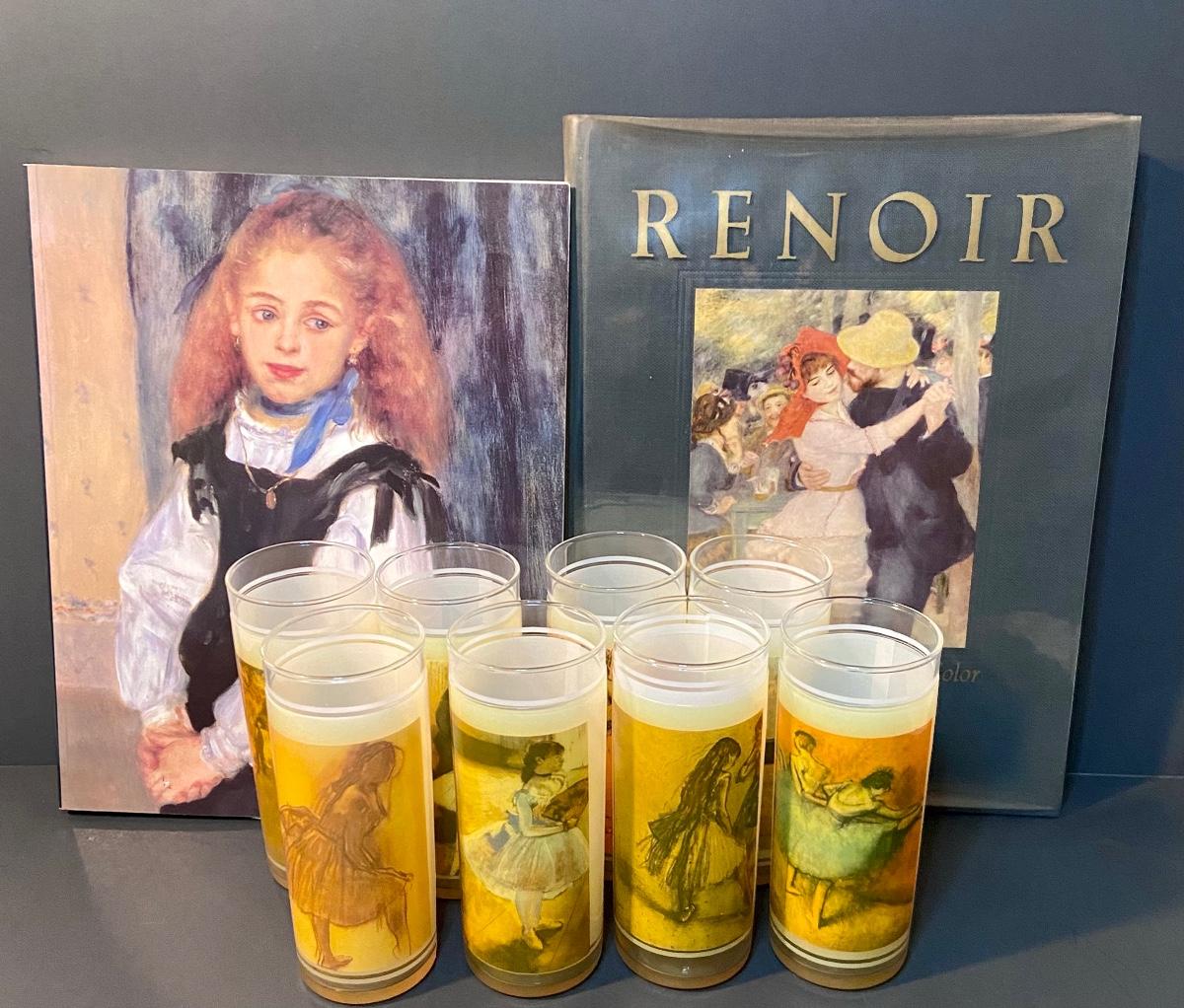 Lot 235: Renoir Coffee Table Books and MCM Art Glasses