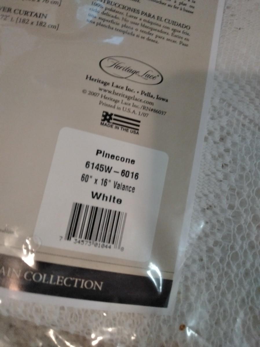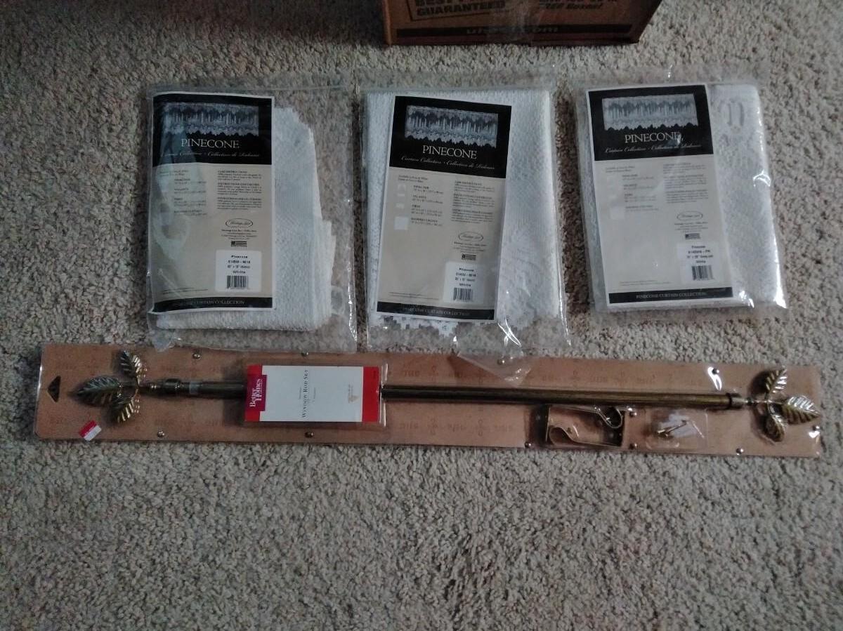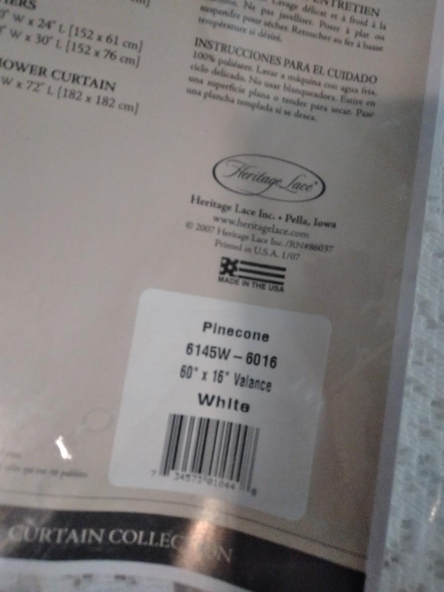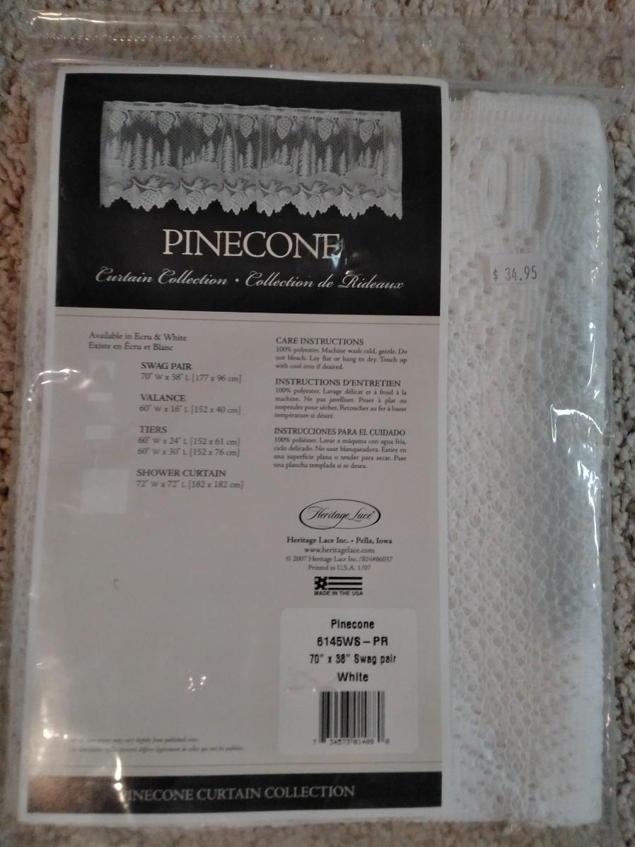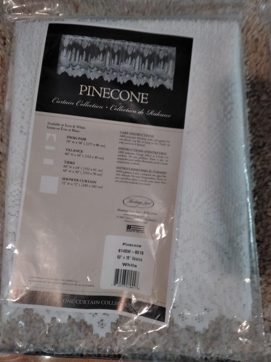 NEW IN PACKAGE PINECONE SWAG, VALANCE AND LEAF ACCENT CURTAIN ROD.