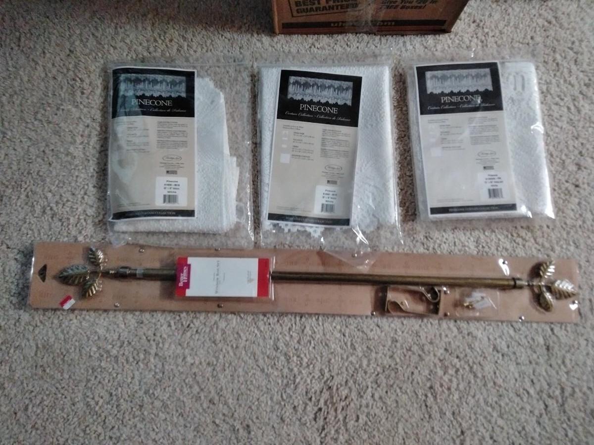 LOT 235 PINECONE SWAGS AND CURTAIN ROD