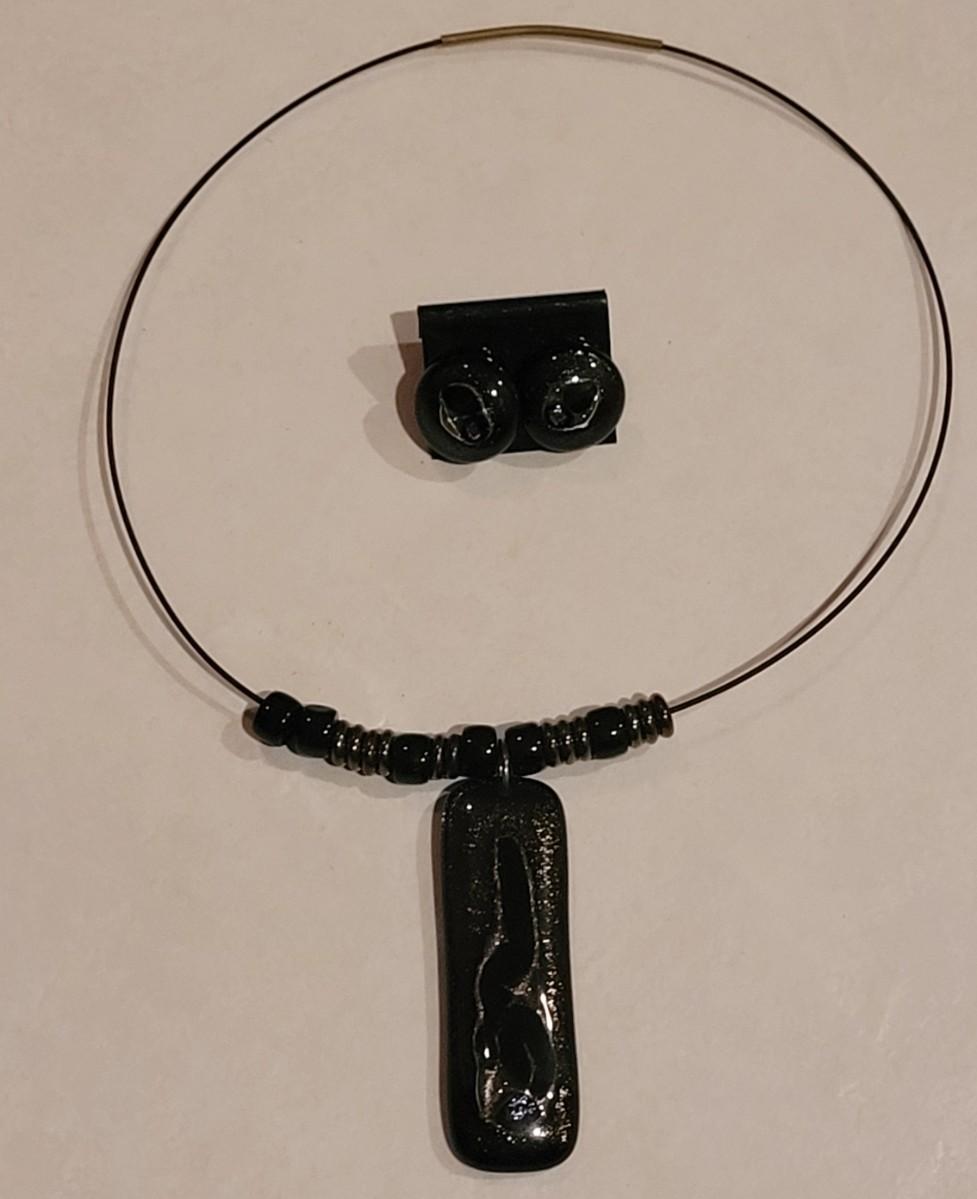 Lot 235: Artist Made Glass Pendant Necklace and Earrings Set