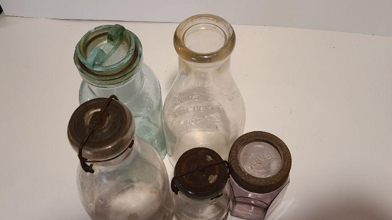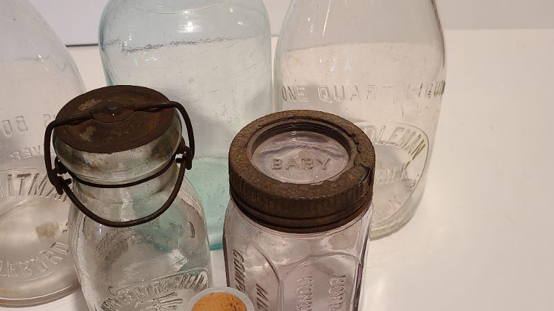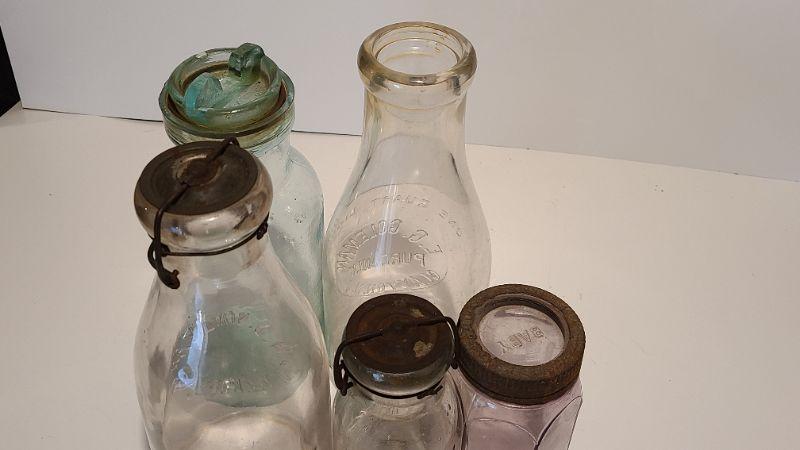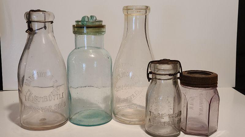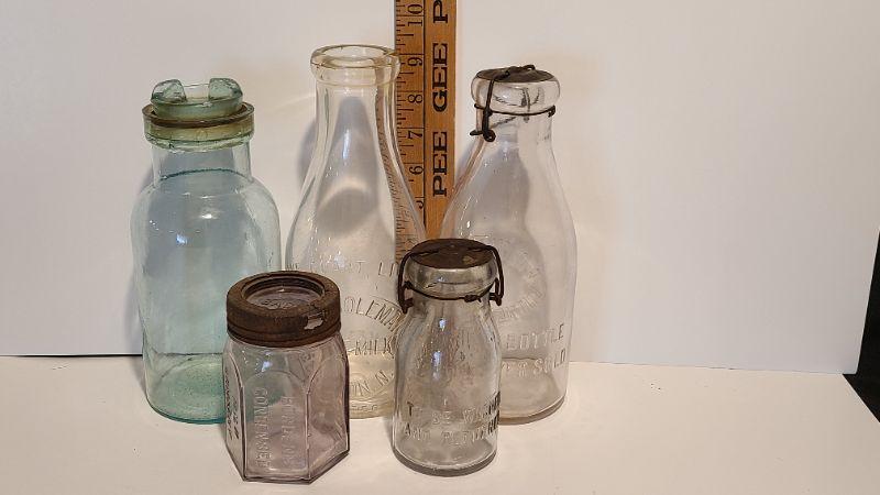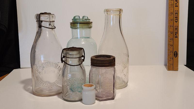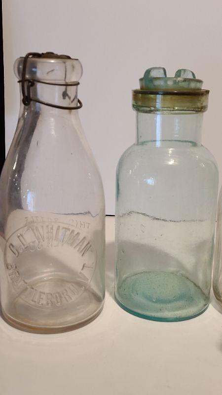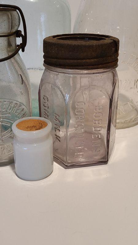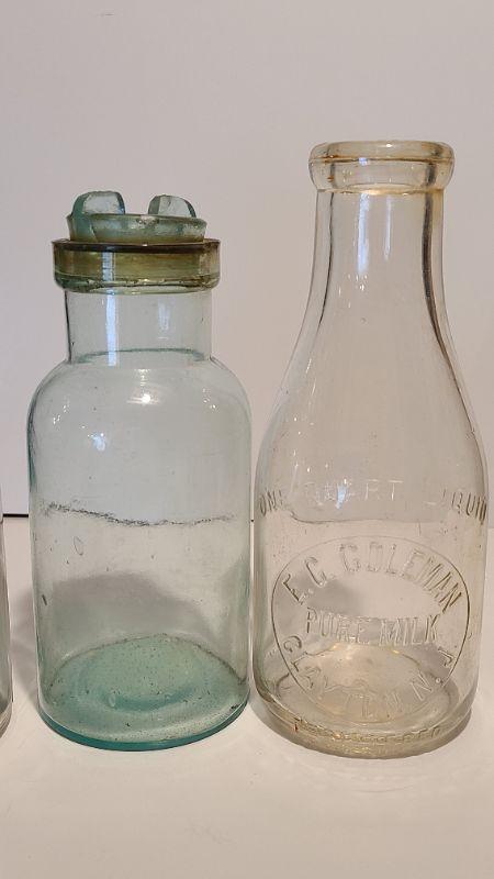 Lot 235: Antique Bottles/Jars ( Borden purple, Coleman Dairy, Whitman VT)