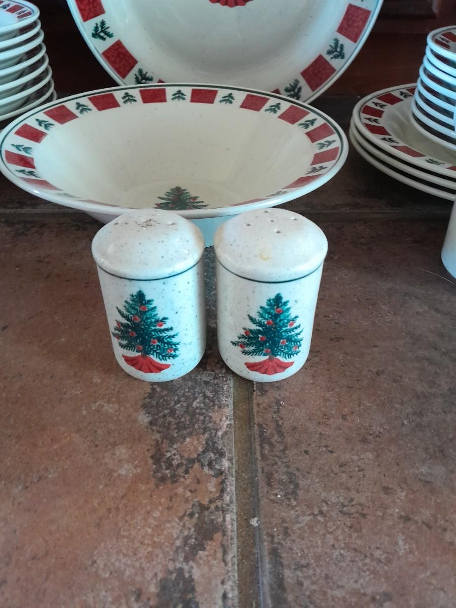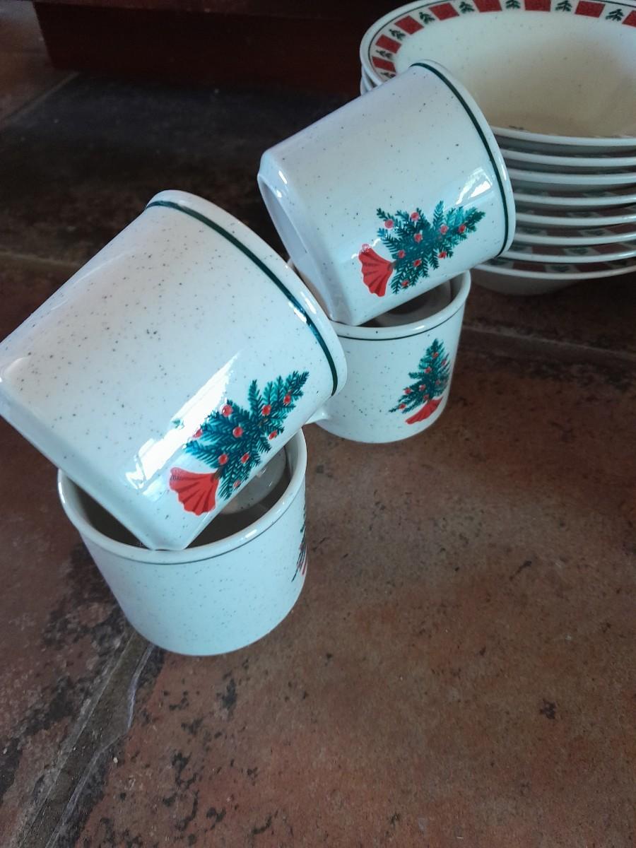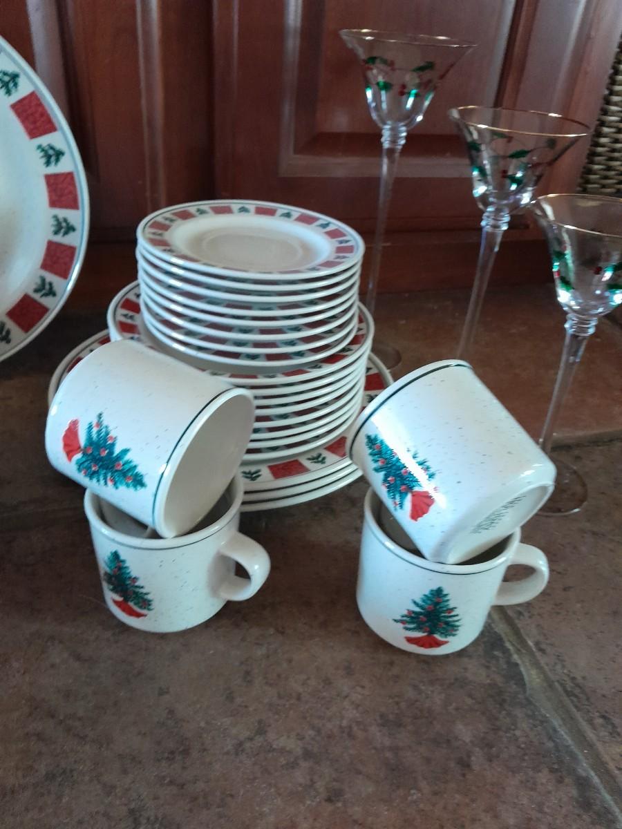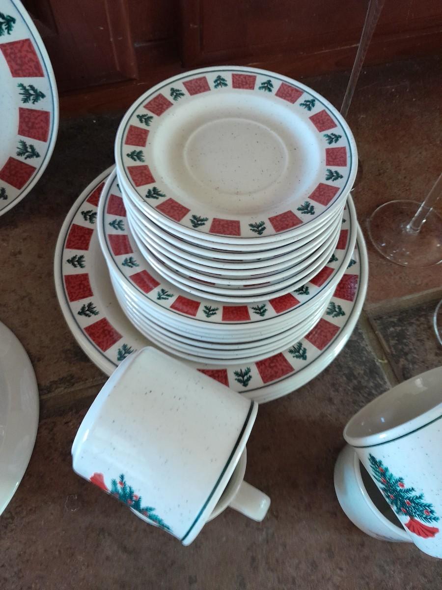 CHRISTMAS DISHWARE, NICE INCOMPLETE SET OF FOLK CRAFT HOLIDAY HOMECOMING STONEWARE.