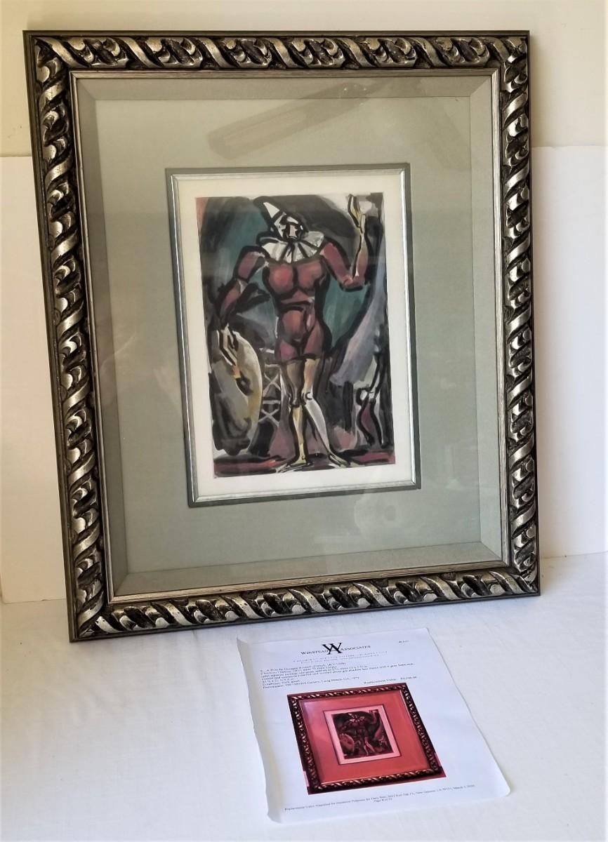 Lot #235 Color Aquatint Etching - listed artist Georges Rouault - "Clown au Timbale", 1930