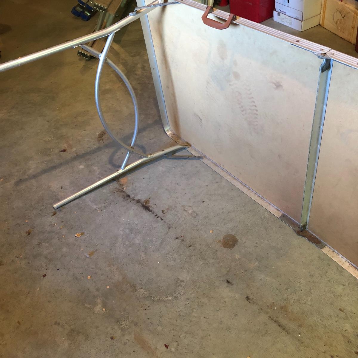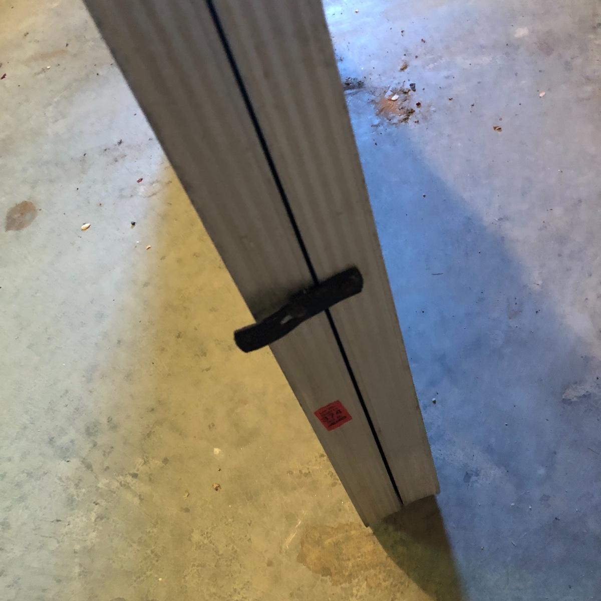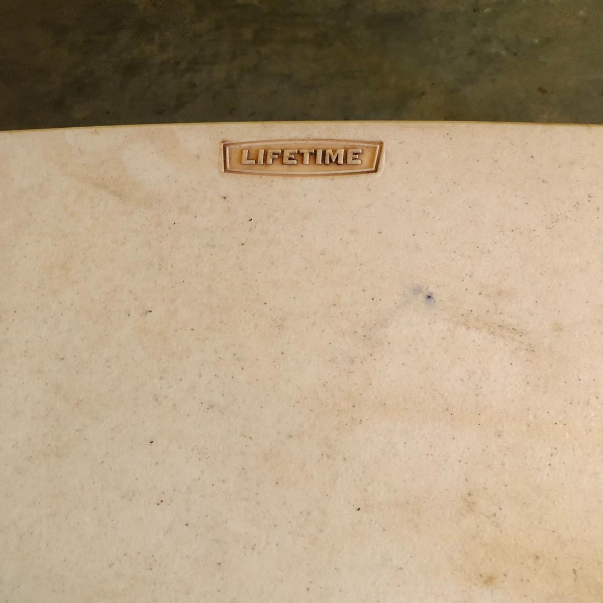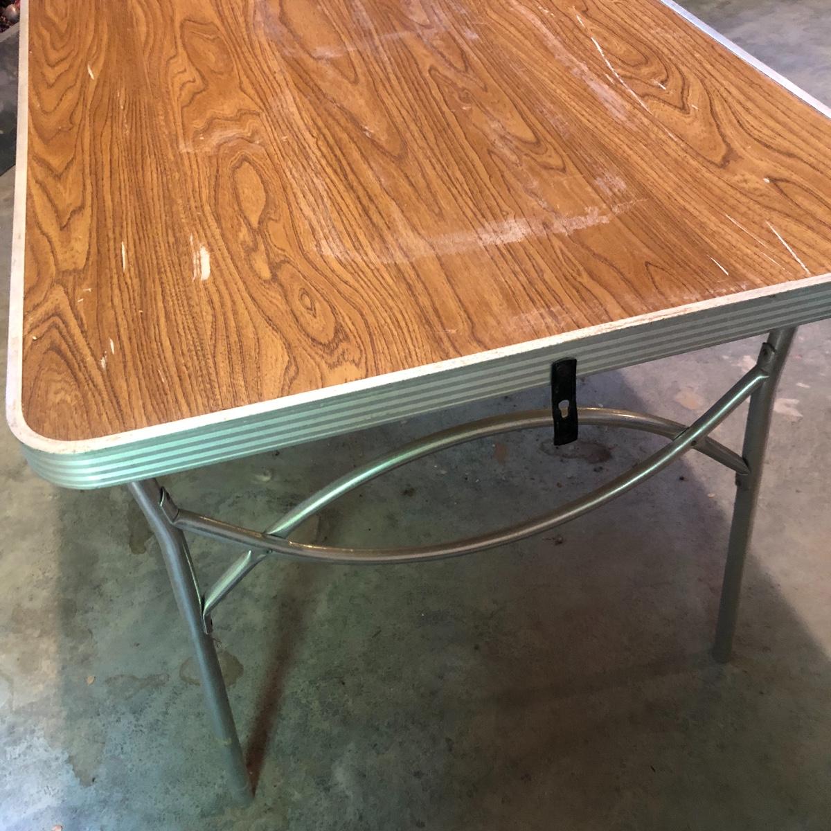 The white table measures 30” x 19 1/2”. The height is also adjustable. The brown folding table measures 72” x 30”. Please note the marks on the top of the brown table which may come off with some cleaning. Local Pickup Only.