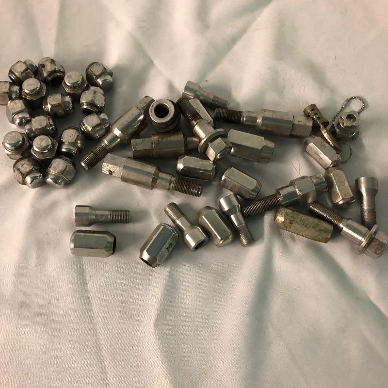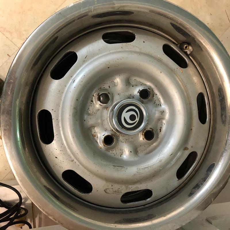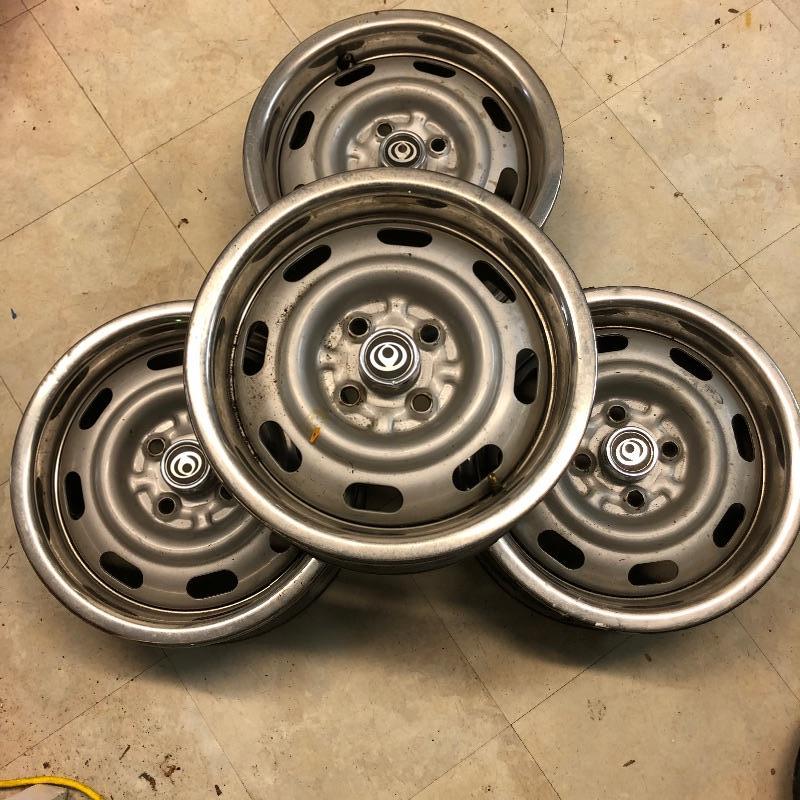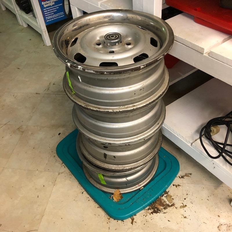 These four rims came off a 1996 Miata. They appear to be in great shape and all have trim rings and caps. Also included are some lug nuts. They measure 15” and 6.5” deep.