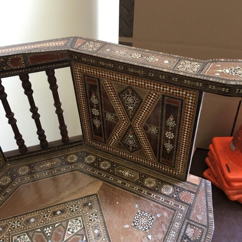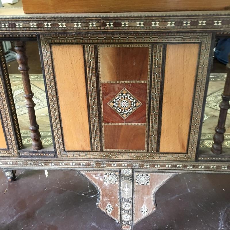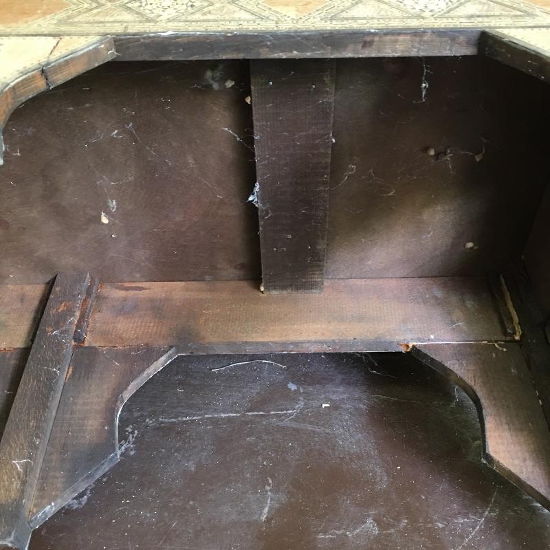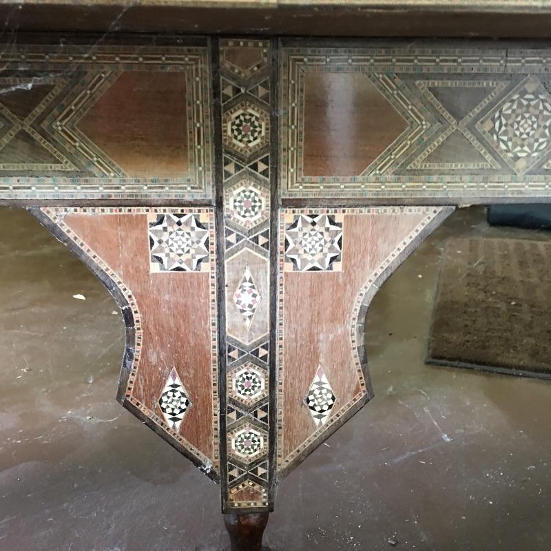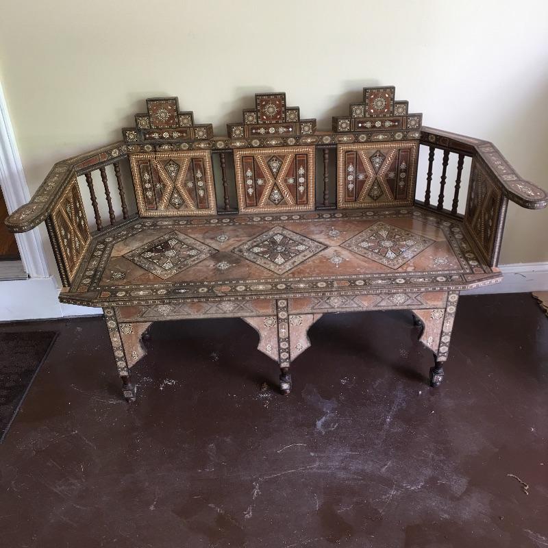 Beautiful inlaid wood Bench that will need a little TLC as it is missing some inlay pieces and has some water damage. Don’t let the little bit of work this bench needs scare you off as it is a diamond in the rough.