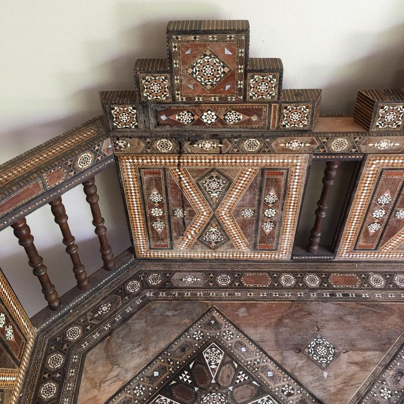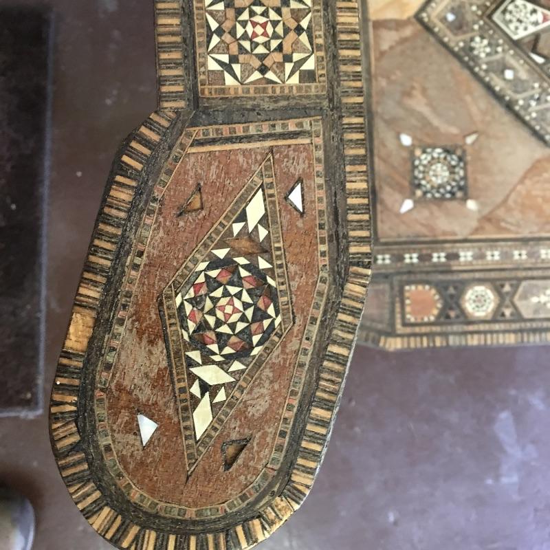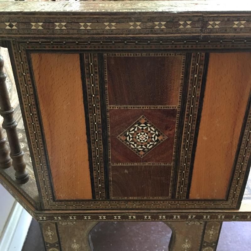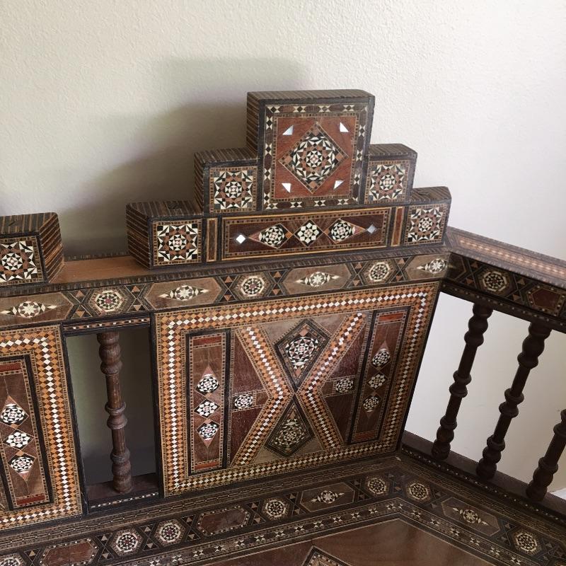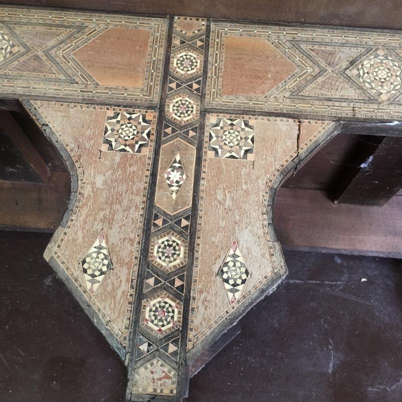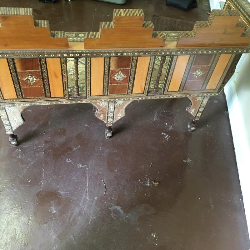 Beautiful inlaid wood Bench that will need a little TLC as it is missing some inlay pieces and has some water damage. Don’t let the little bit of work this bench needs scare you off as it is a diamond in the rough.