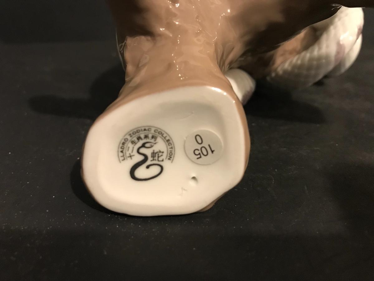 Chinese Zodiac - Year Of The Snake #6780 - Part of a full set of 12. All Lladros are in excellent vintage condition without original boxes, except where noted. All items have been inspected and any damages or imperfections have been photographed and noted to the best of our knowledge and ability. It is the responsibility of the buyer to inspect all pictures, as they are the best representation of the items. The pictures show condition, measurements if taken, and what is included in the lot. Upon pickup, it is the responsibility of the buyer to inspect their items prior to leaving the premises. Once the items leave the premises, there will be no refunds or returns. Buyers are also responsible for bringing their own boxes and packing materials for their items. Thank you.