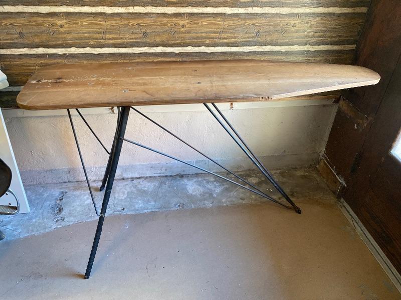 Lot 235 Vintage Heavy Duty Ironing Board Repurpose Unique Mechanism All steel legs