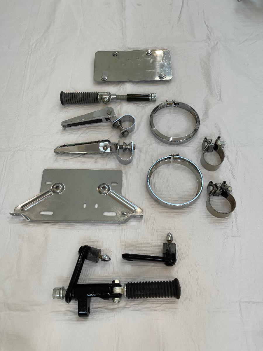 Includes Touch Up Paint, Lens, Foot Pegs and Clamps.