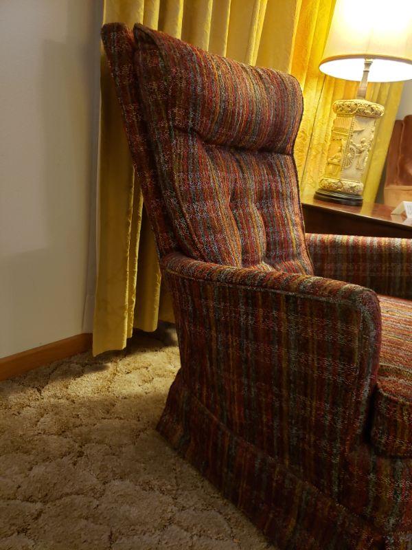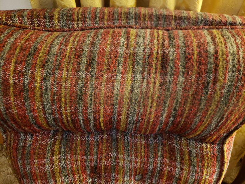Has some fuzzy wear on the head rest. Could be cleaned up with a lint shaver.