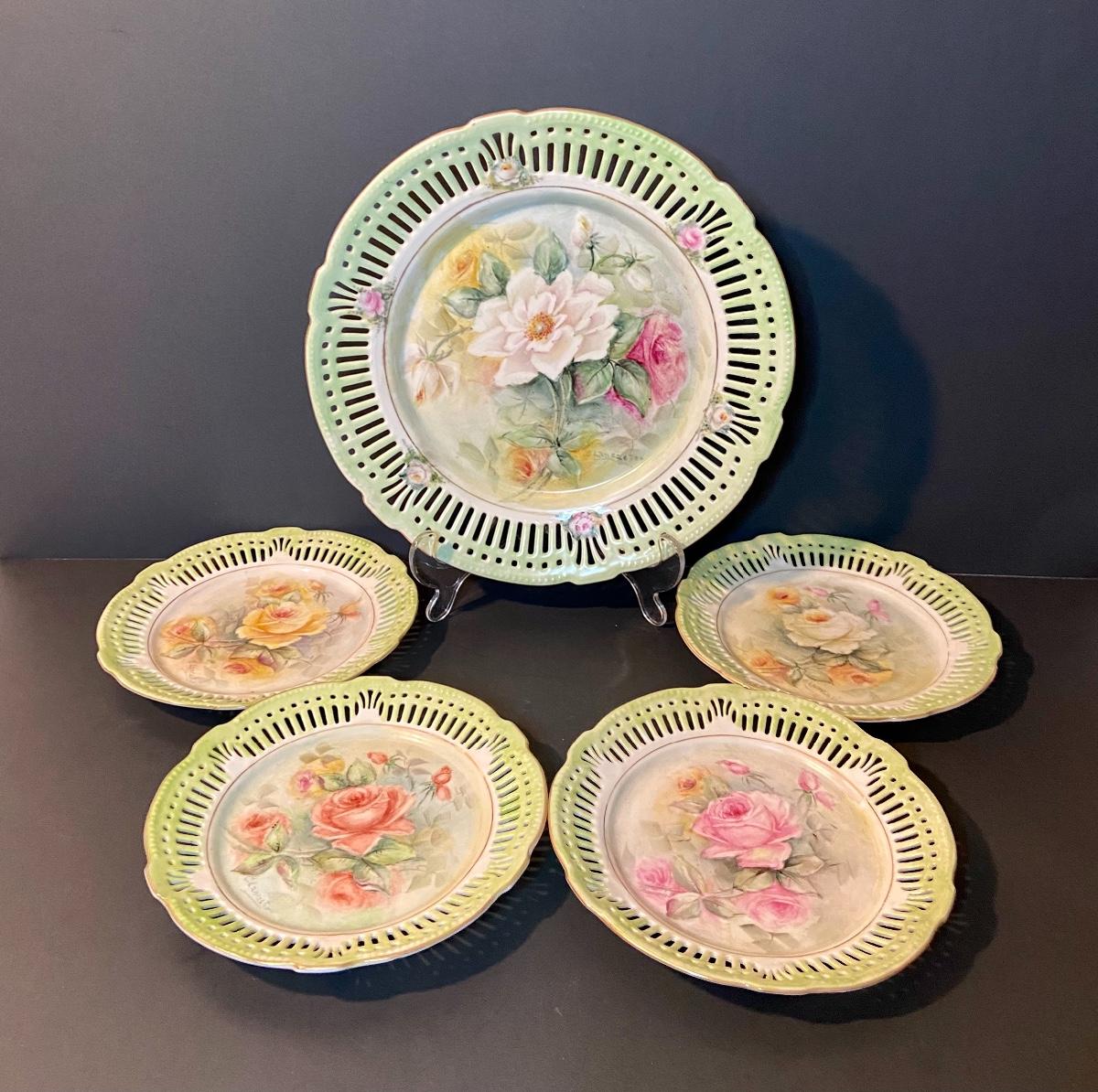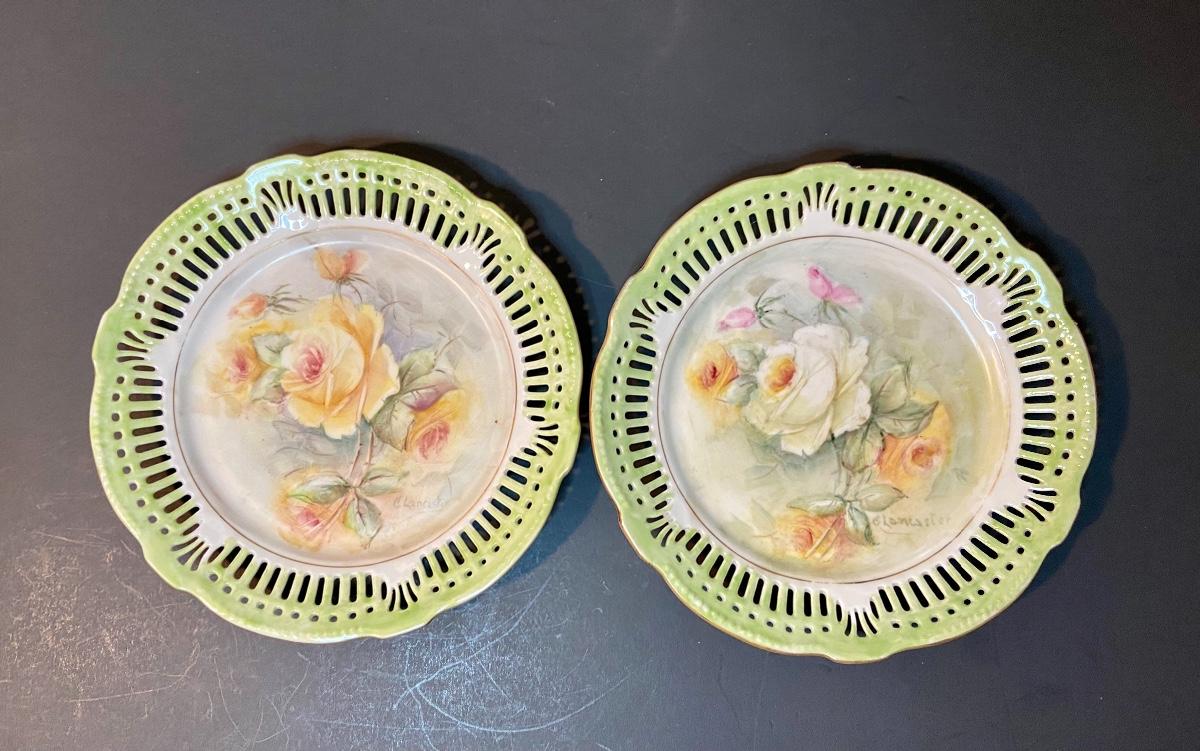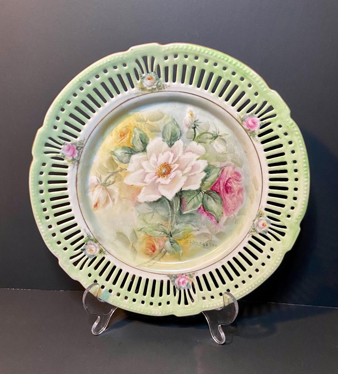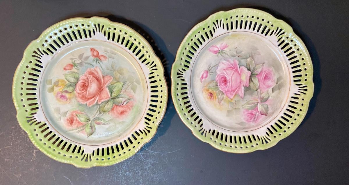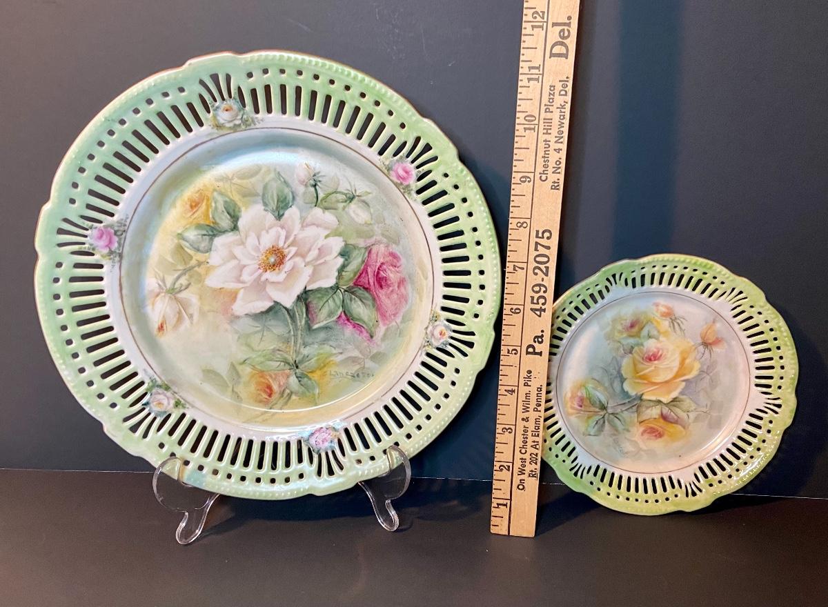 Floral decorative plates by Schrwarzenahmmer Germany. Please see all pictures as they are the best representation of the items. The pictures show condition, measurements if taken, and what is included in the lot. Due to the large amount that we photograph and the time frame, we are not always able to take measurements. All items unless noted, are pre-owned and have been used. If you purchased furniture, you must bring help. We do not allow one person to carry large furniture out on their own. Bring help, tools and a truck for the safety of our client’s homes, and your personal safety. Company policy. Thank you.