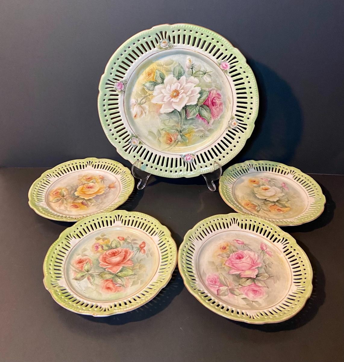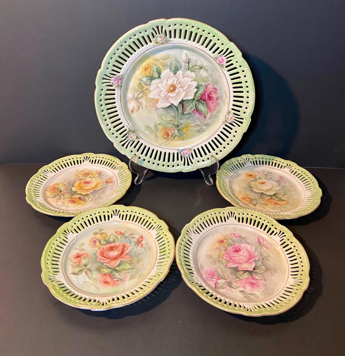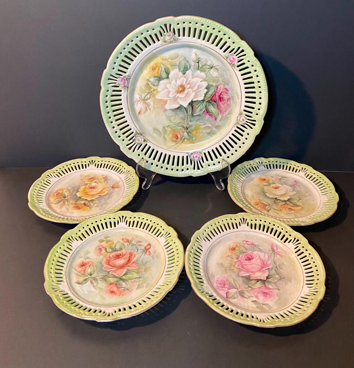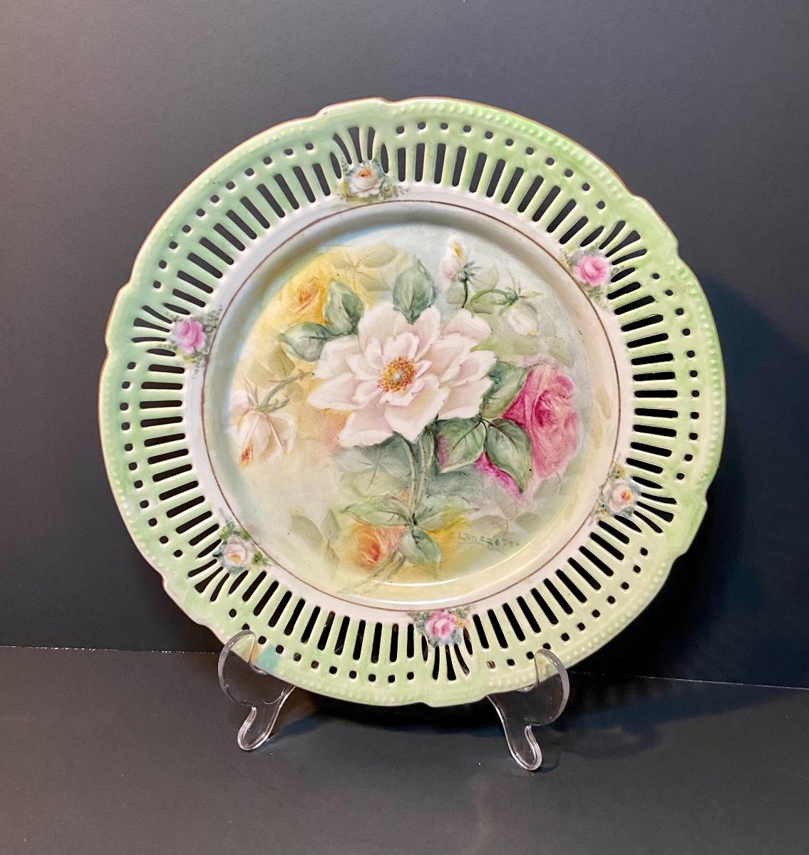 Floral decorative plates by Schrwarzenahmmer Germany. Please see all pictures as they are the best representation of the items. The pictures show condition, measurements if taken, and what is included in the lot. Due to the large amount that we photograph and the time frame, we are not always able to take measurements. All items unless noted, are pre-owned and have been used. If you purchased furniture, you must bring help. We do not allow one person to carry large furniture out on their own. Bring help, tools and a truck for the safety of our client’s homes, and your personal safety. Company policy. Thank you.