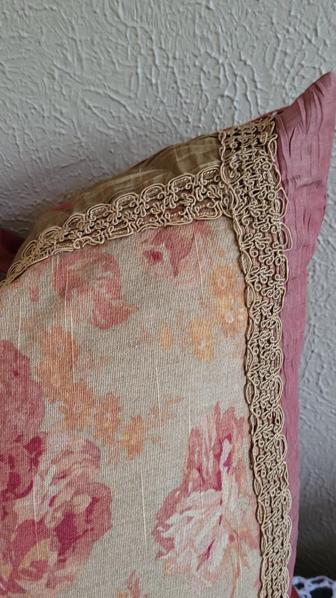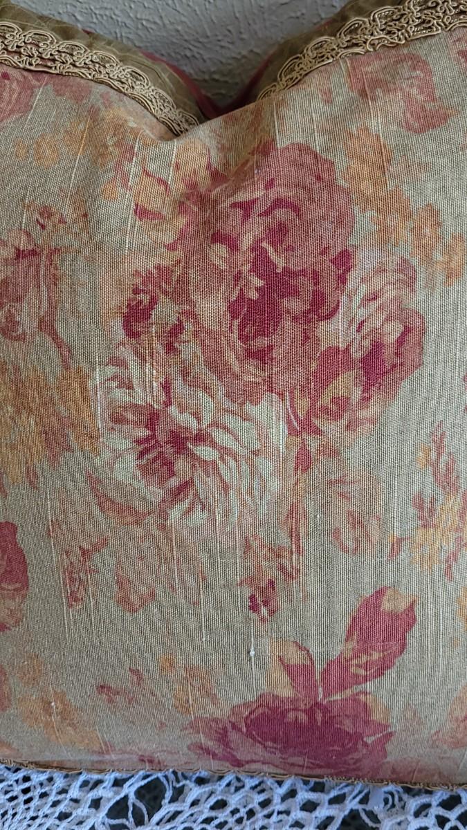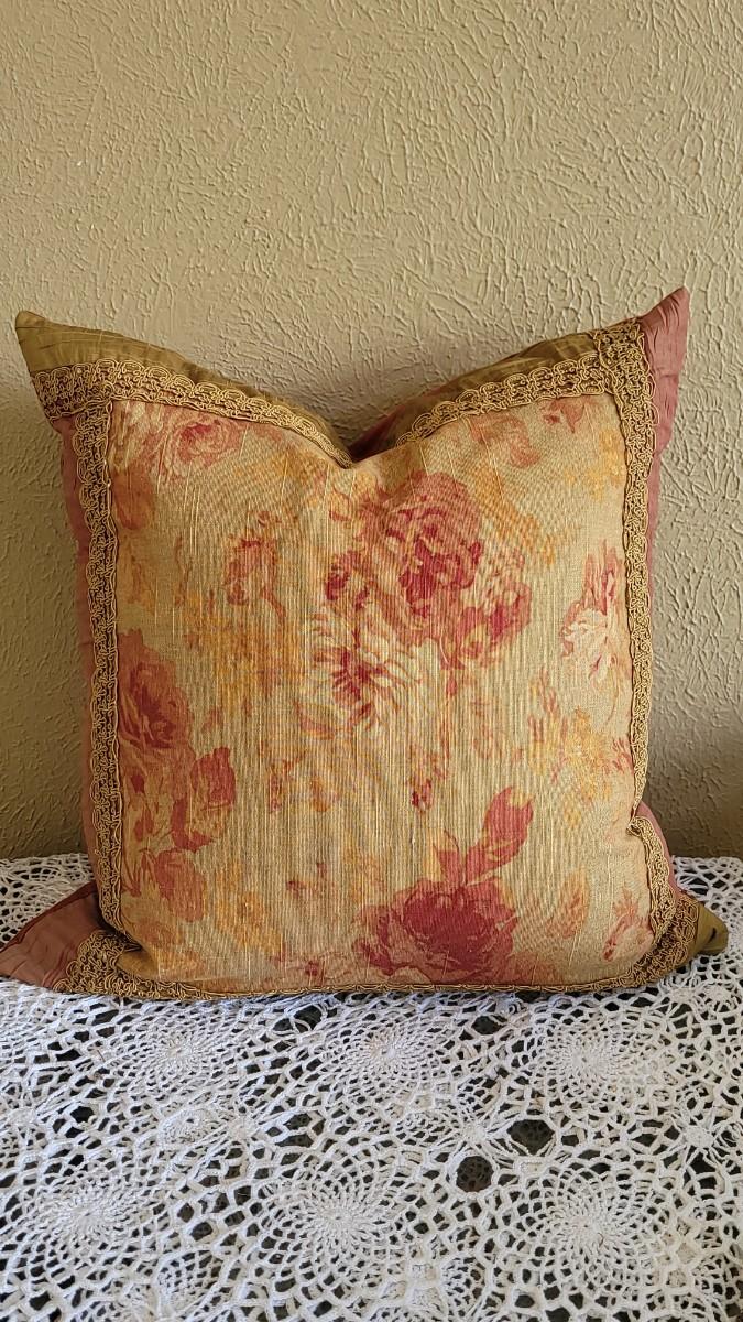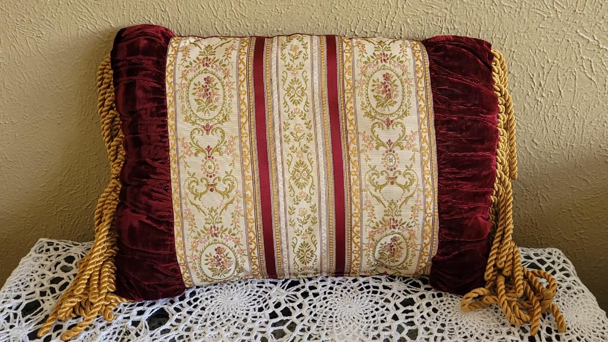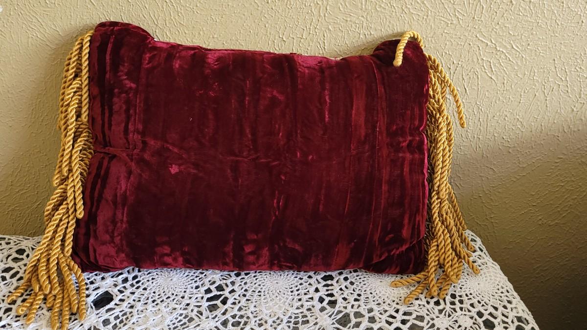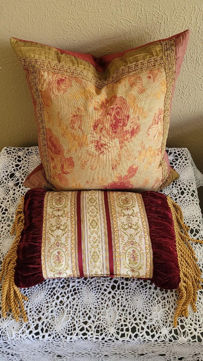 Lot 236: Down Rose Pillow and Velvet and Gold Rope Tassel Pillow