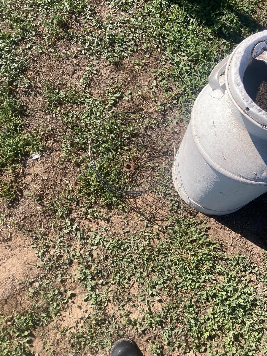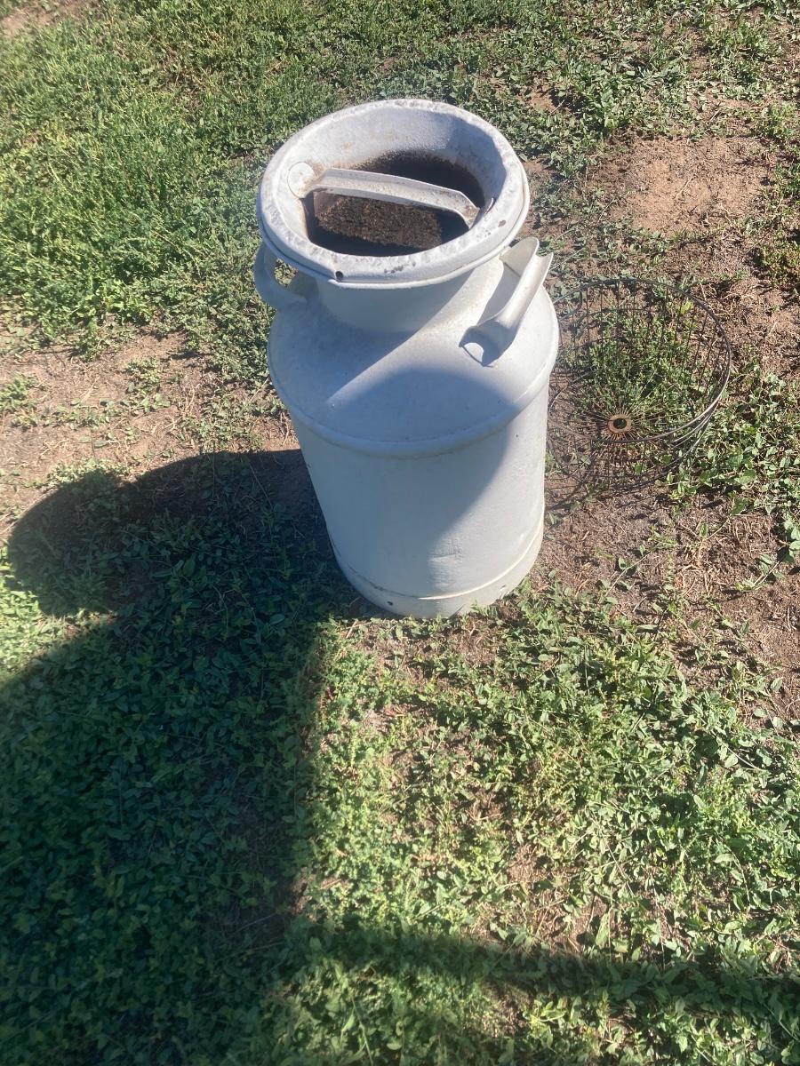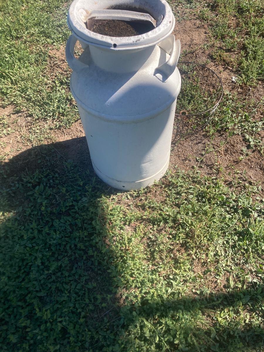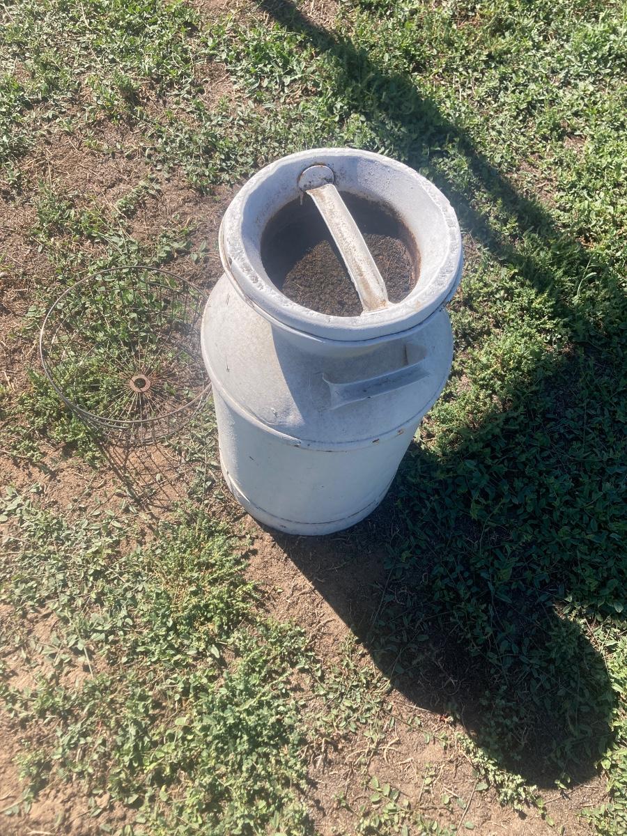 LOT 236 MILK CAN IN GOOD CONDITION  AND WIRE EGG BASKET (NF)