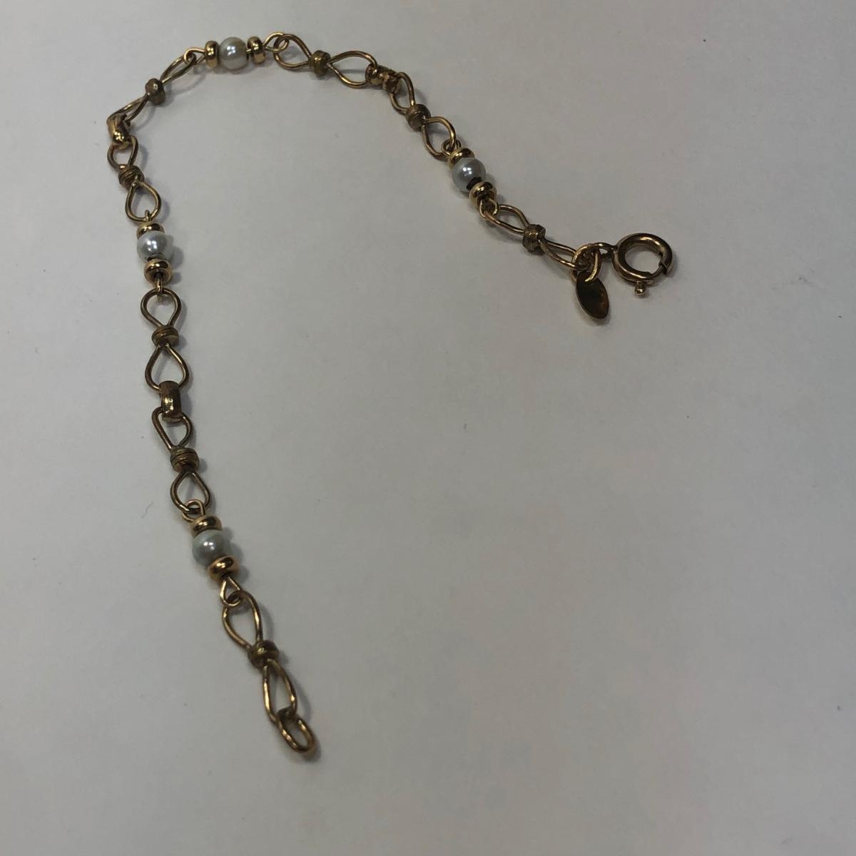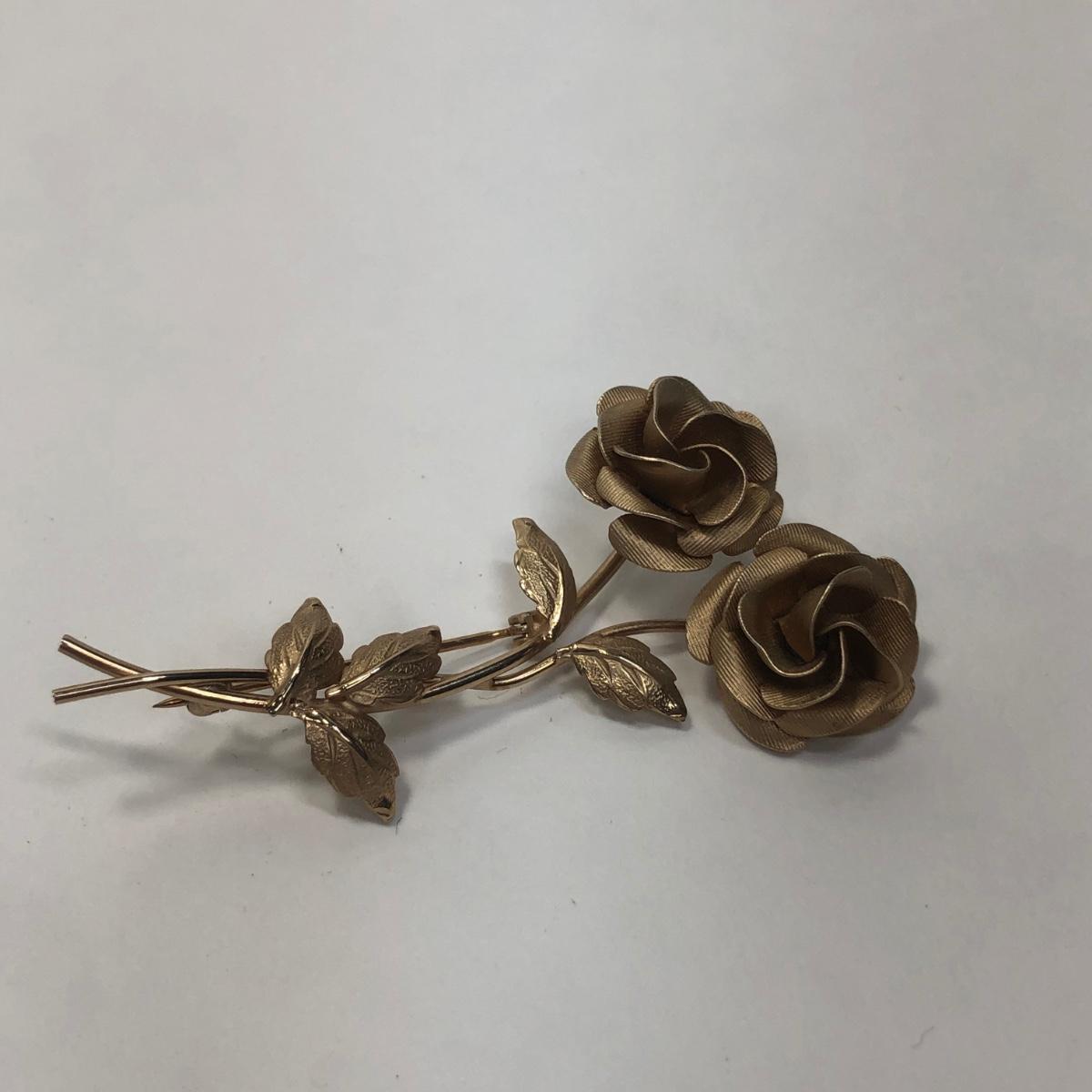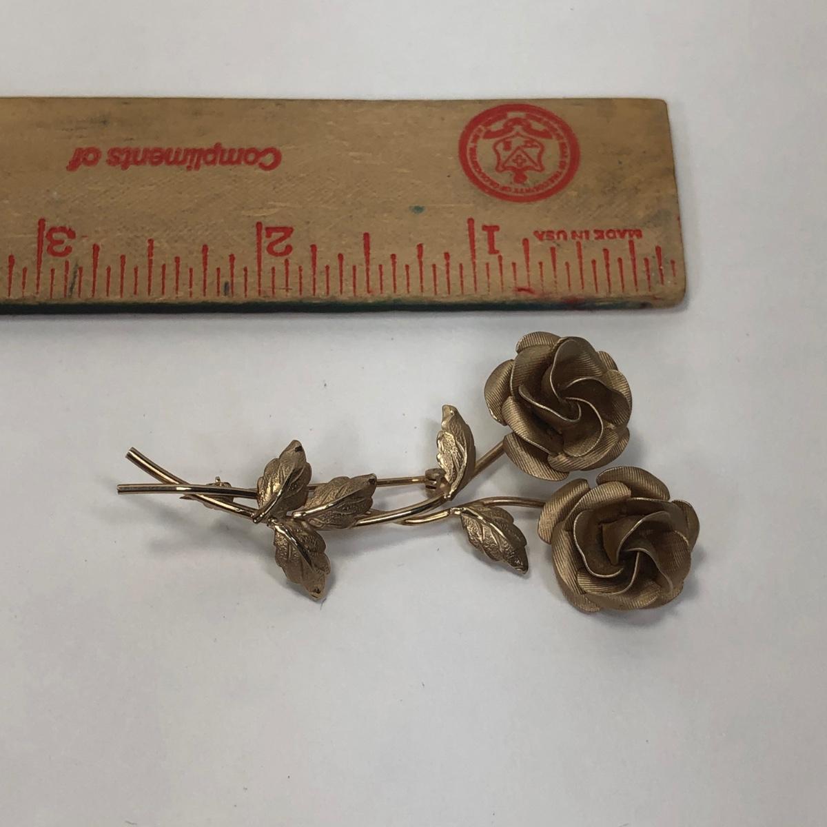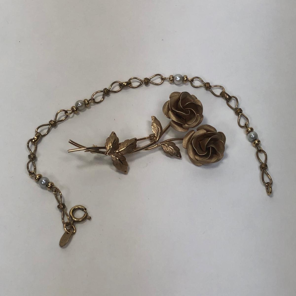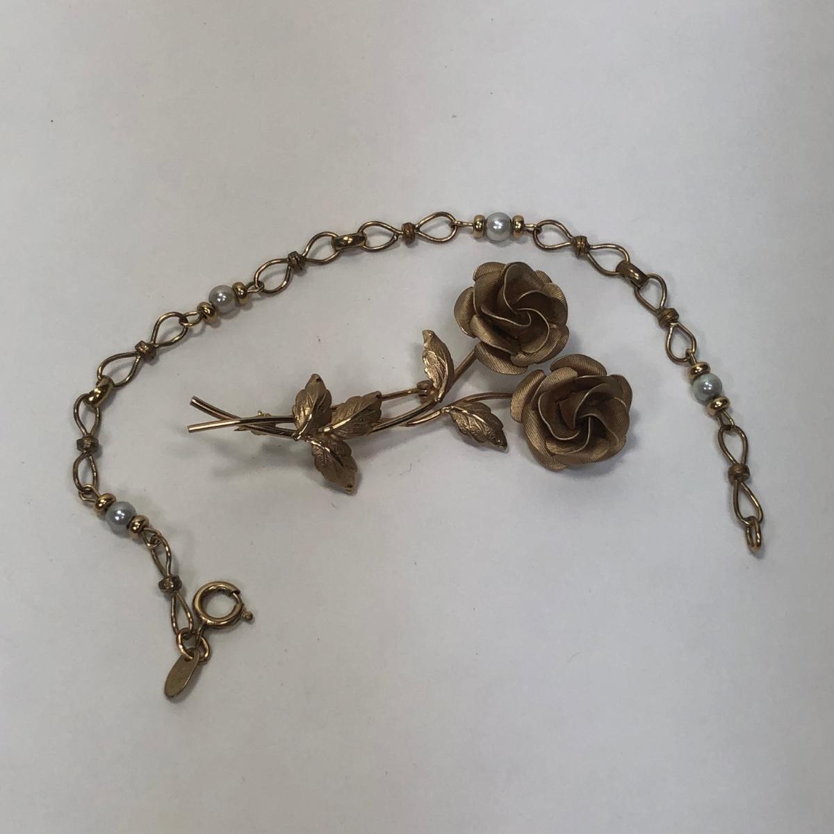 LOT 236: Vintage 12k Gold Fill Rose Brooch Marked AZ & 1/20 14K Gold Fill/Faux PEarl Bracelet (7.25")