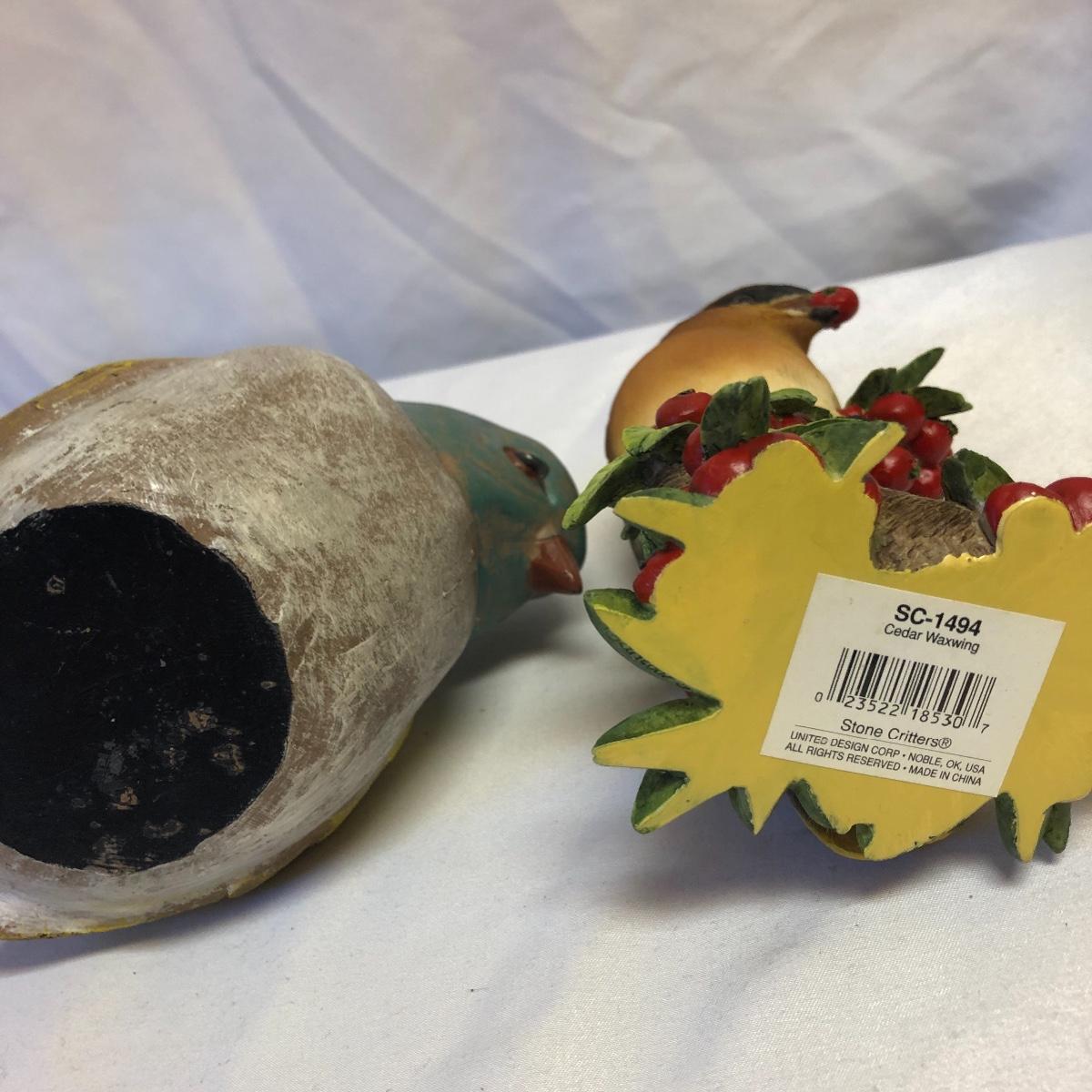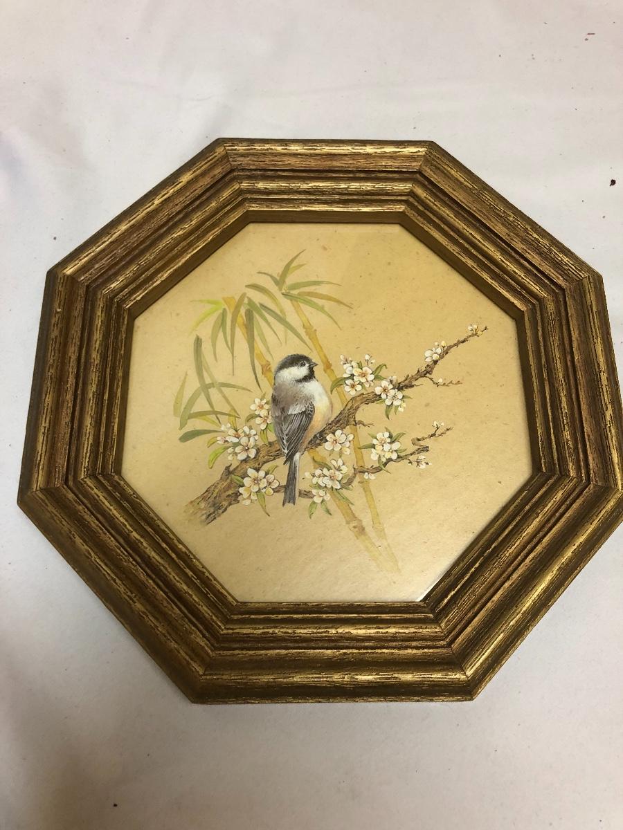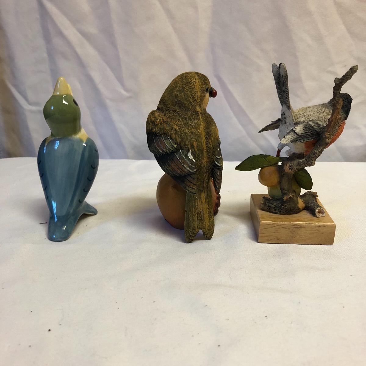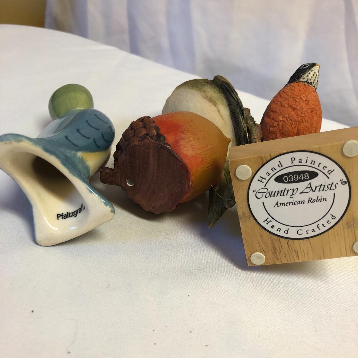 Ornithologists will be flying over to buy this bird lot! This lot includes framed art, cardboard boxes, figurines, ornaments, Ski Country bourbon bottle, two ginger jars, decoupage purse and more. Birds are made from porcelain, resin, wood and other materials. Largest frame measures 12” x 23”.