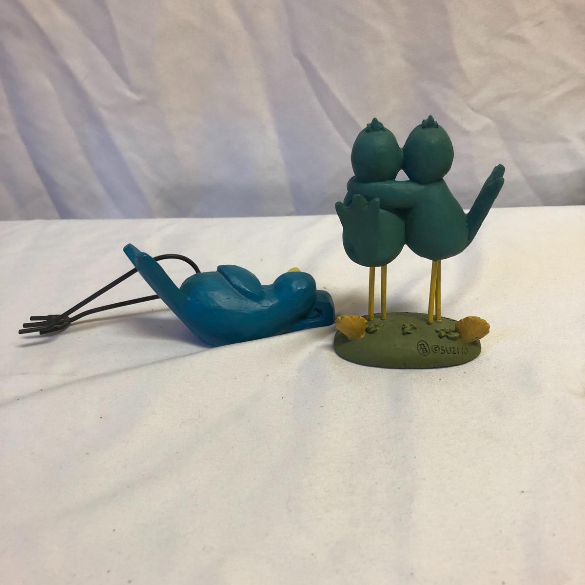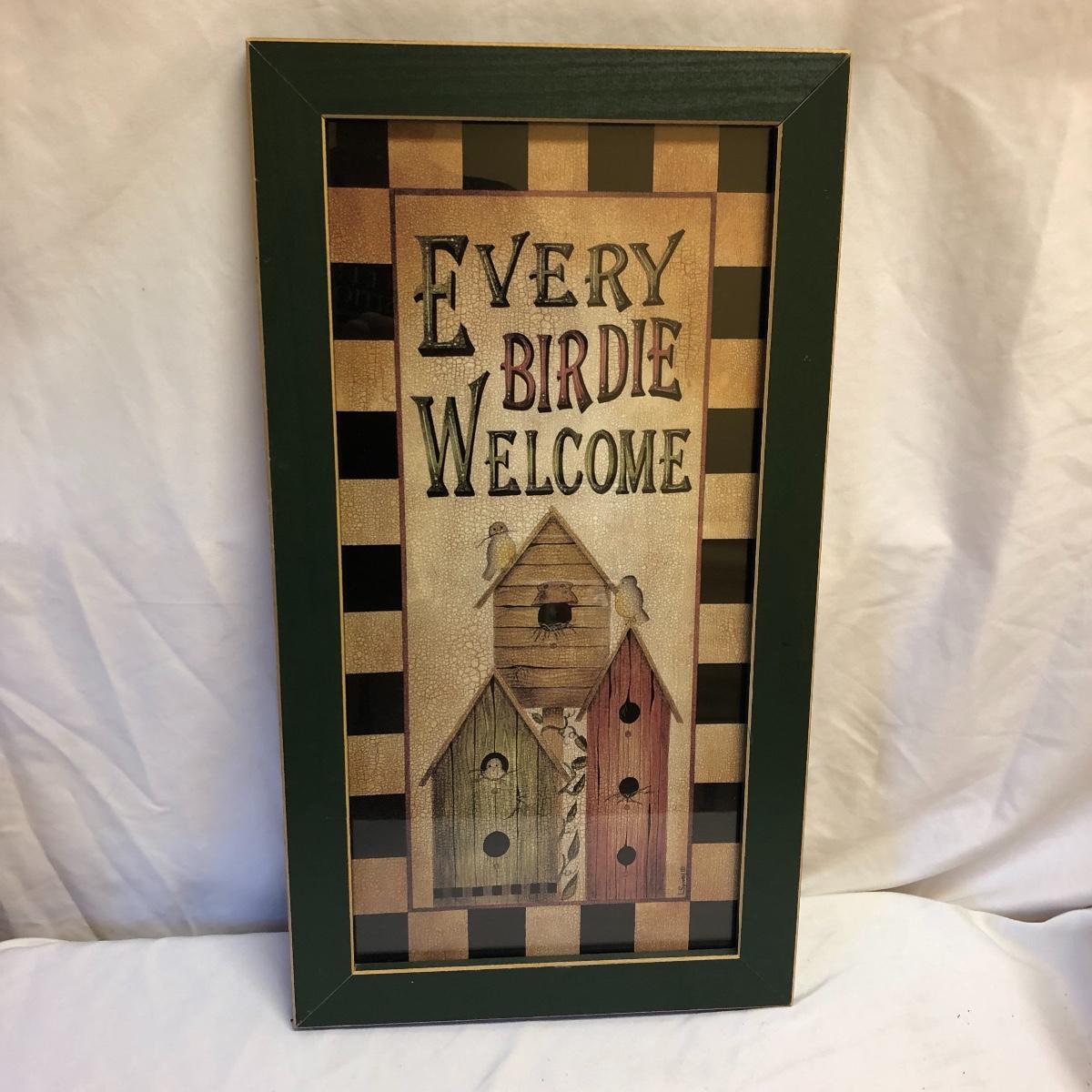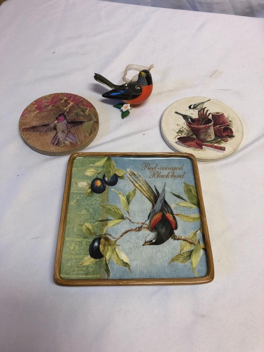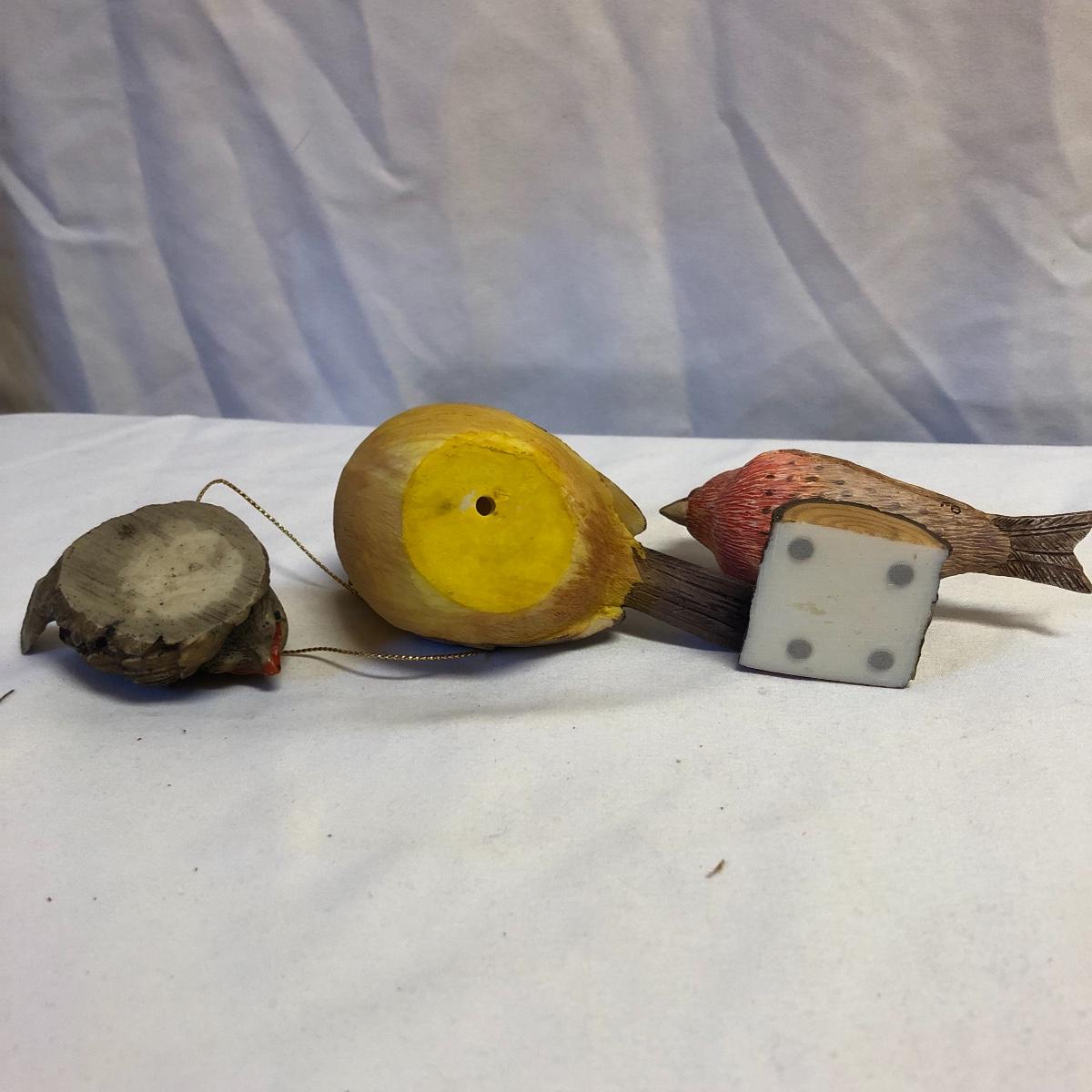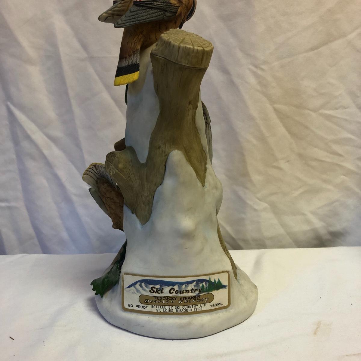 Ornithologists will be flying over to buy this bird lot! This lot includes framed art, cardboard boxes, figurines, ornaments, Ski Country bourbon bottle, two ginger jars, decoupage purse and more. Birds are made from porcelain, resin, wood and other materials. Largest frame measures 12” x 23”.