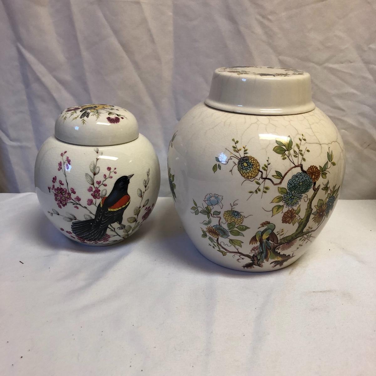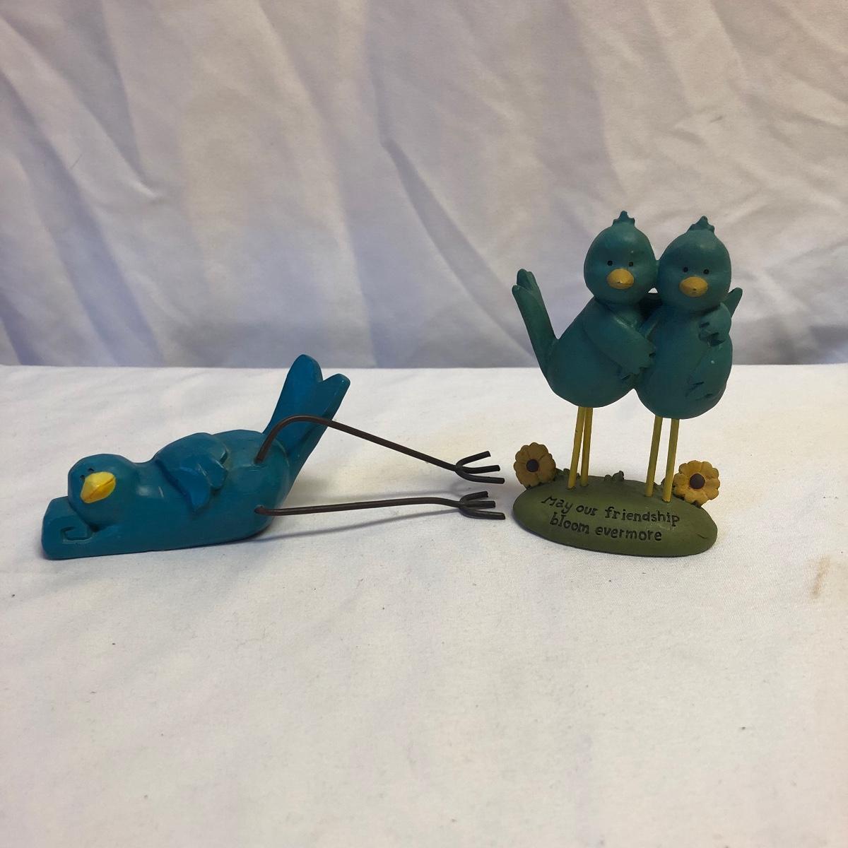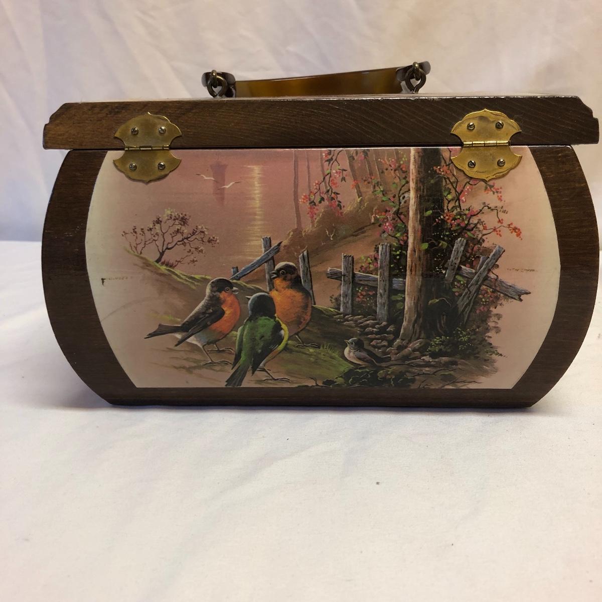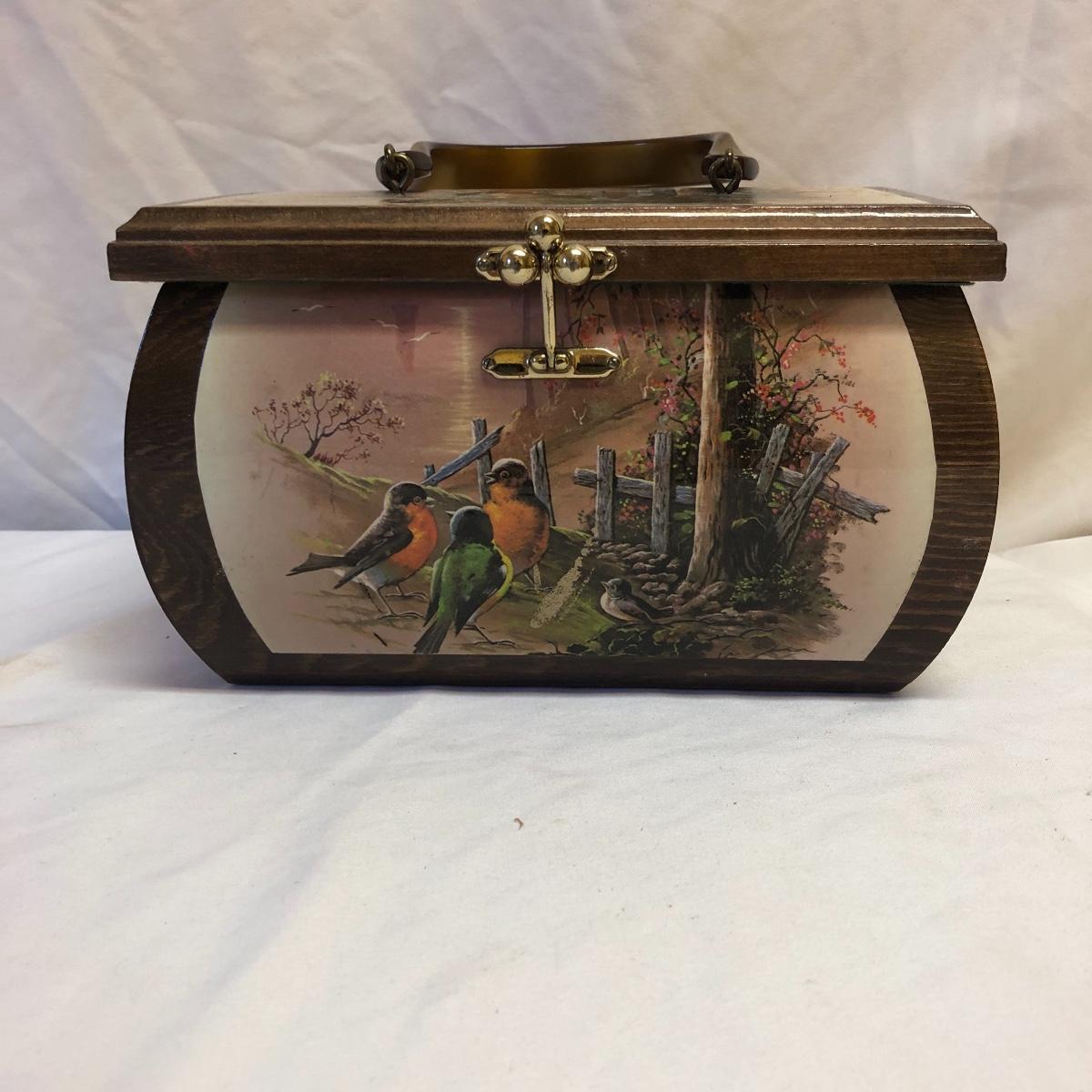 Ornithologists will be flying over to buy this bird lot! This lot includes framed art, cardboard boxes, figurines, ornaments, Ski Country bourbon bottle, two ginger jars, decoupage purse and more. Birds are made from porcelain, resin, wood and other materials. Largest frame measures 12” x 23”.
