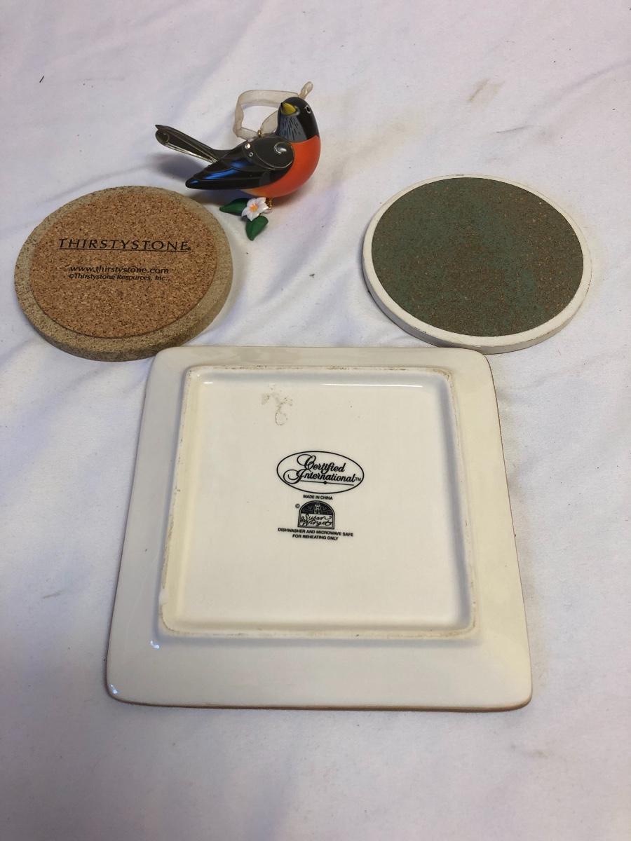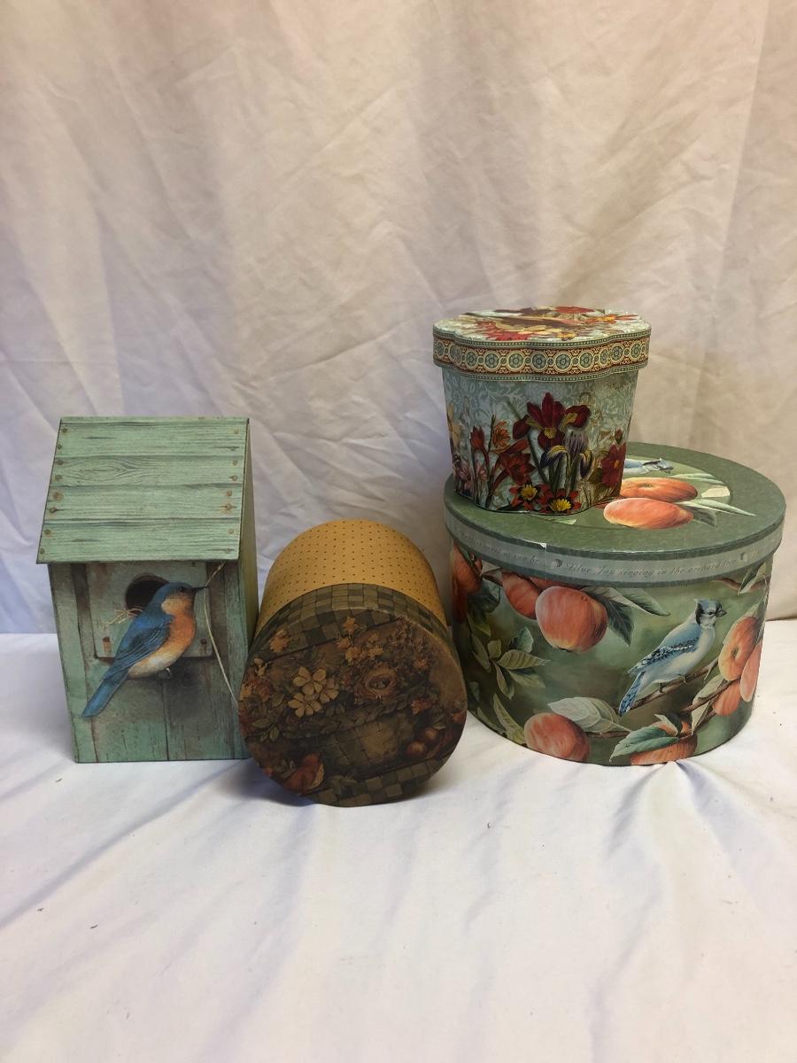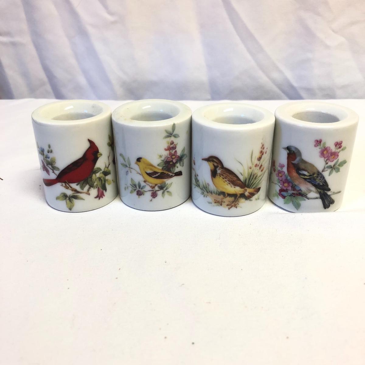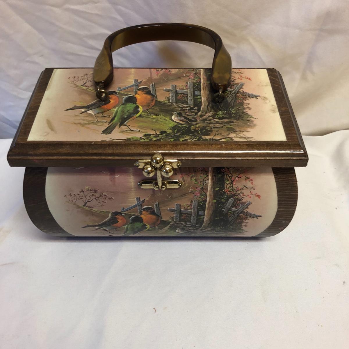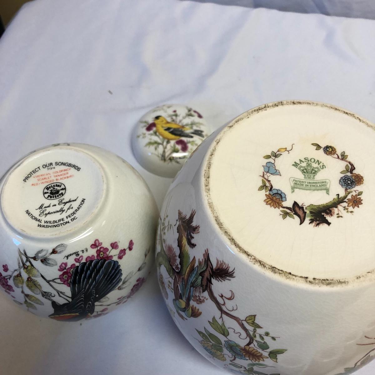Ornithologists will be flying over to buy this bird lot! This lot includes framed art, cardboard boxes, figurines, ornaments, Ski Country bourbon bottle, two ginger jars, decoupage purse and more. Birds are made from porcelain, resin, wood and other materials. Largest frame measures 12” x 23”.