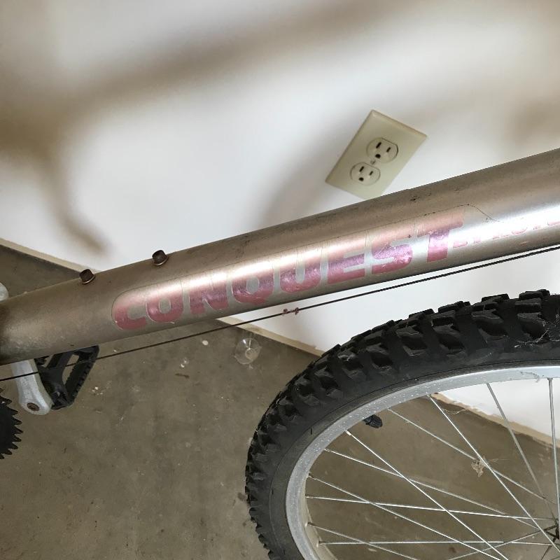 This twenty one speed Conquest by Royce Union has Shimano Alivio derailleur and brakes with quick release 26” wheels. This bike appears to be sturdy and rolls well, but pedals do not move wheels (they do however move the chain) and gears do not appear to change when prompted. Bike has been stored in a basement and will need cleaning, wheels are fully inflated. Full number etched in handle bars reads 0940228333. Local pick up only.