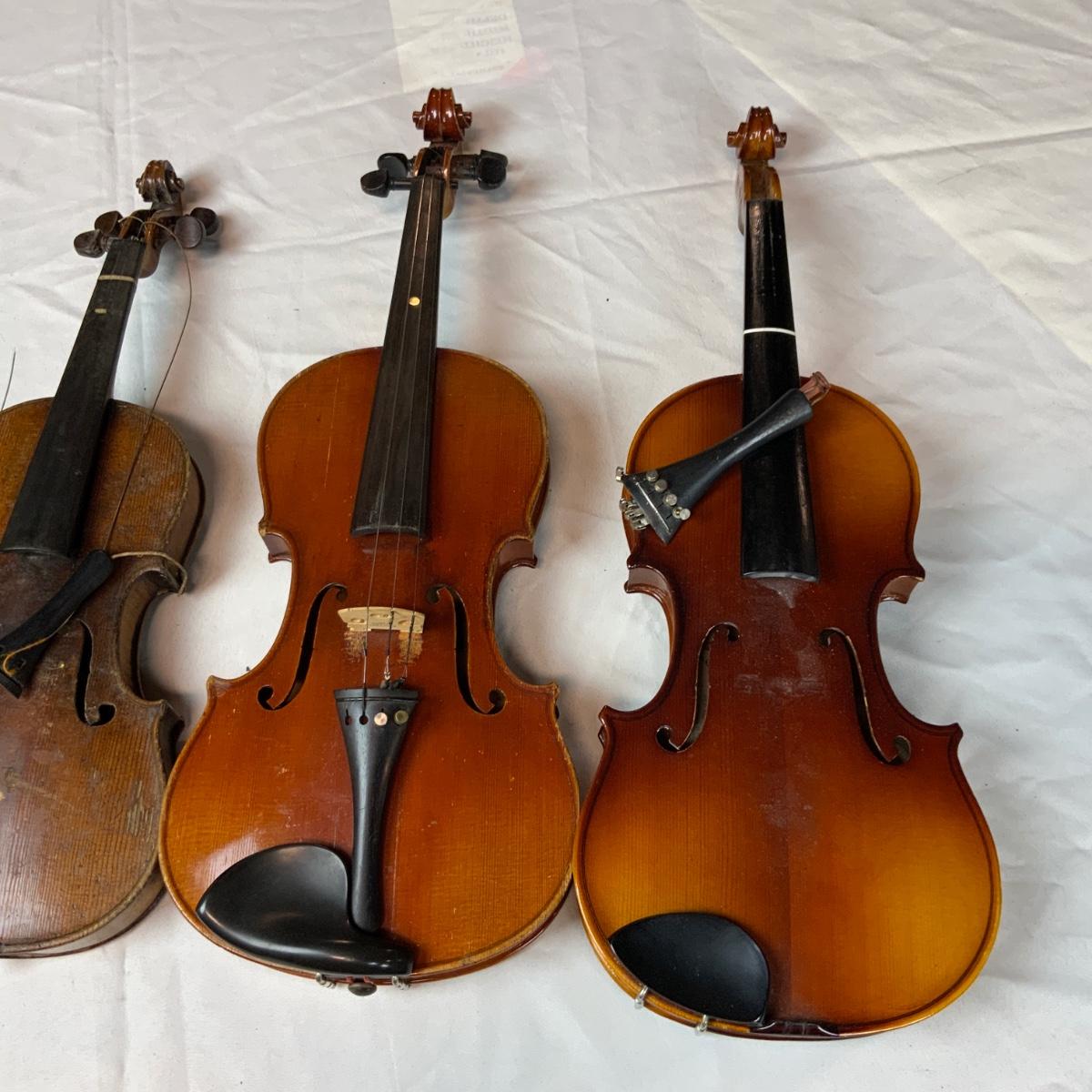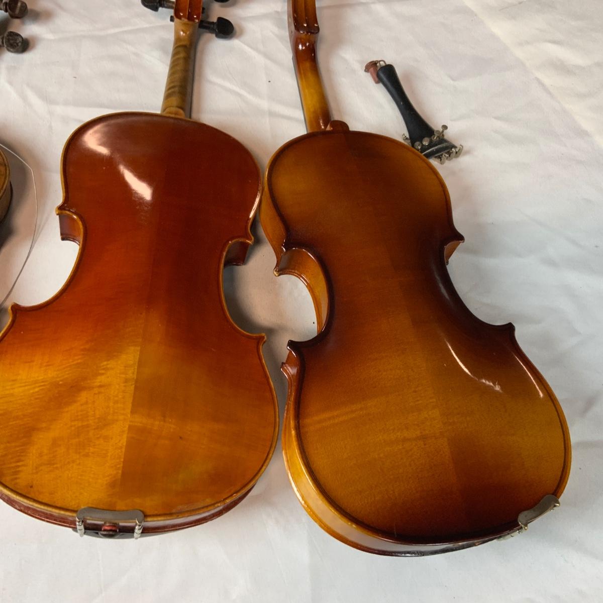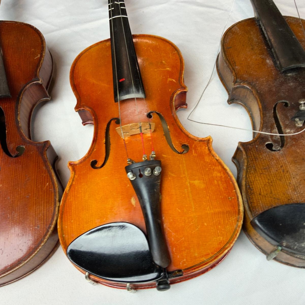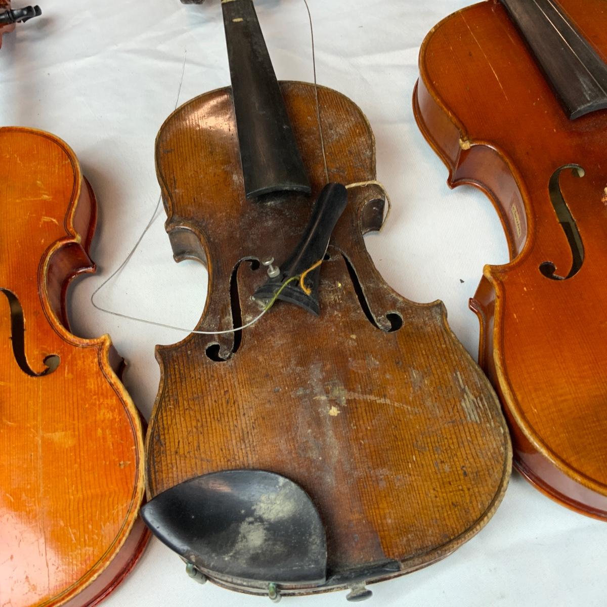 Five Wall-Hanger Violins with Cases. Five nice violins for artwork or Decour purposes. Each of them come with their own case. //::\\ Please see photos for details and condition. No attempt has been made to hide any imperfections. All items listed in this auction are warehouse items, and need to be cleaned. A majority of the items need restoration as well. All items are sold AS IS and WITHOUT GUARANTEE. If you are uncertain about an item, DO NOT BID. Due to the nature of this online auction in-person inspection is HIGHLY recommended. All Sales are FINAL. Pick Up Times are FIRM. Please confirm with your own schedule that you can pick up in the scheduled times listed in the Terms and Conditions. Any questions please message the auctioneer. DO NOT Contact The Harp Gallery.