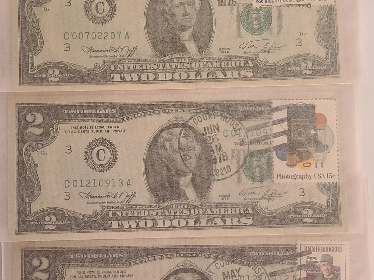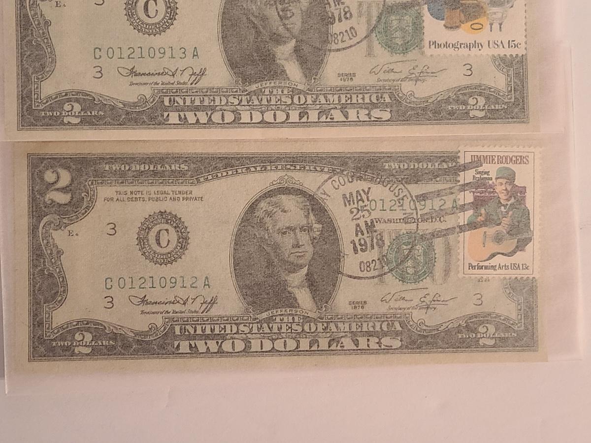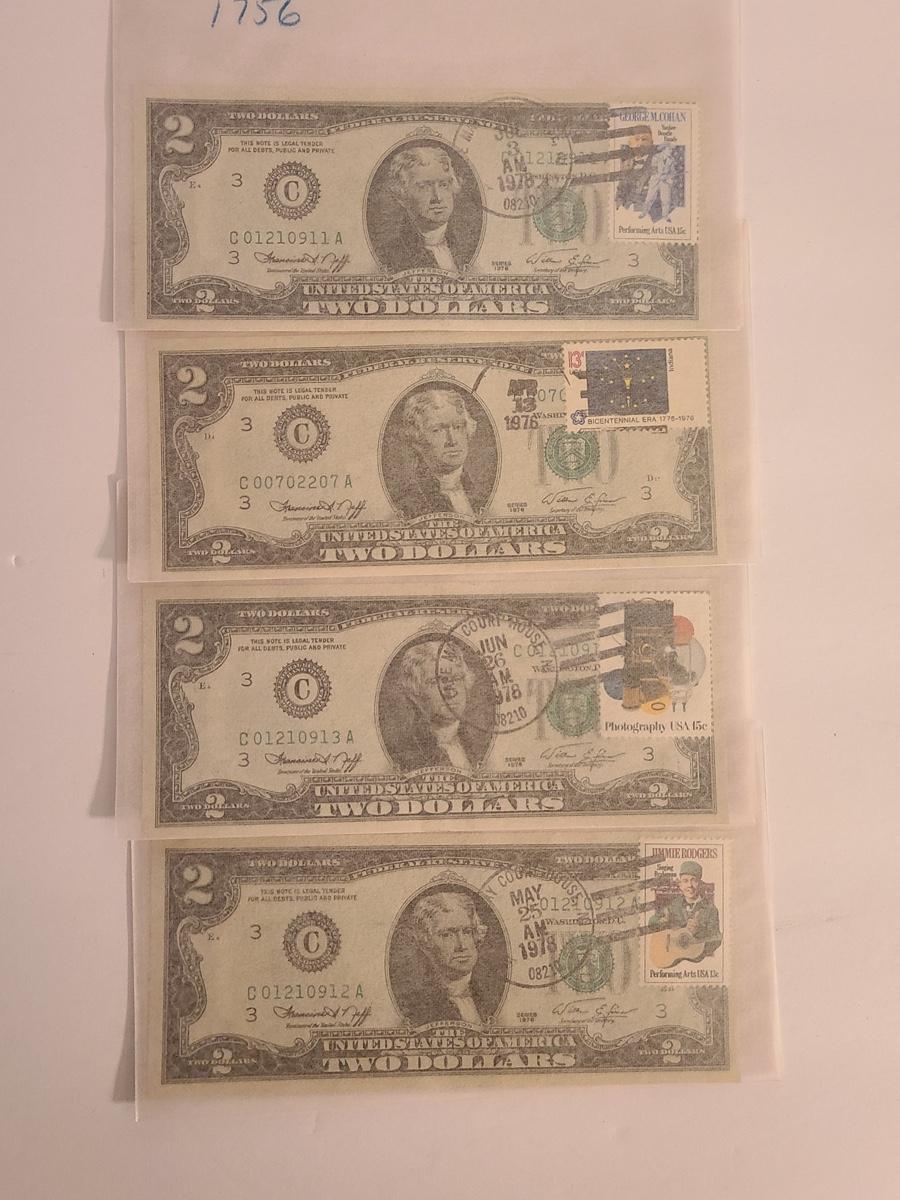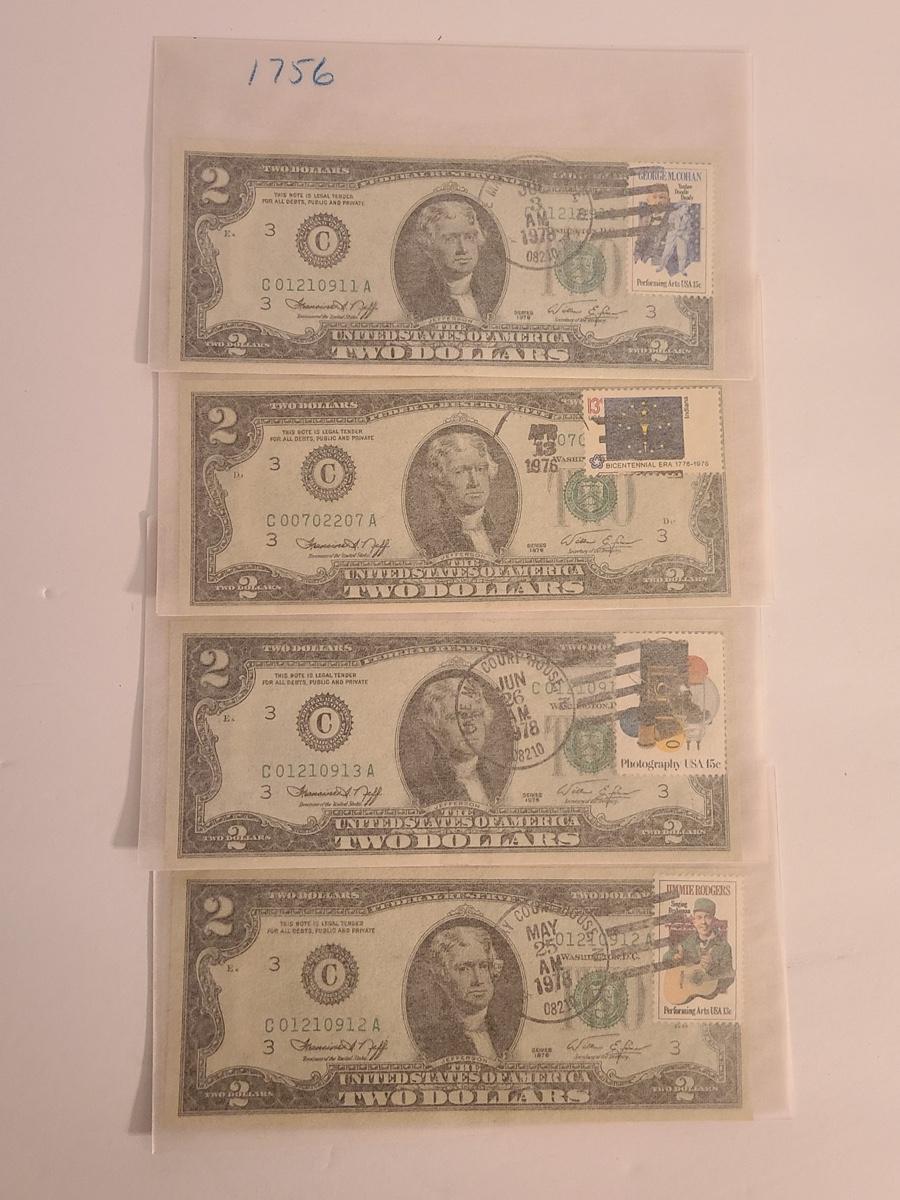 Lot 236: Four $2.00 Bills Stamped and Sealed First Day of Issue
