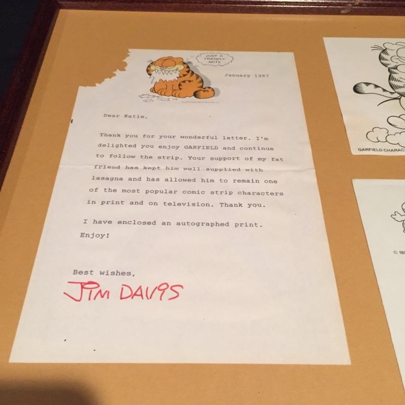 Lot 236 - Garfield Puppet and Framed and Signed Letter from Cartoonist Jim Davis
