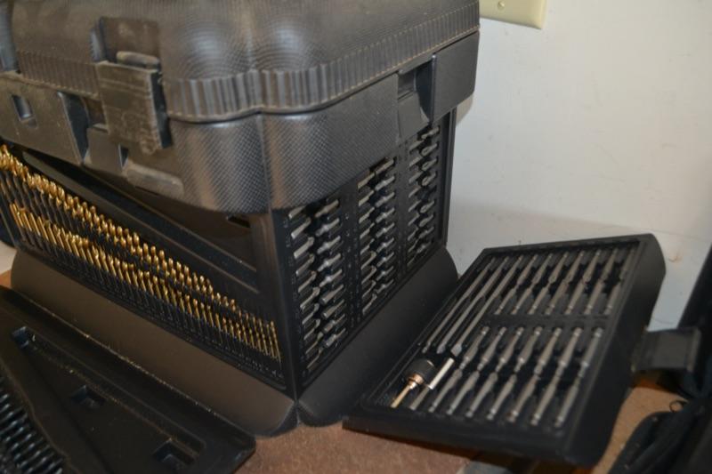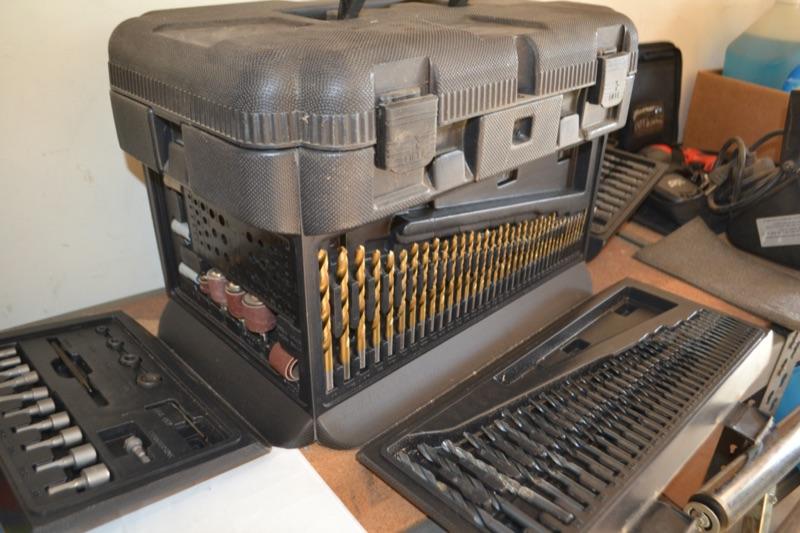 TOOL BOX WITH BUILT IN DRILL AND SCREWDRIVER BIT SET