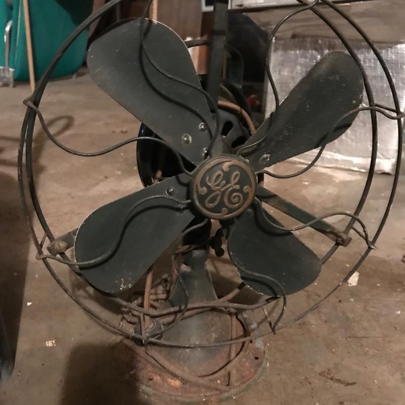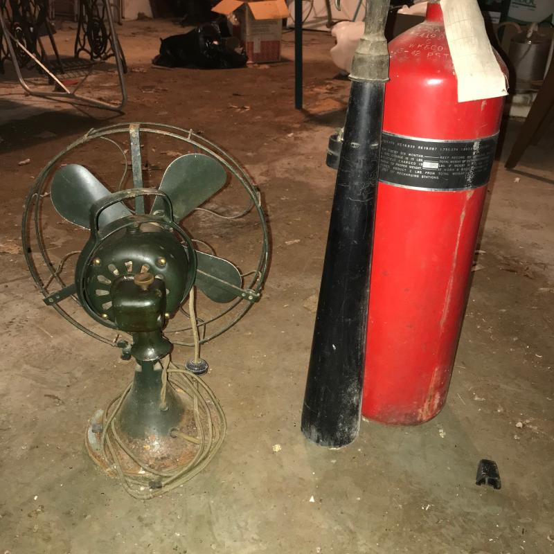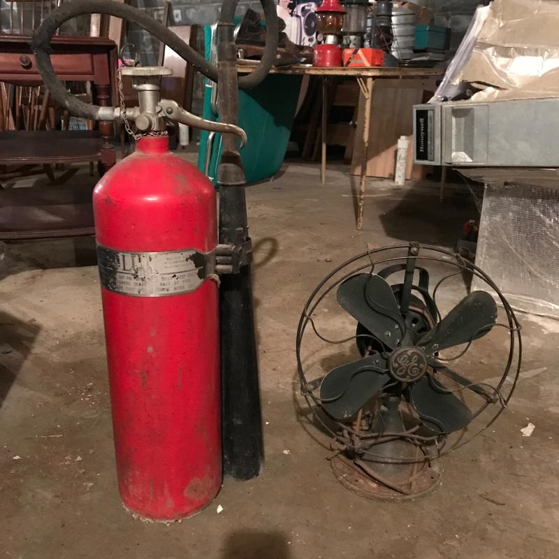 Cool Retro Fan by GE. Super heavy. Lot also includes a vintage fire extinguisher. No shipping. Local pick up only.