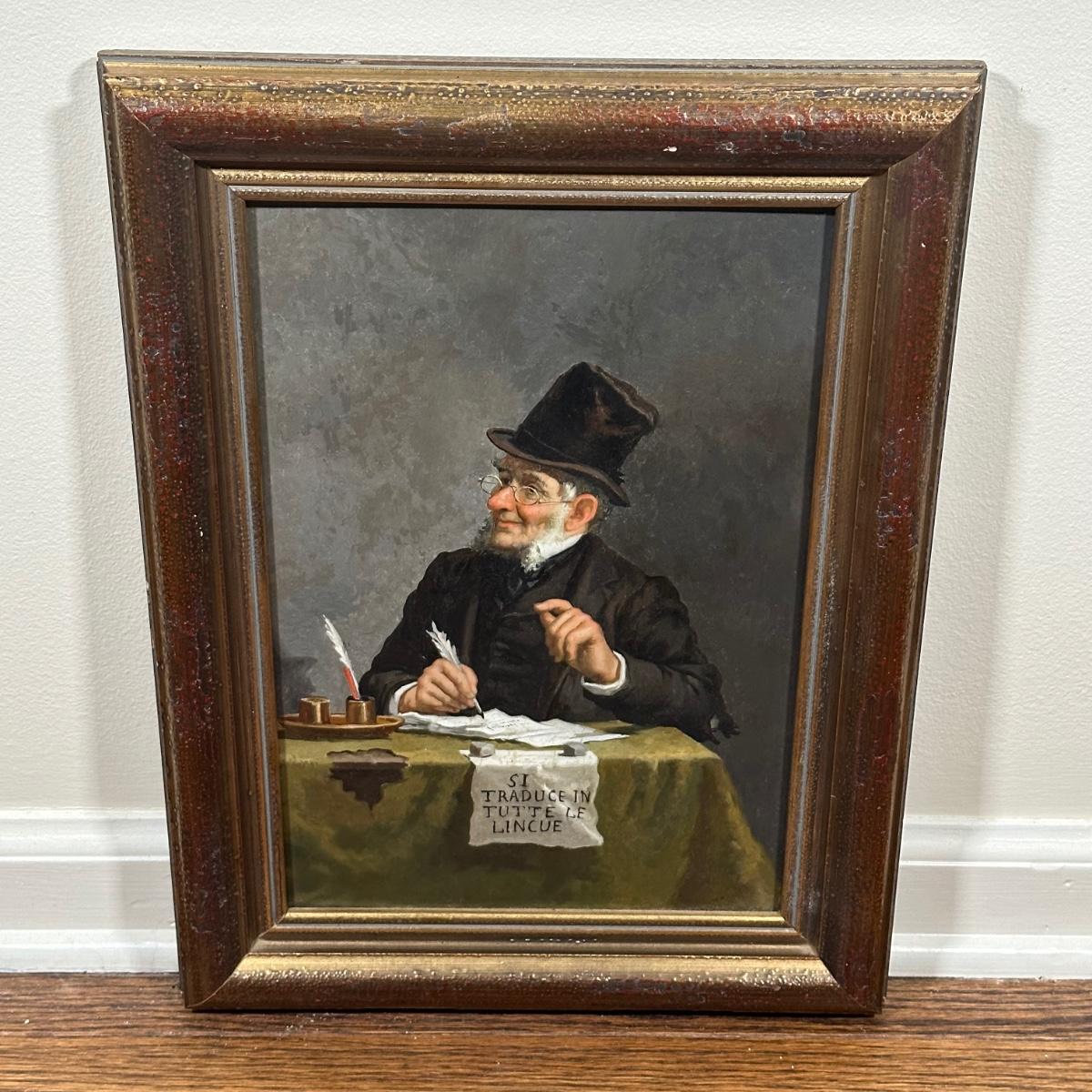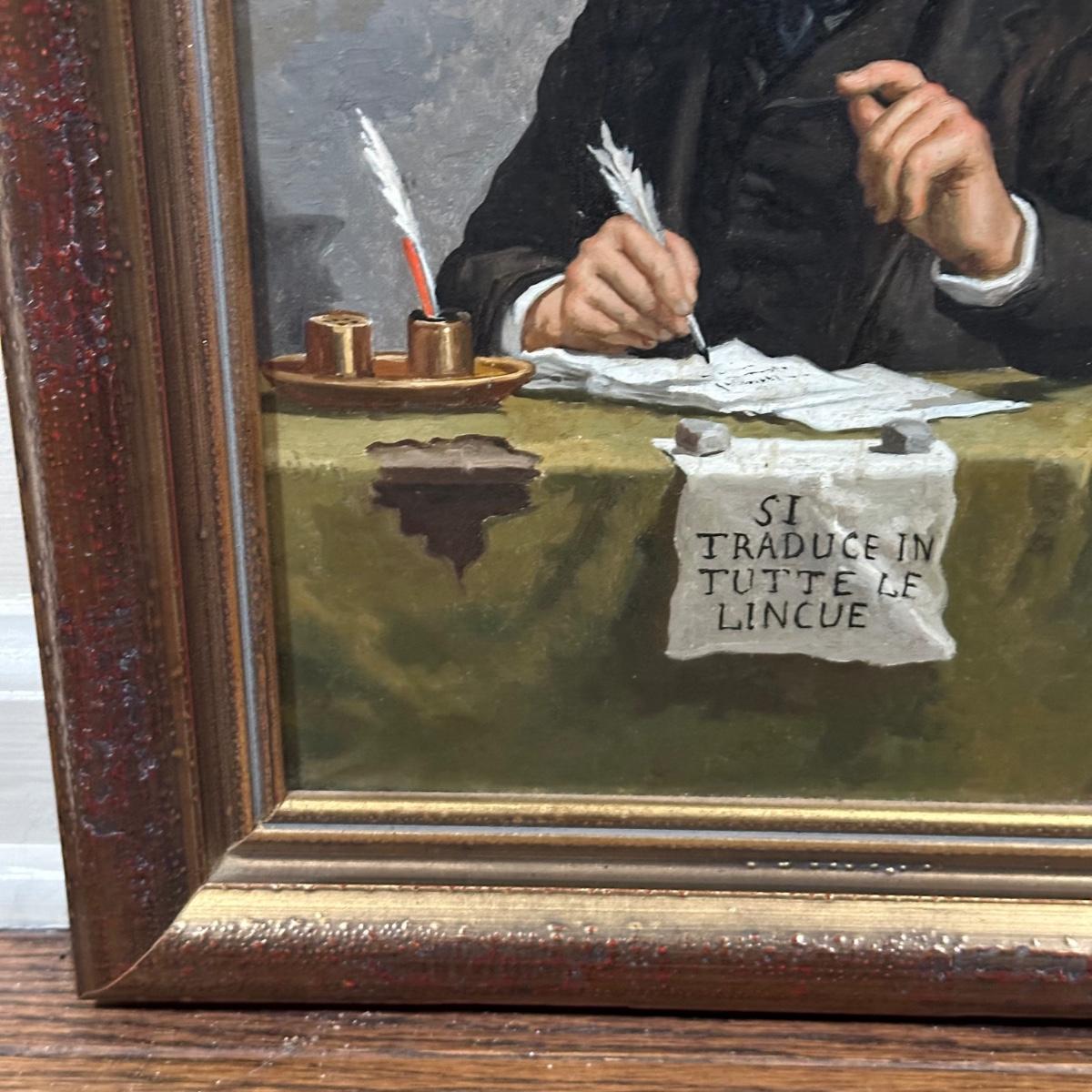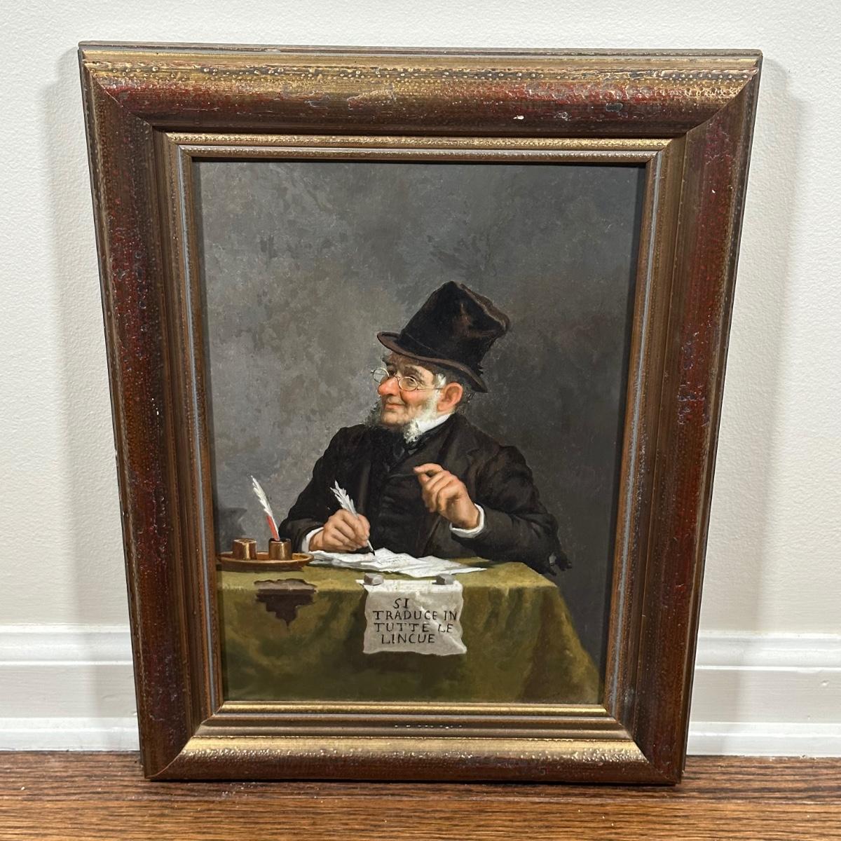 LOT 236X: Michele Ricci (Italian, 19th Century) Oil Painting, Framed. Gentleman Smoking Pipe Quill Pen