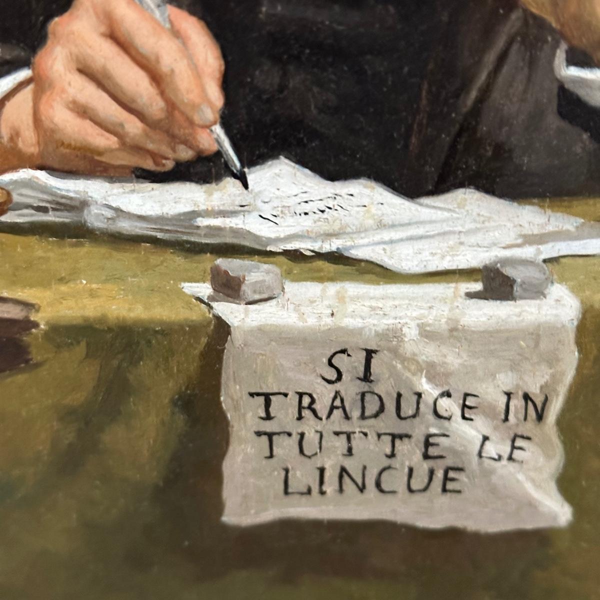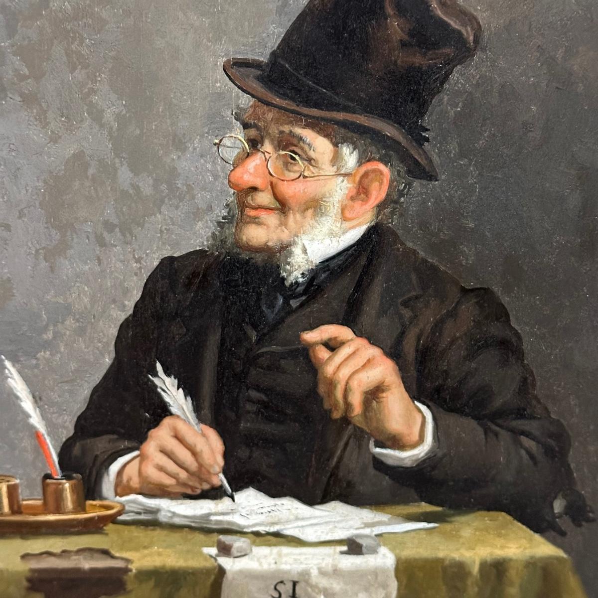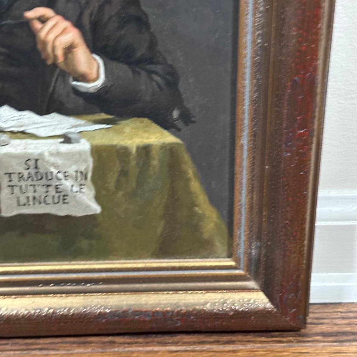 LOT 236X: Michele Ricci (Italian, 19th Century) Oil Painting, Framed. Gentleman Smoking Pipe Quill Pen
