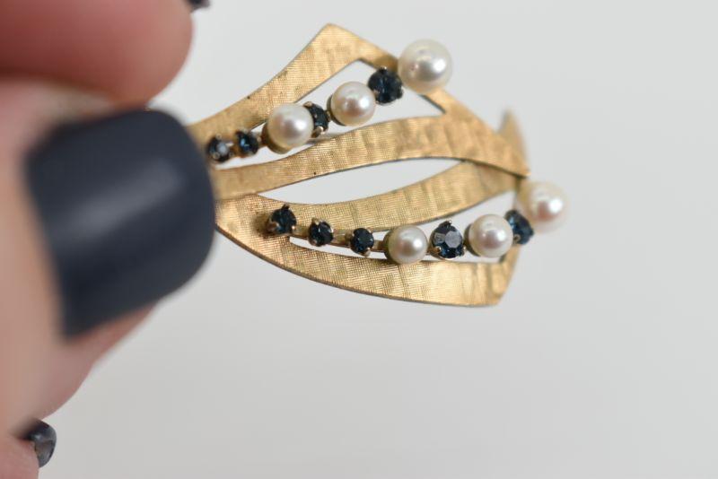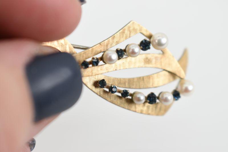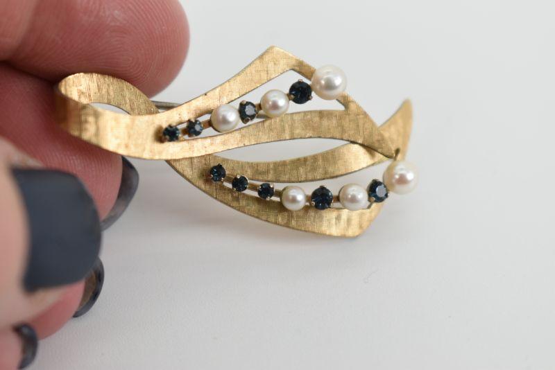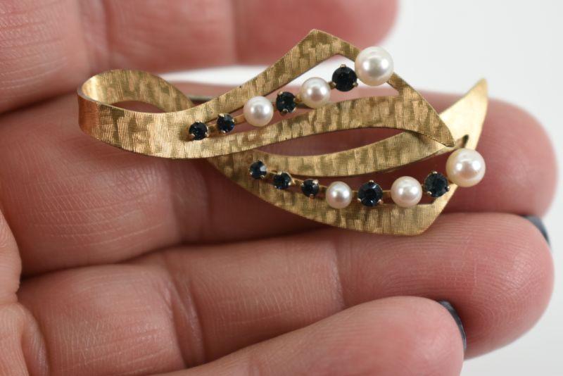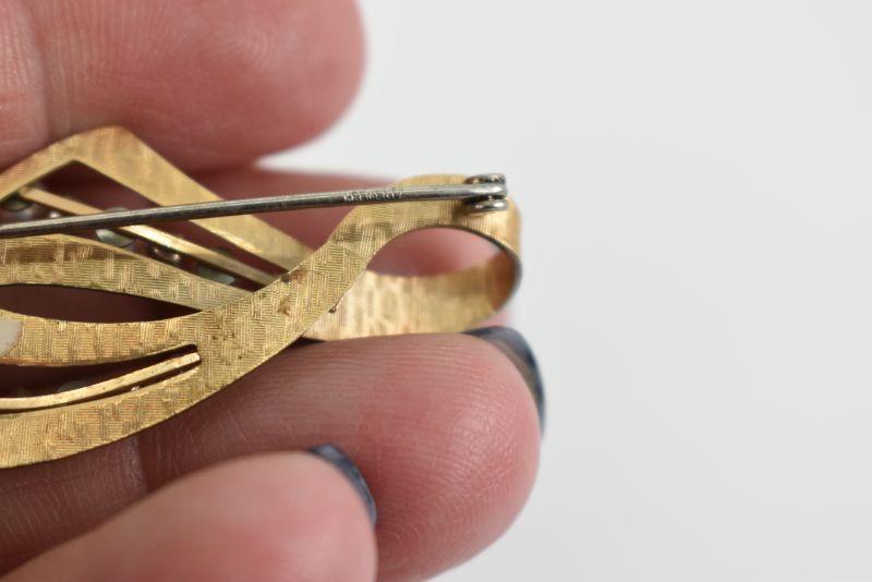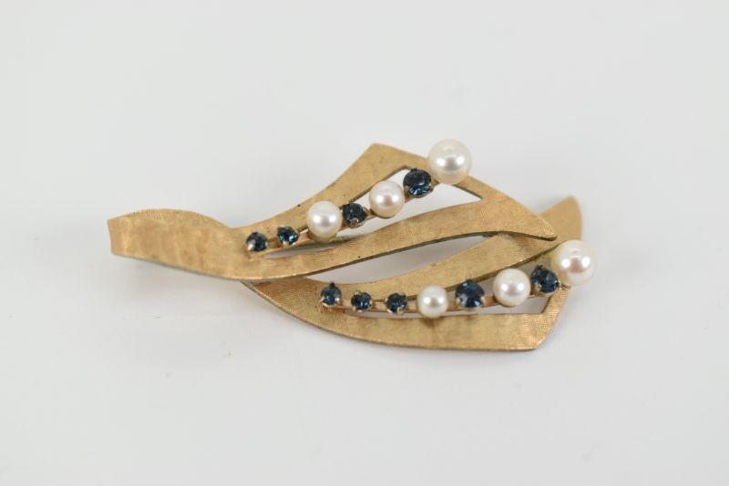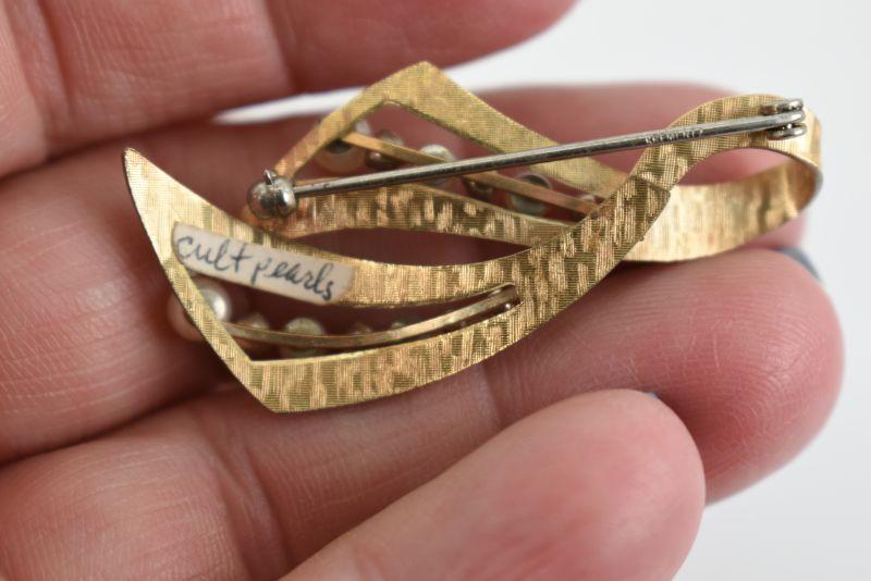 Lot 237-Goldtone Ribbon Brooch with Cultured Pearls