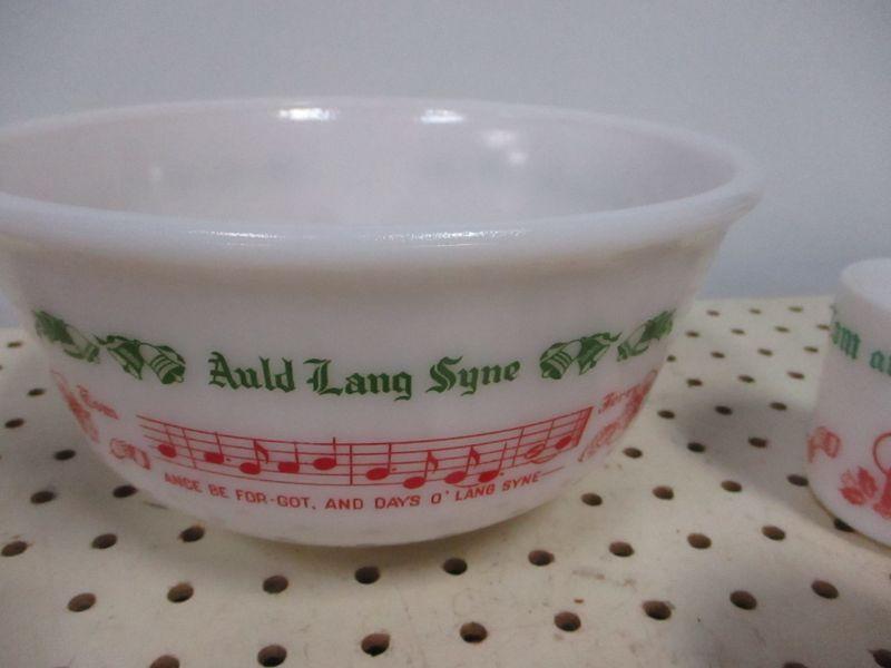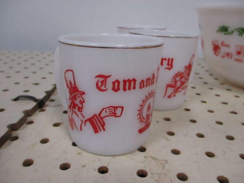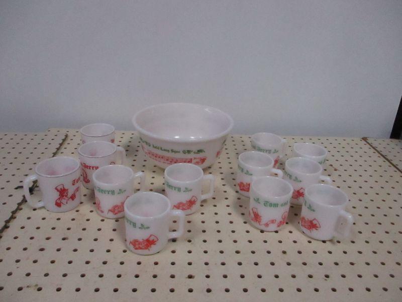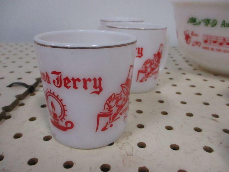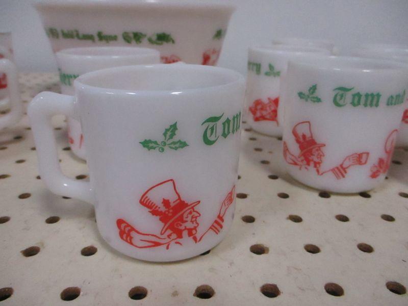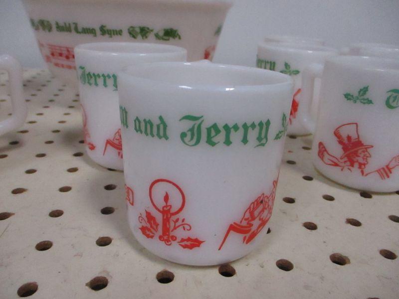 Vintage Tom and Jerry Holiday Milk Glass Punch Bowl Set