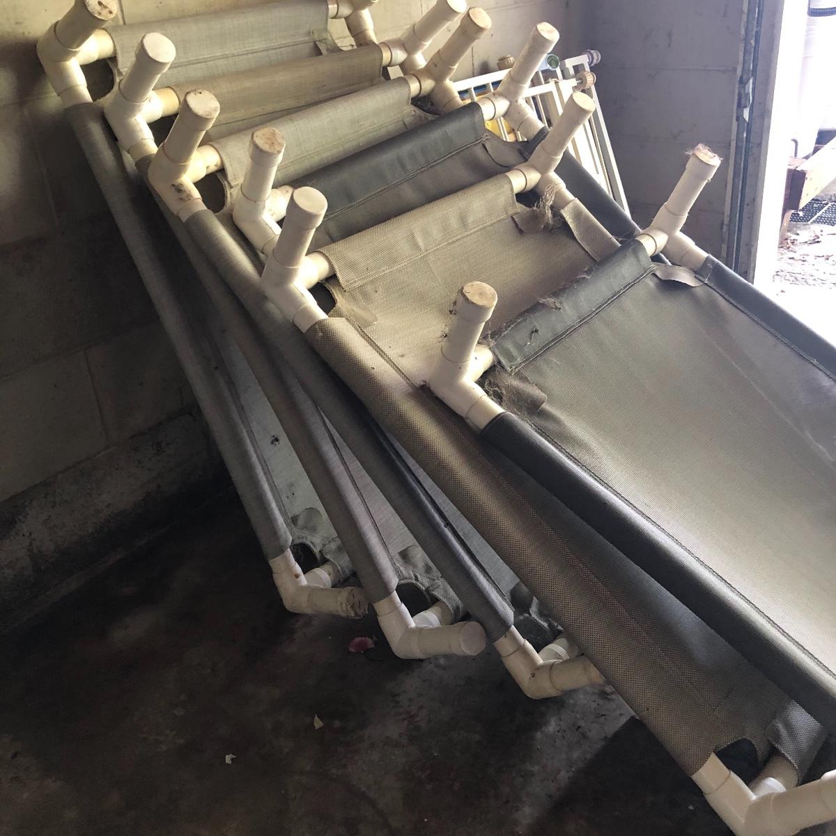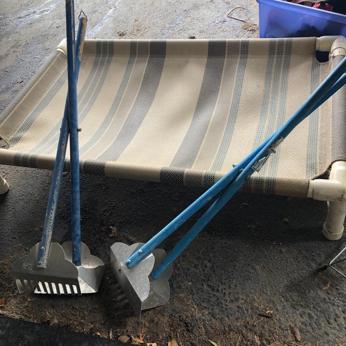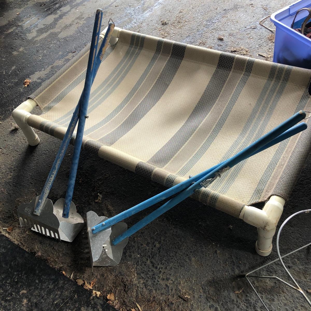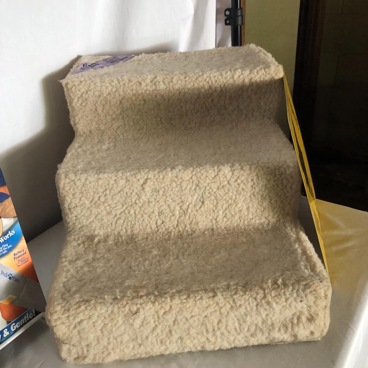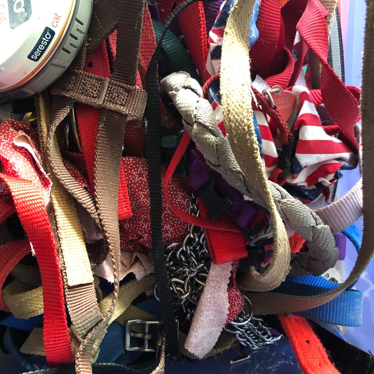 You will have all of the pet supplies needed with this lot! It contains pet steps, a pet cone, dog nail trimmers, cat toys, a dog bath tub, seven PVC and canvas dog beds, four animal gates, a litter box, a pet carrier, two pooper scoopers, a bin of collars and leashes and more! Local pick up only.