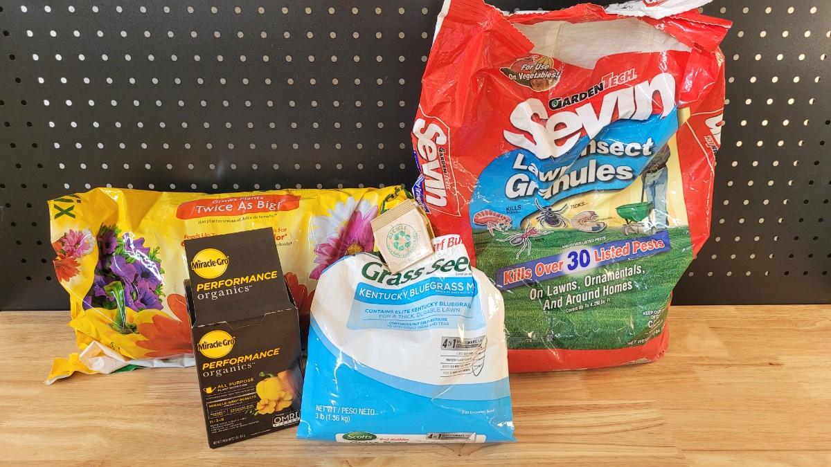 Lot 237: Assortment of Used Garden Supplies - Sewing, Grass Seed, Miracle Gro, Potting Mix