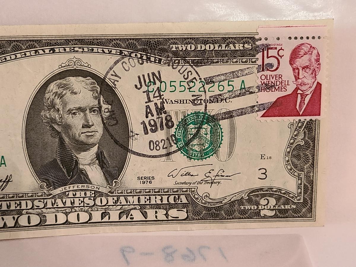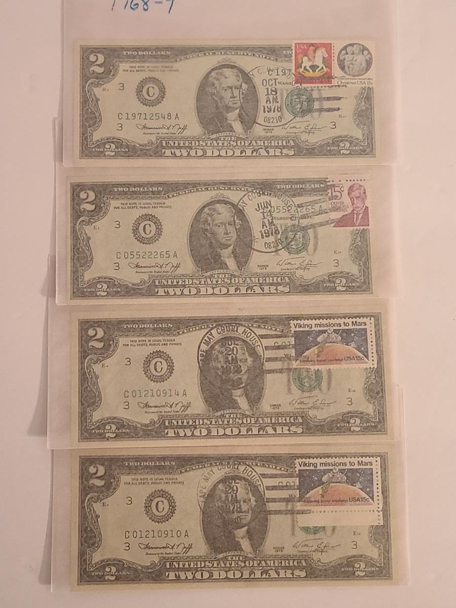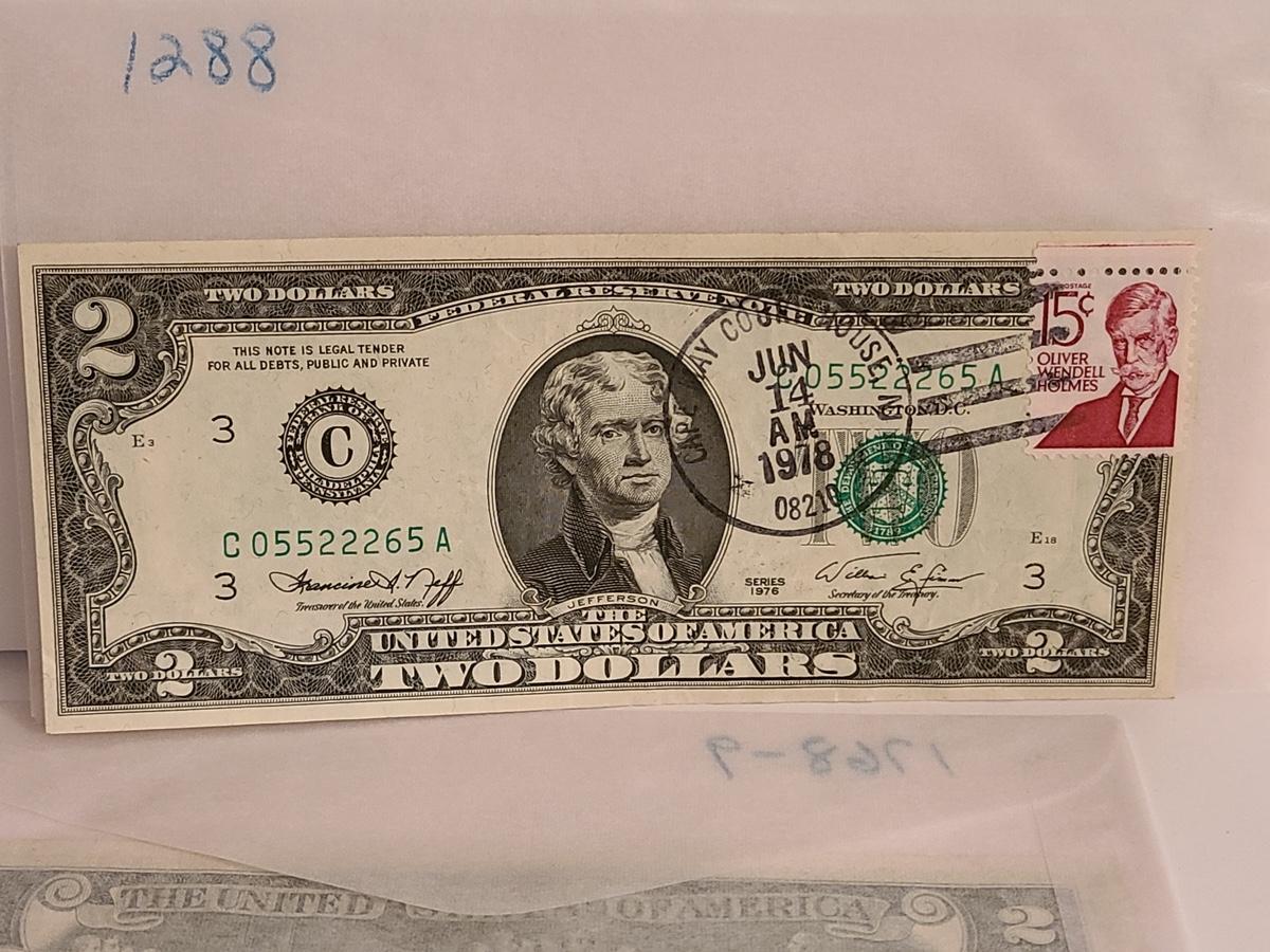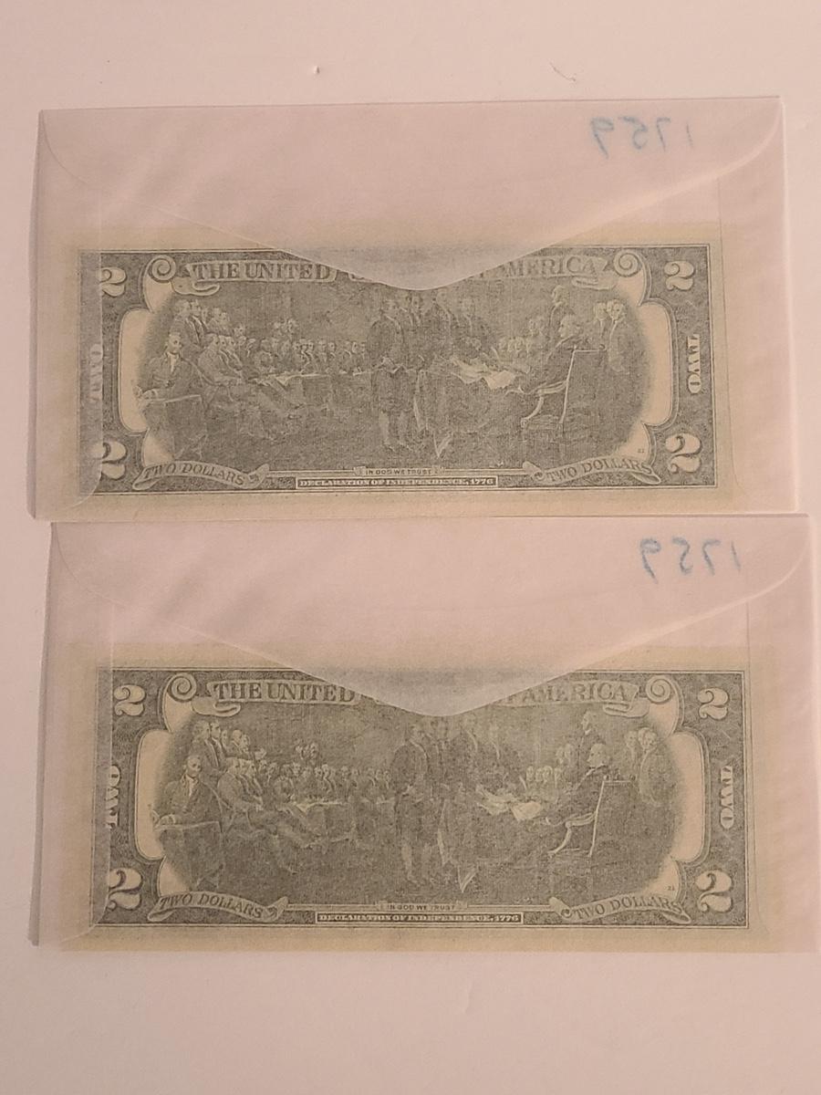 Lot 237: Two Dollar Bills Stamped and Sealed (Four Total)