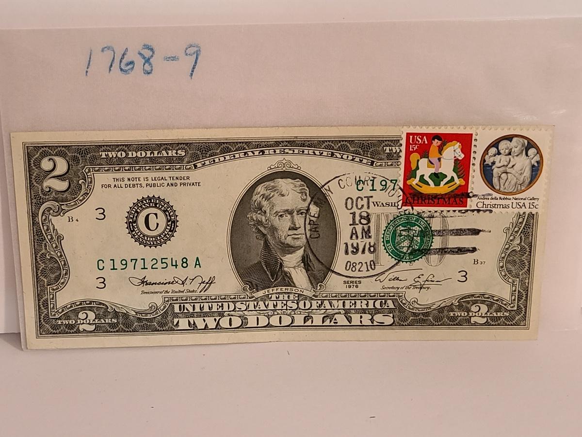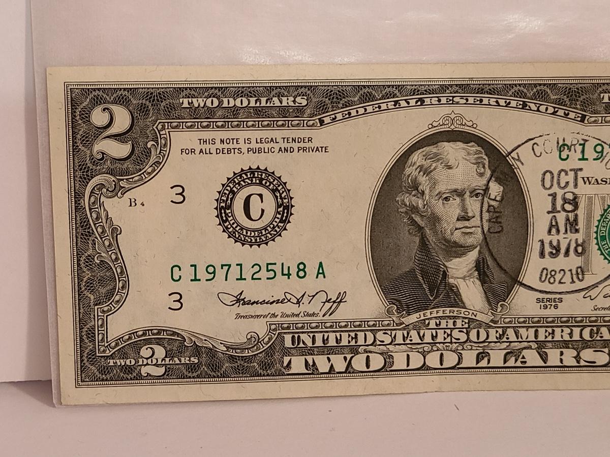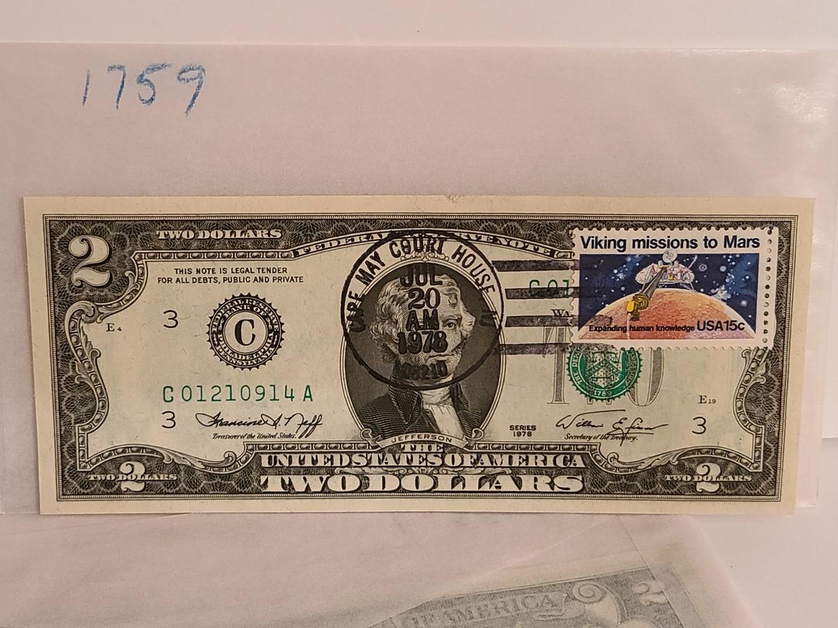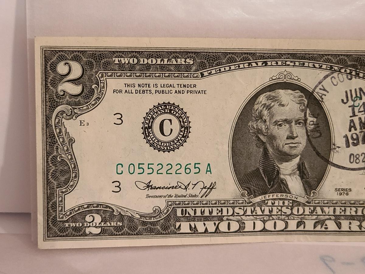 Lot 237: Two Dollar Bills Stamped and Sealed (Four Total)