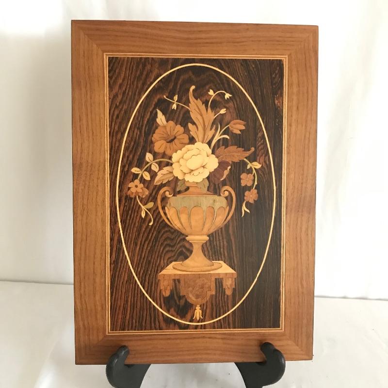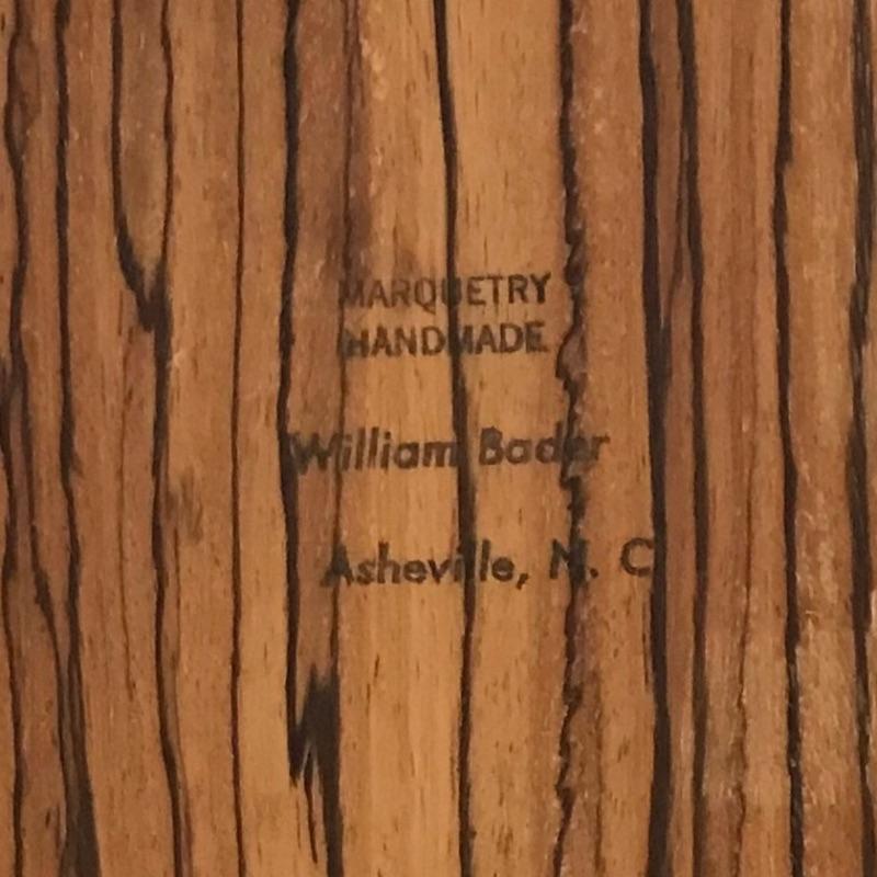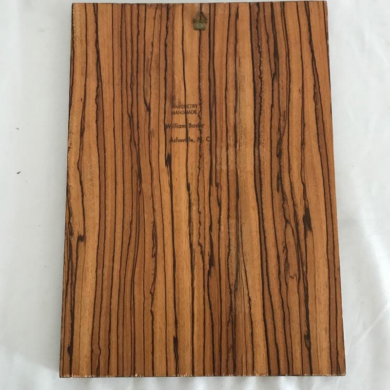 This is such a stunning piece of art by Asheville local artist William Bader. Handmade, all wood marquetry art featuring multiple toned floral arrangement with an artistic decorative marquetry “frame”. As you can see from images, piece has been signed by artist. Zoom in if possible on images to fully appreciate the craftsmanship that has gone into these pieces. Measures approximately 9.25” x 13”. Shipping available. Please call UPS with dimensions at 828-252-6930 for a shipping quote prior to bidding.