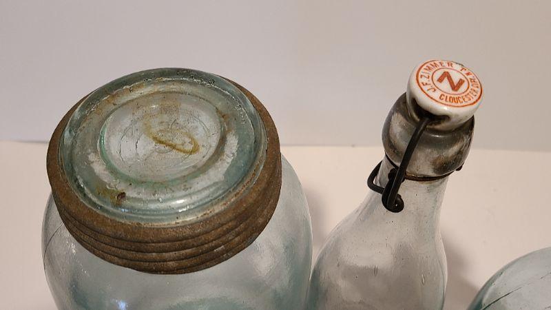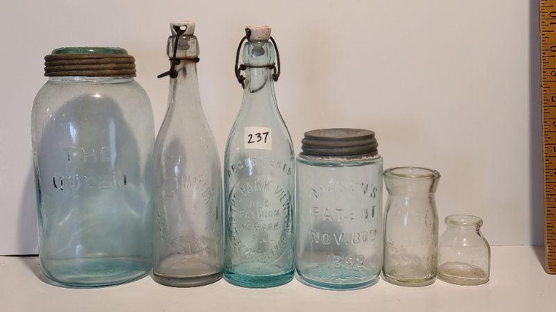 Lot 237: Antique Bottles/Jars ( Large The QUEEN, Zimmer Gloucester, Parkview Newark, Moore Mason)