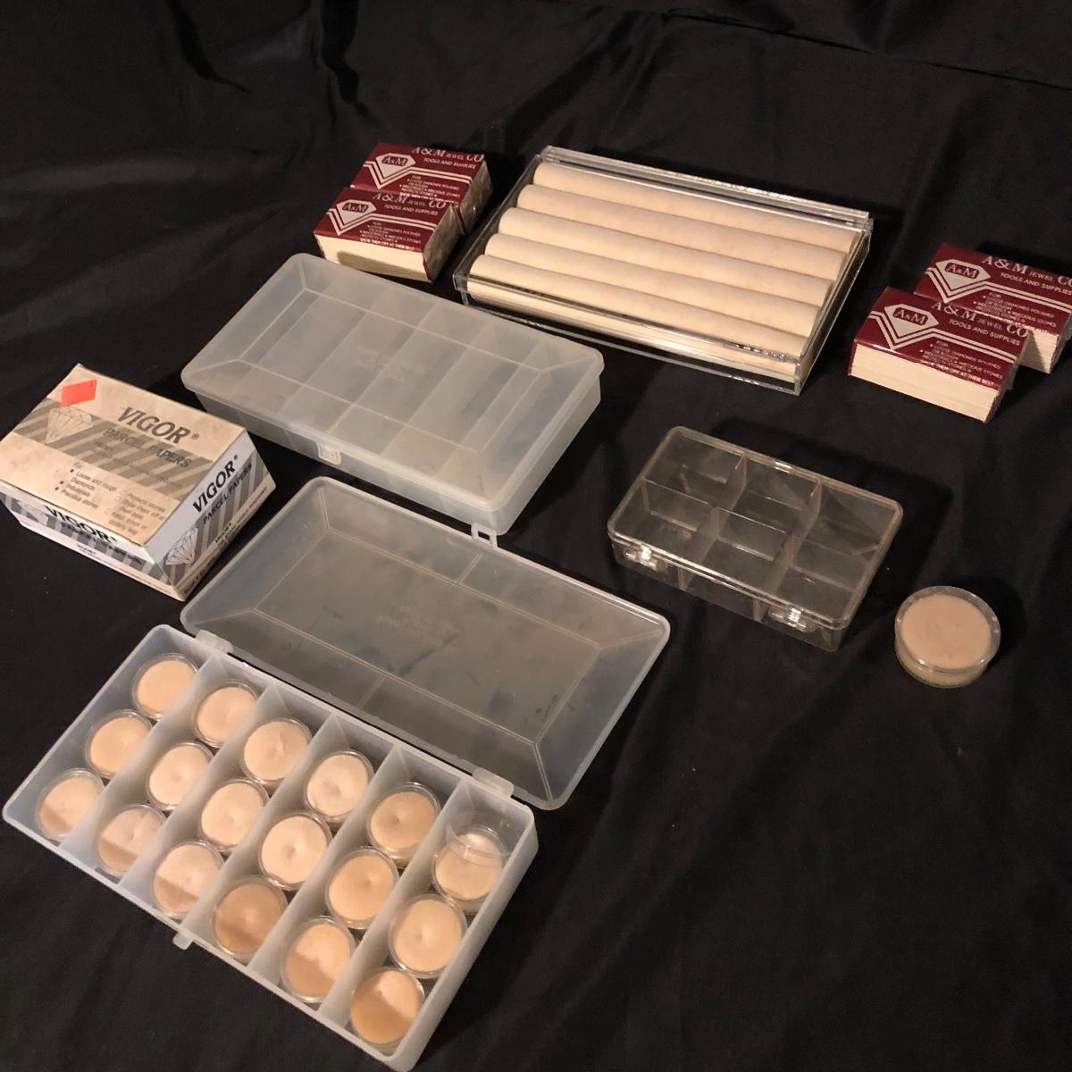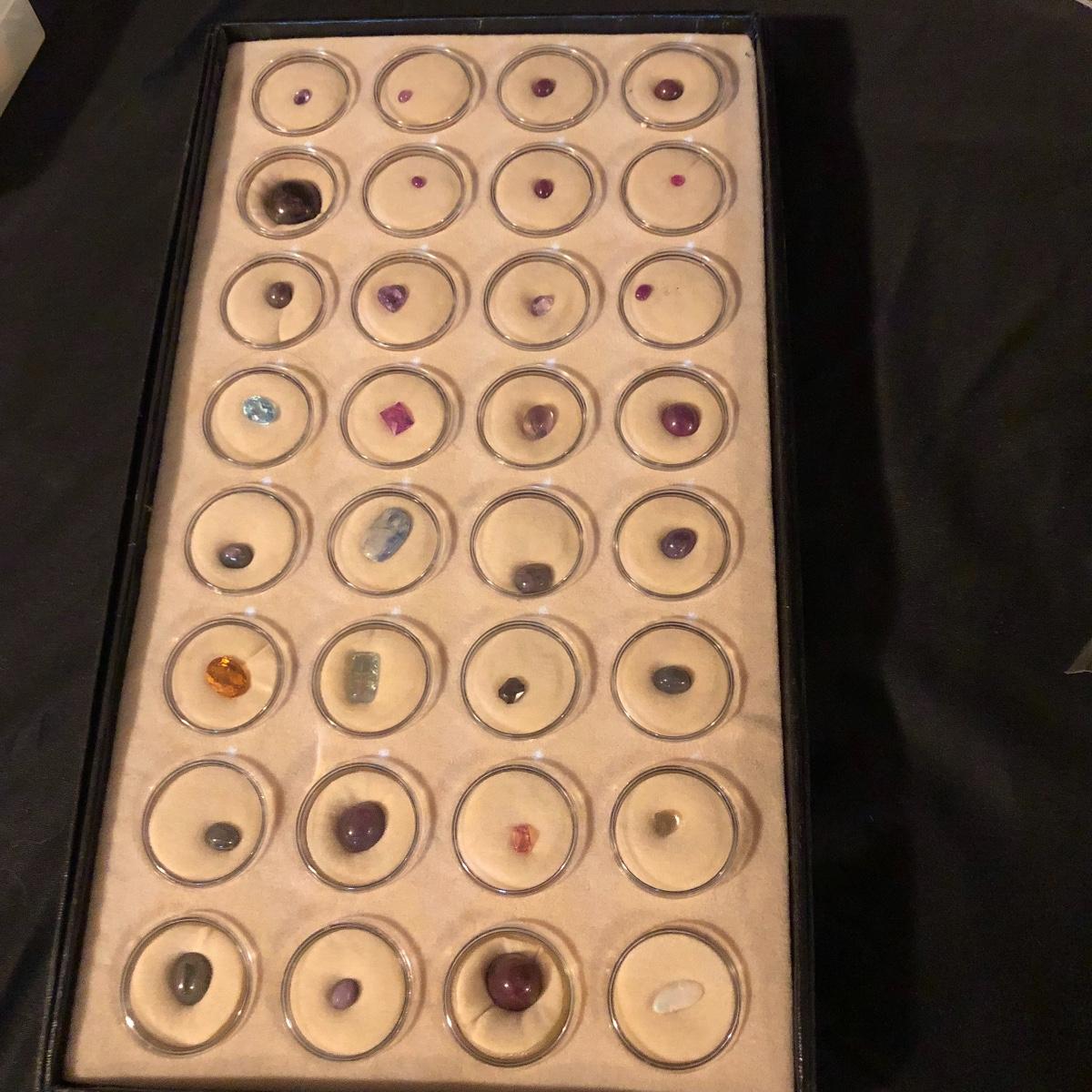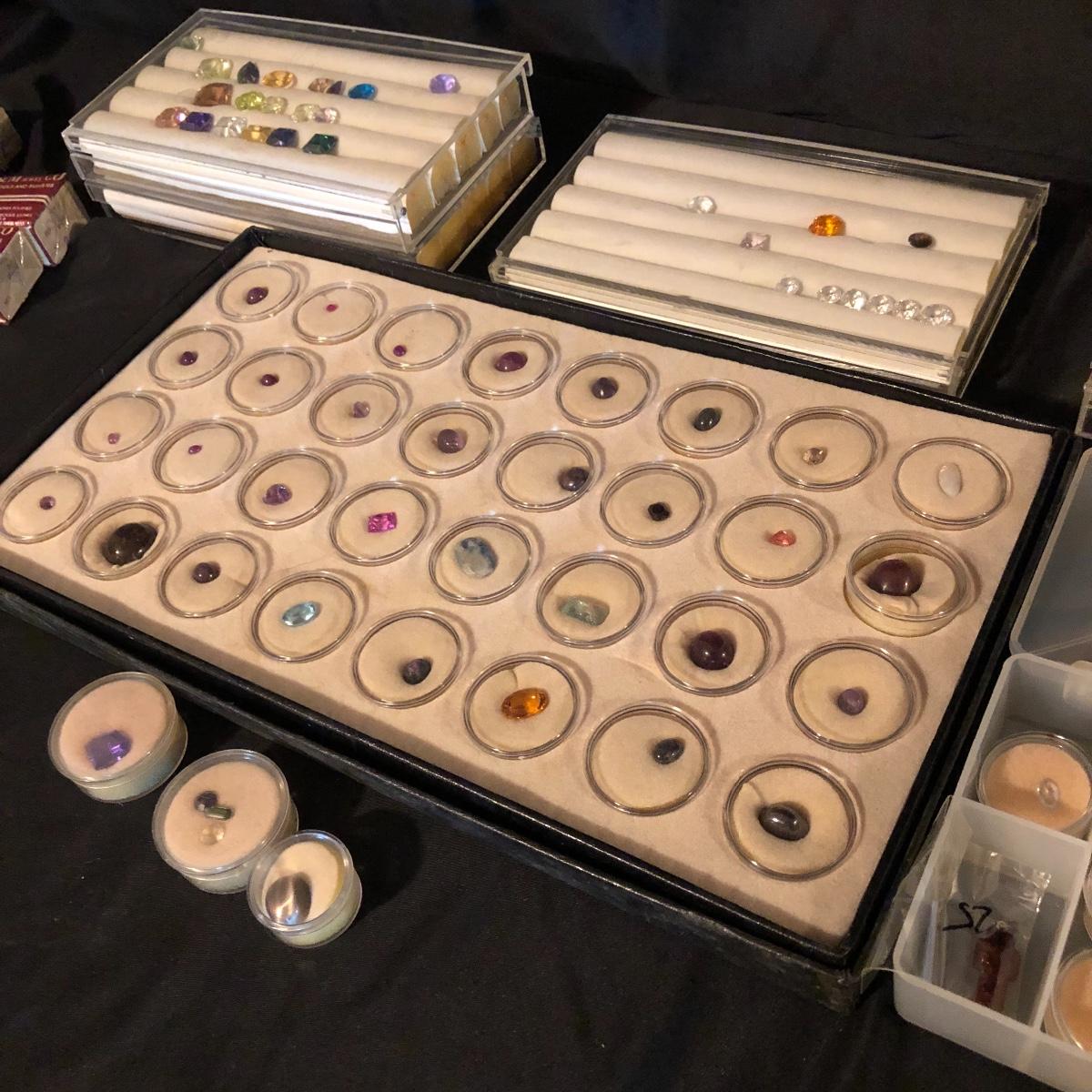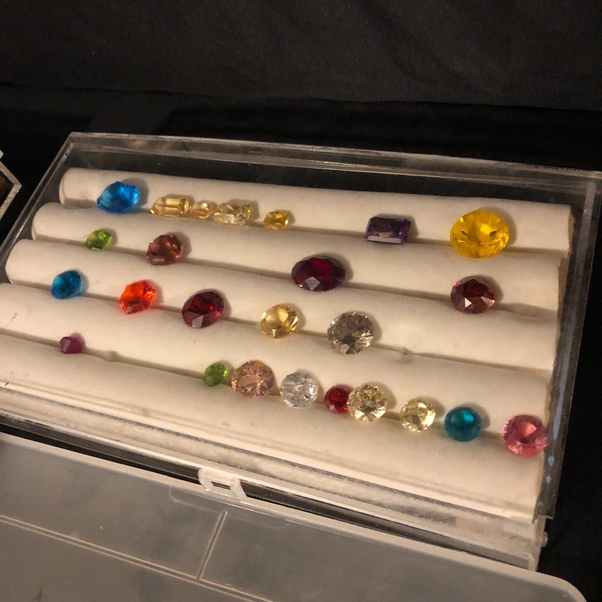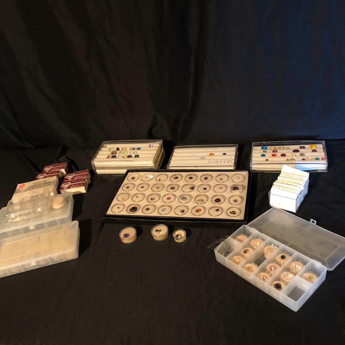 This lot is beautiful and contains natural and synthetic stones. There are well over 100 stones! Some may have fractures and do seem as if they are cut by an amateur. Also, included with this lot are supplies. Come check out these beauties during our preview. Shipping Available.