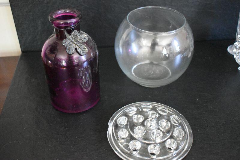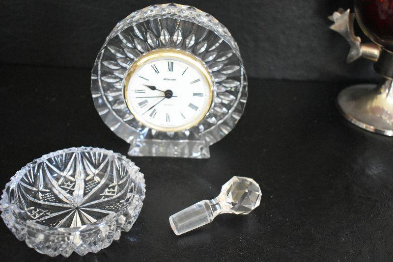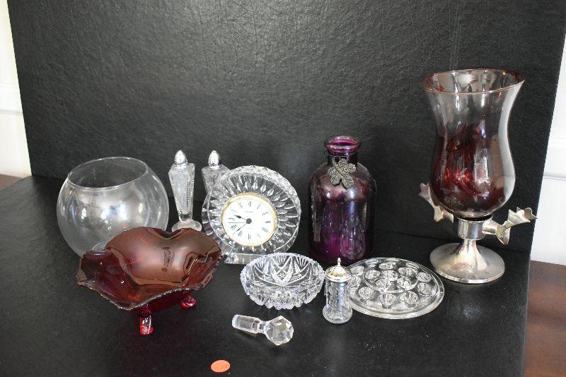 Candy dish, clock, flower frog, ashtray and more. Bring box to remove.