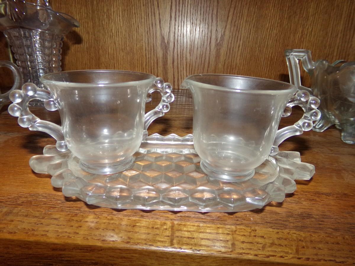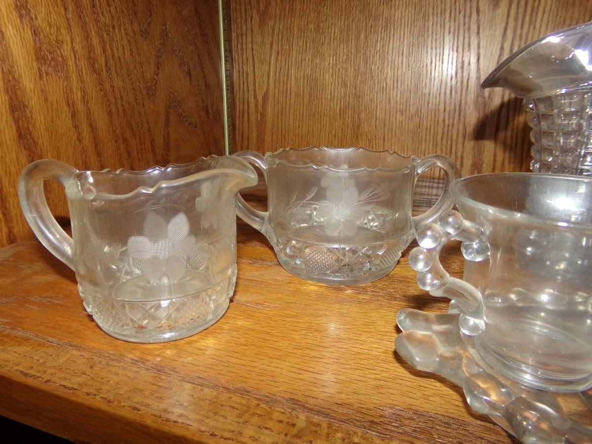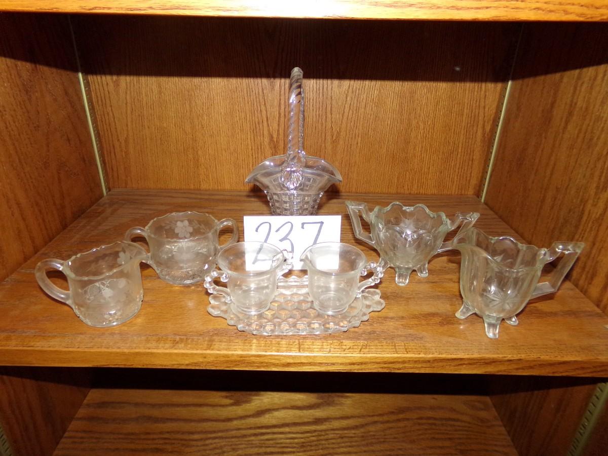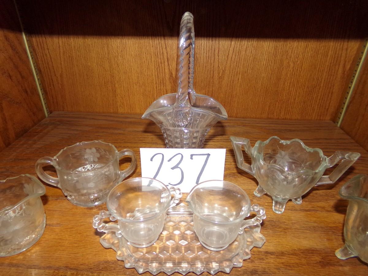 GLASS BASKET, ETCHED CREAM & SUGAR SETS AND MORE.