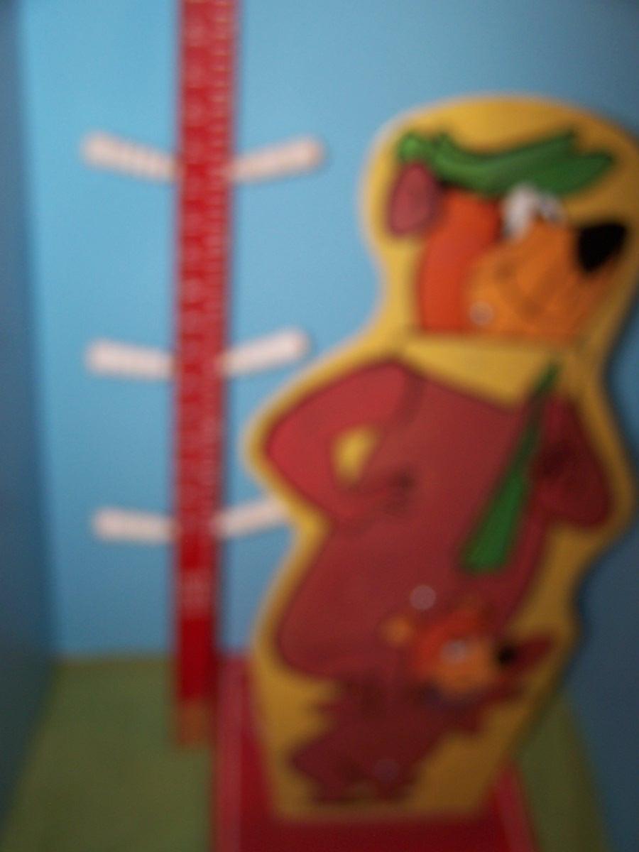 THIS IS A GREAT VINTAGE YOGI BEAR MEASUREMENT PIECE.... IT IS NOT MARKED... IT IS WOODEN... YOU ATTACH THE RED PART TO THE BACK OF YOGI... LIGHT WEAR...