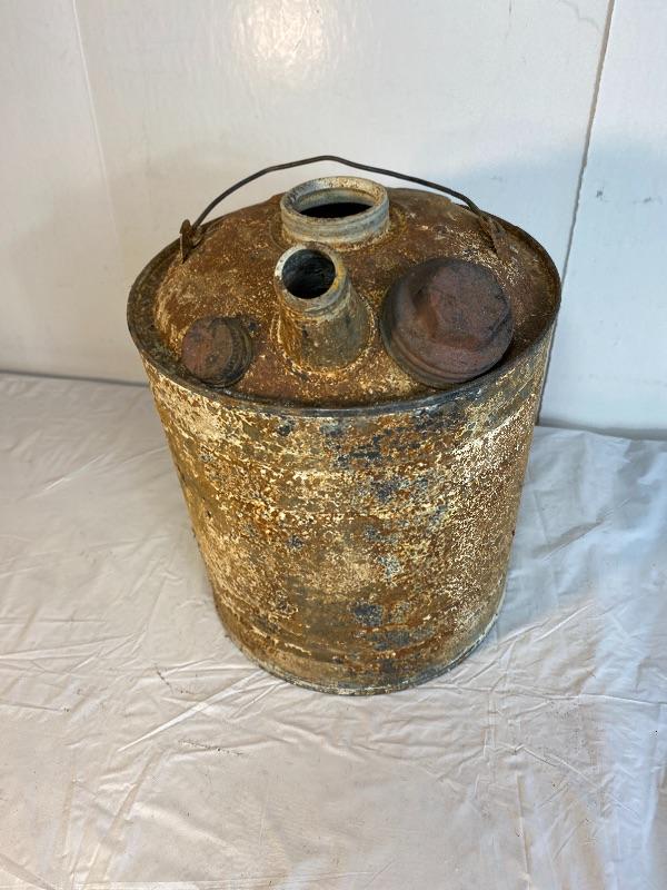 Lot 237 s Rusty Gold Fuel Gas Can w/lids 2 gallon
