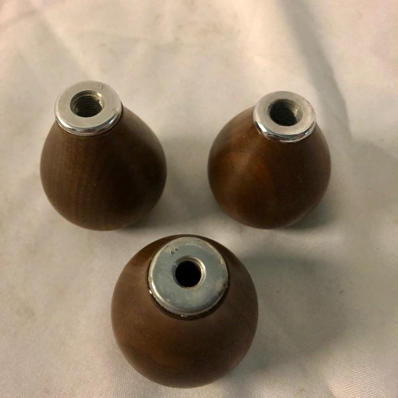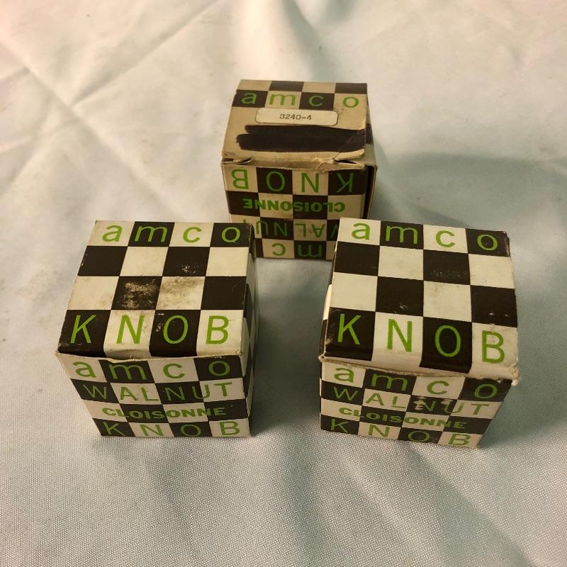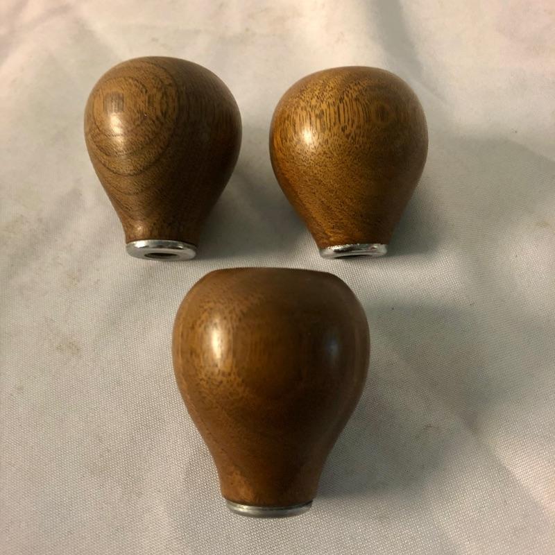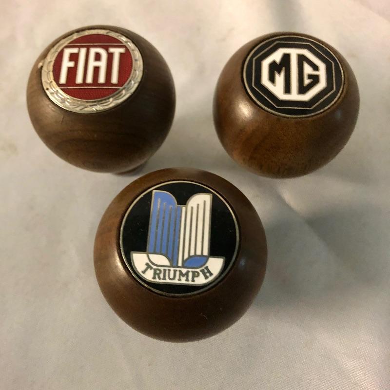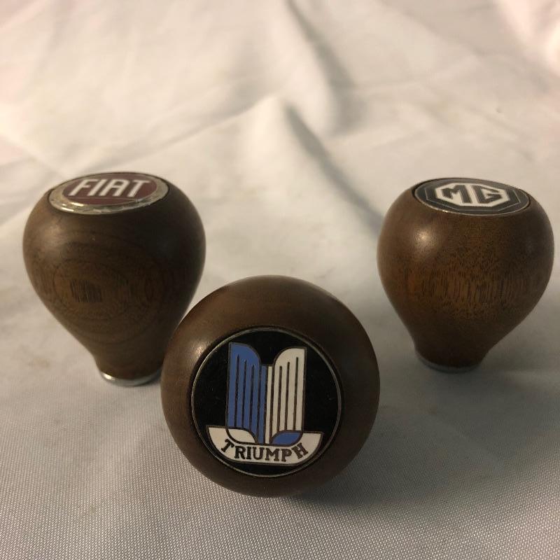 Three Amco gear shifter knobs are for an MG, Triumph and Fiat that are made from walnut. These classy cloisonne’s will put that finishing touch on your classic cars. All three come with their original boxes. See images for the dimensions of the hole sizes for each one.